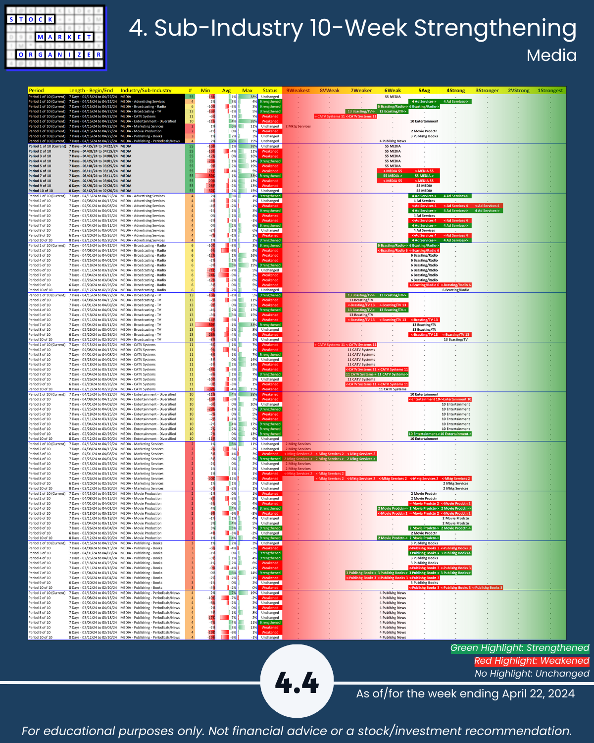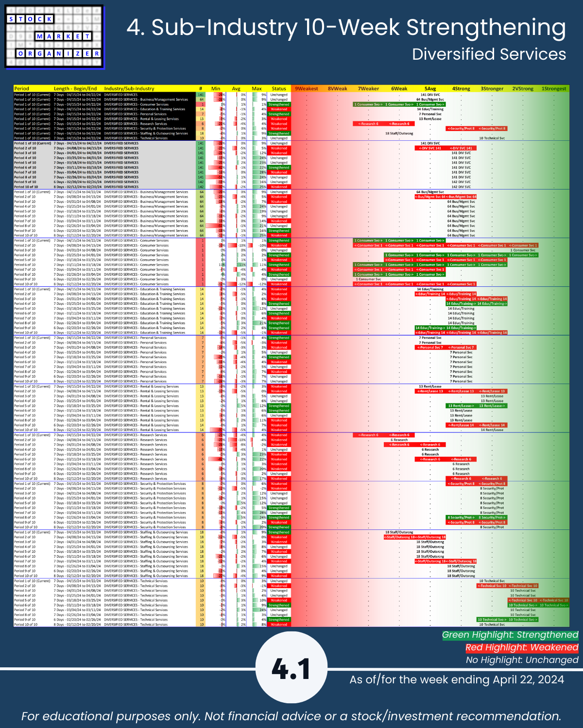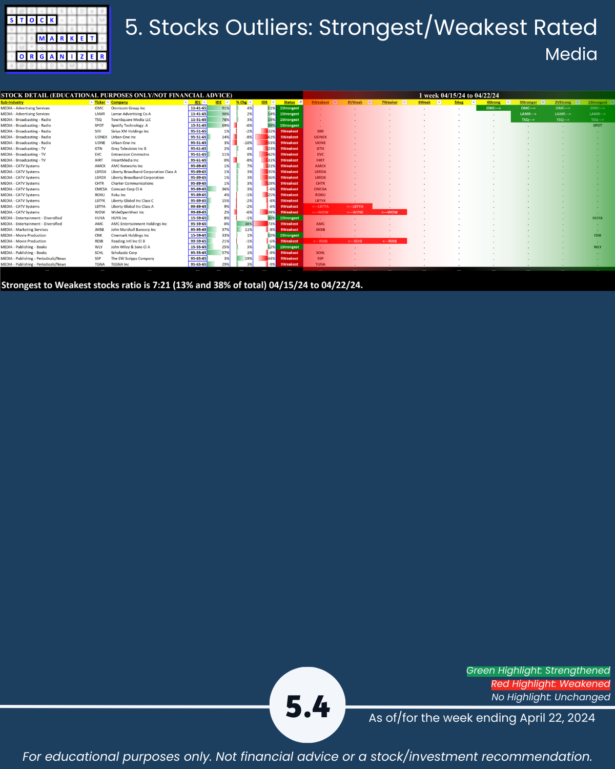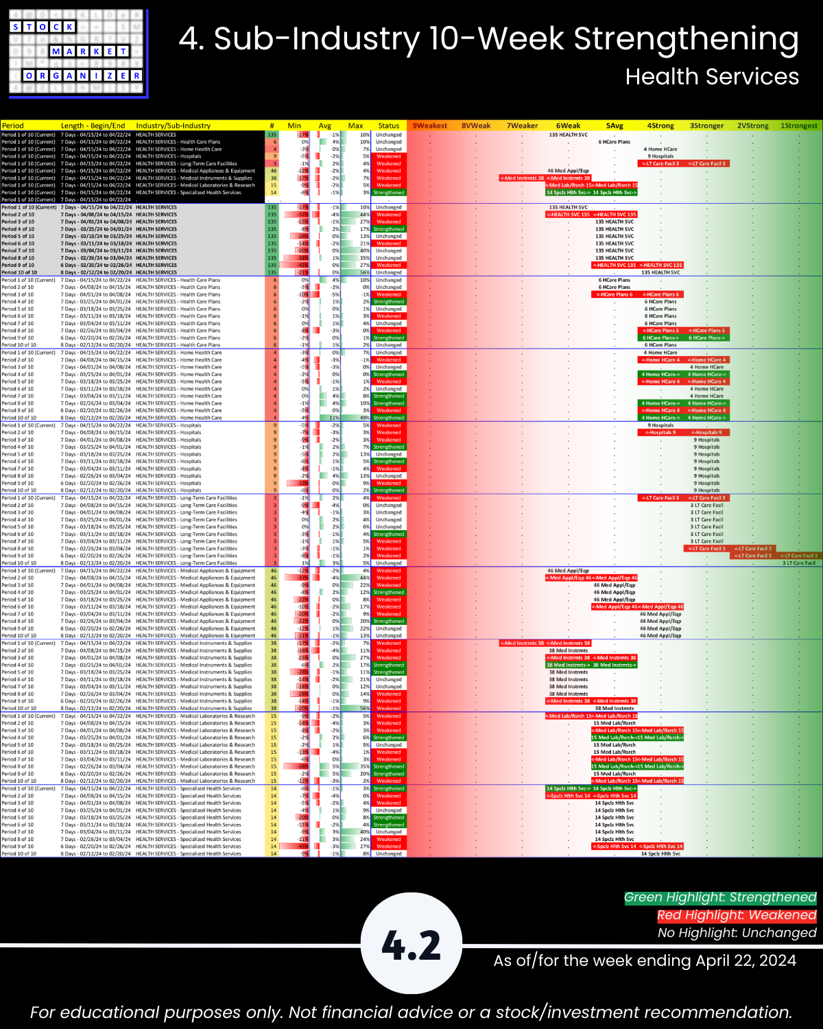 What you may not know that could be relevant: 🔹 Utilities completely reversed last week’s debacle and re-strengthened the 2 ranking levels it lost, enjoying 92% positive stocks vs. last week’s 99% negative, 🔹 Health Services is this group’s weak link with 71% negative stocks and a lagging Strongest:Weakest ratio of 13%:31%.