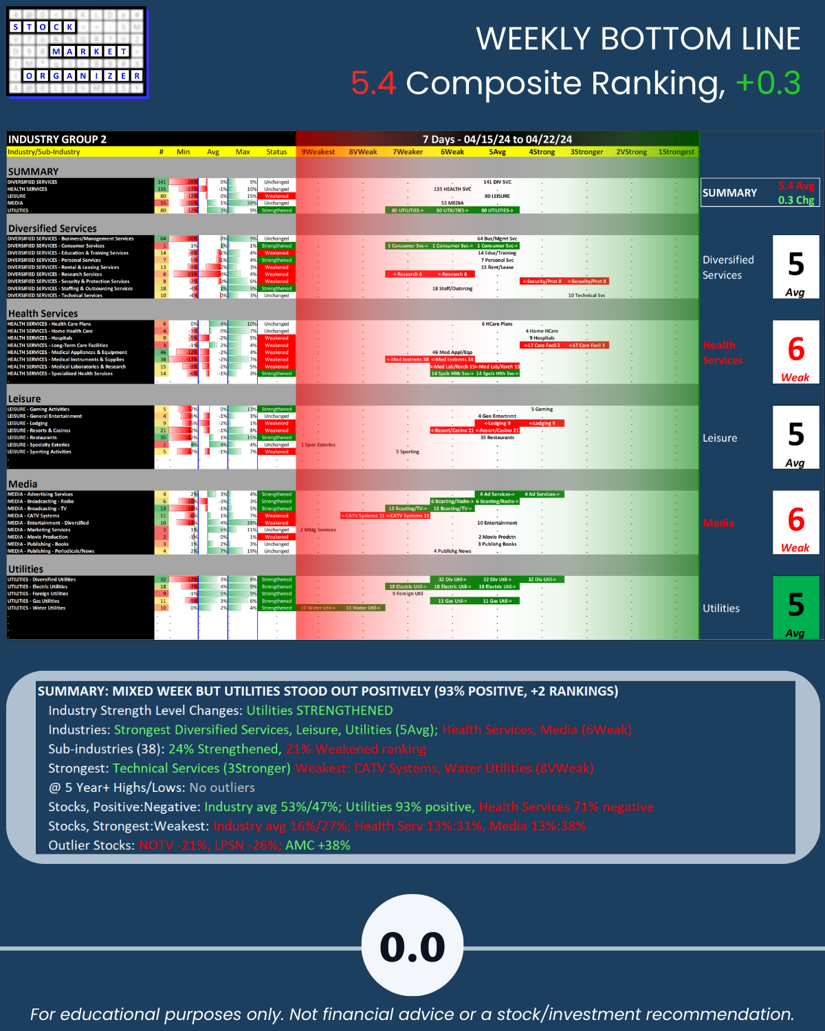 SUMMARY: MIXED WEEK BUT UTILITIES STOOD OUT POSITIVELY (93% POSITIVE, +2 RANKINGS)