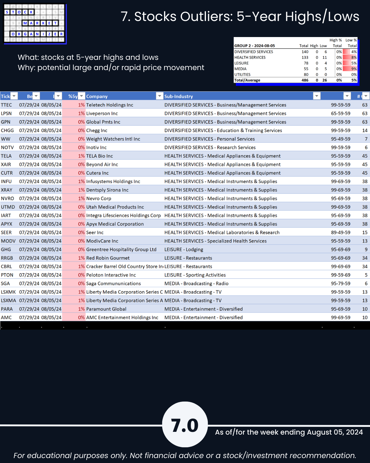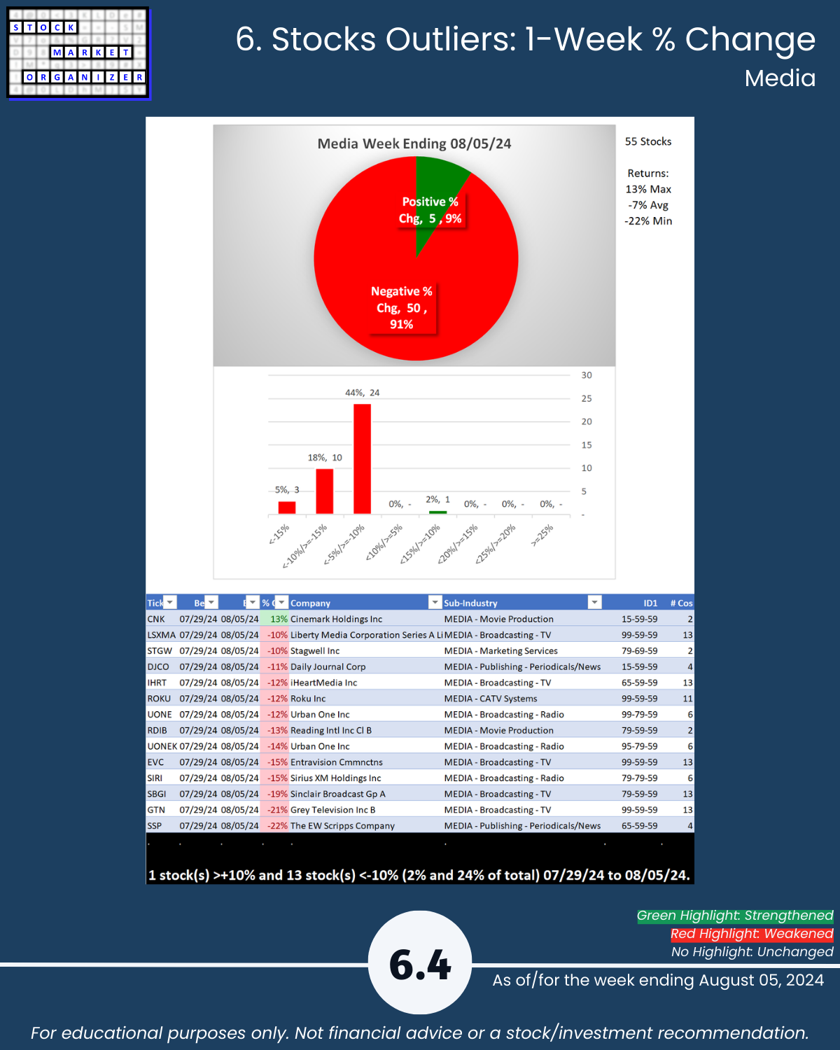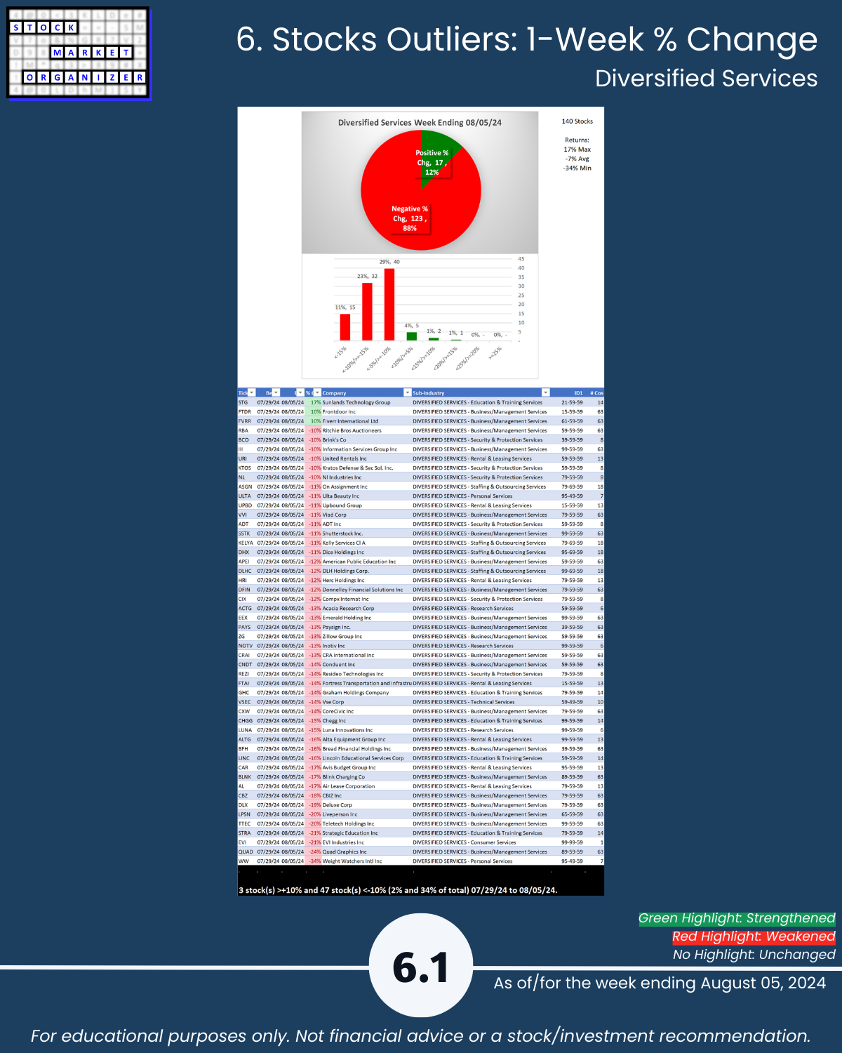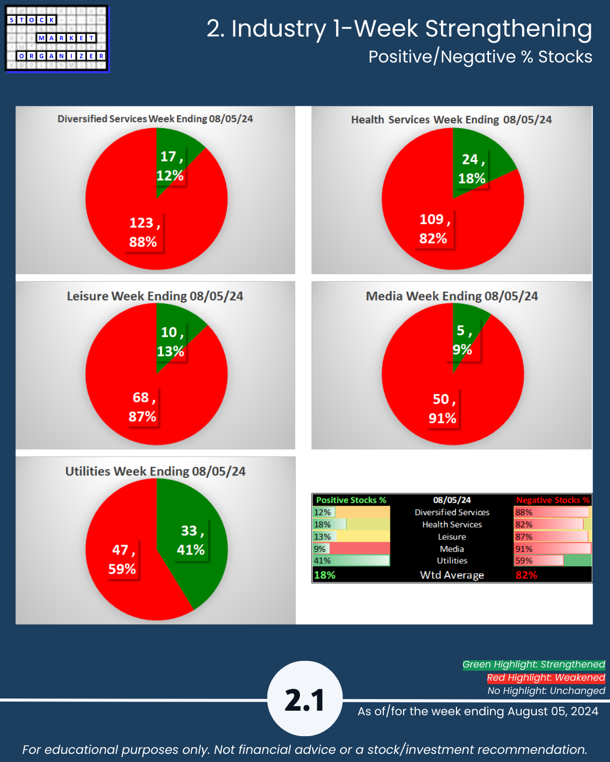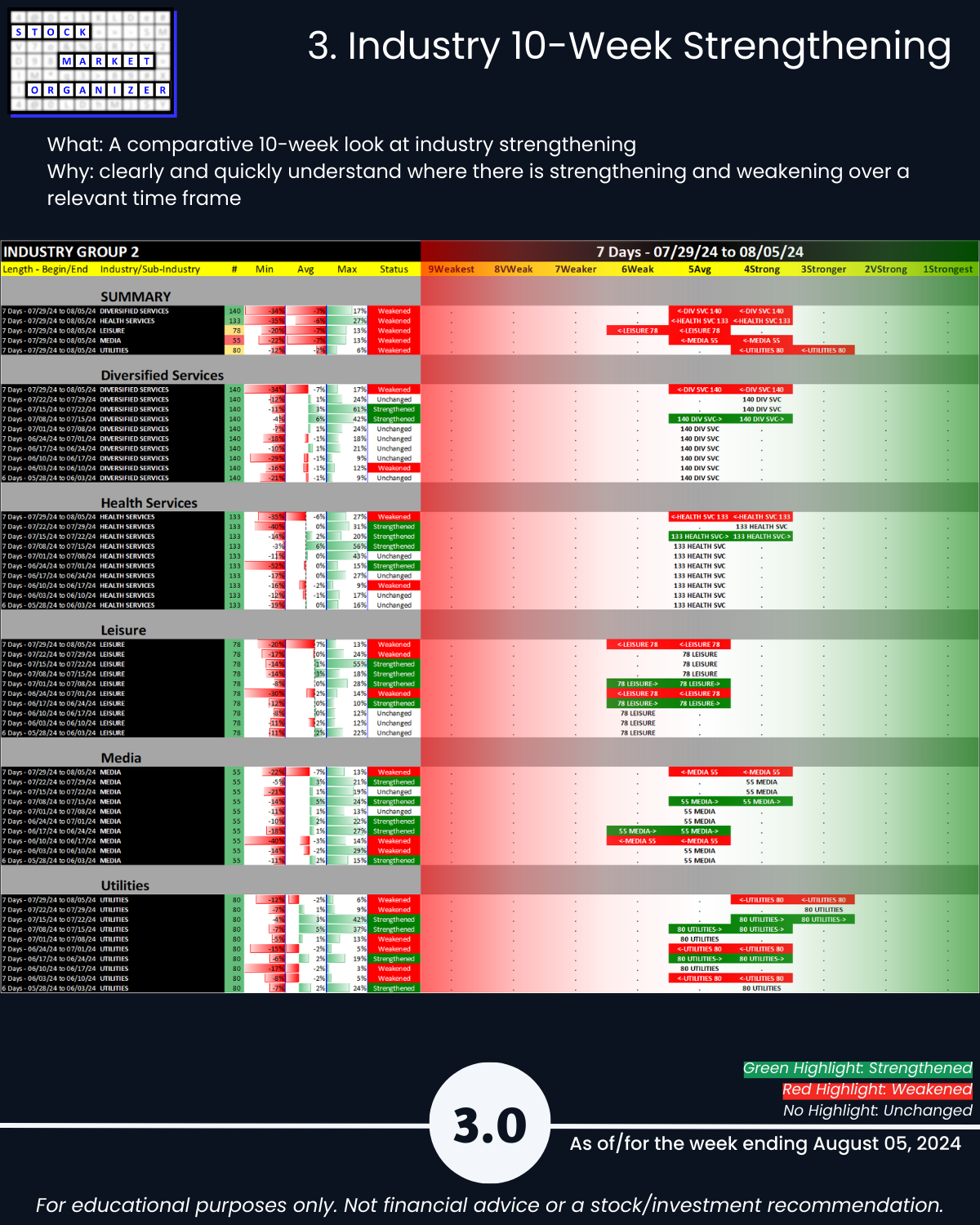 8/5/24 Stock Market Organizer Industry Group 2 report attached (covers the Diversified Services, Health Services, Leisure, Media, and Utilities industries). Nikkei +10% after its worst day since 1987 and its biggest 2 day drop ever. What was the flaw in the thinking that one shouldn’t attempt to time the market because missing out on the XX best days leads to drastically reduced results? Oh yeah, I remember… IT IS IMPOSSIBLE TO MISS THE XX BEST DAYS BUT NOT THE XX WORST DAYS. Good and bad days cluster. Volatility clusters. But, please, do emphasize how it is “time in the market, not market timing.”