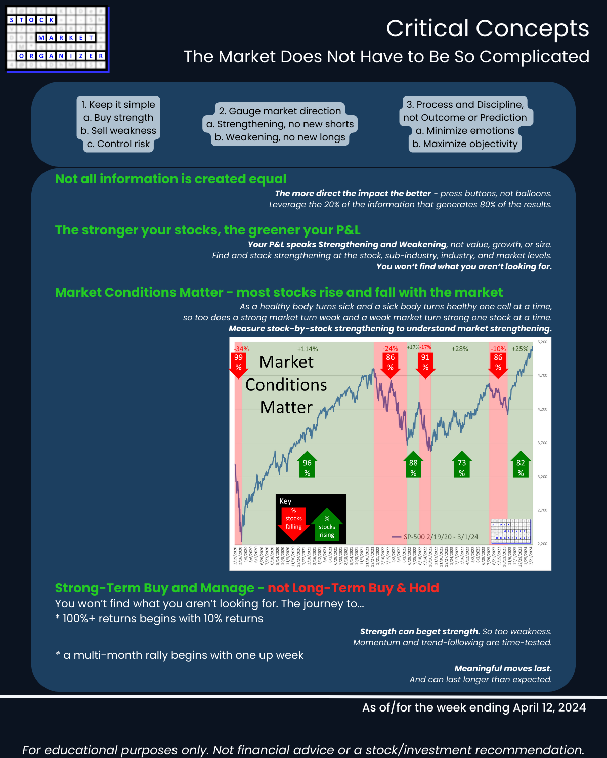 - Most stocks do what the market does. (While the market can only do what its underlying stocks, sub-industries, and industries do.)