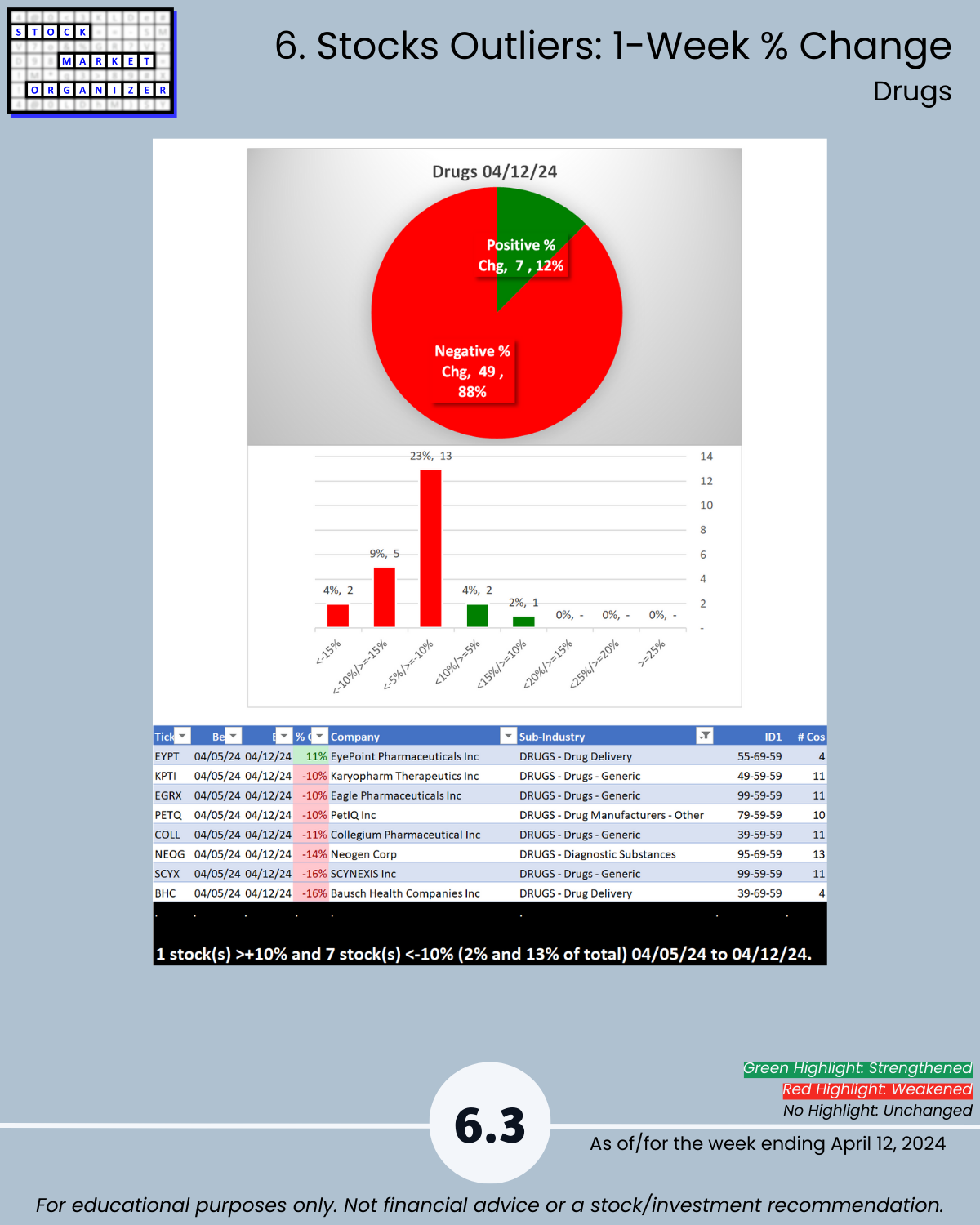 - Drugs 13% stocks <-10%