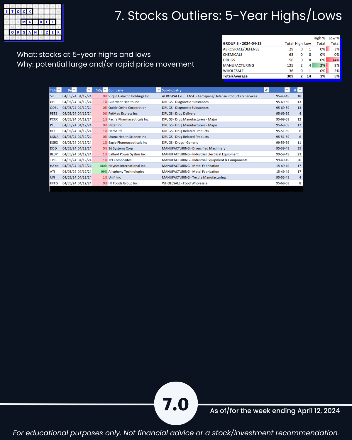 7. Stocks Outliers: 5-Year Highs/Lows