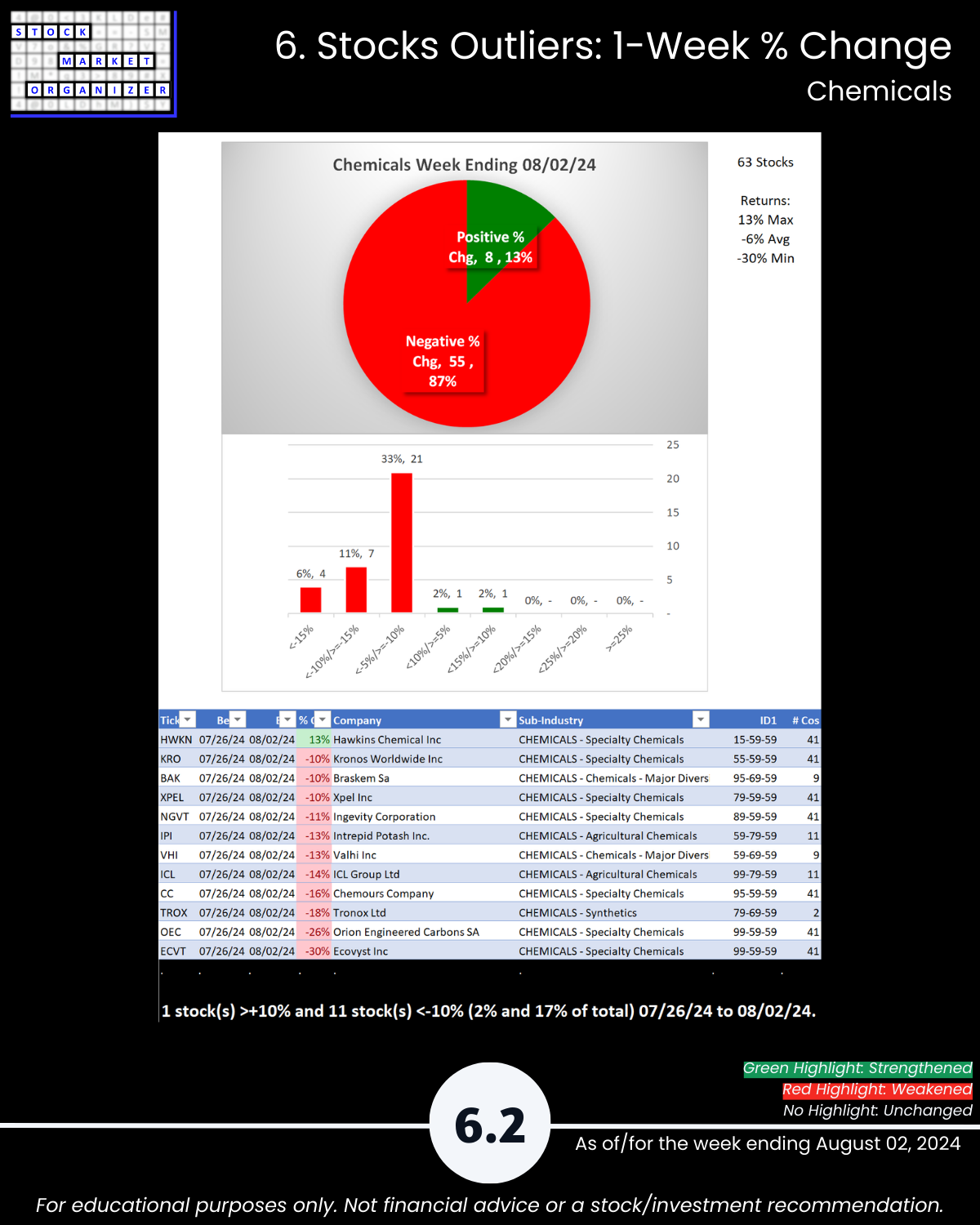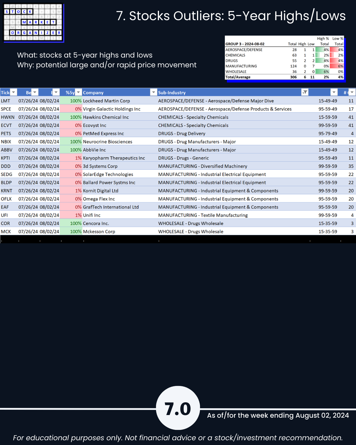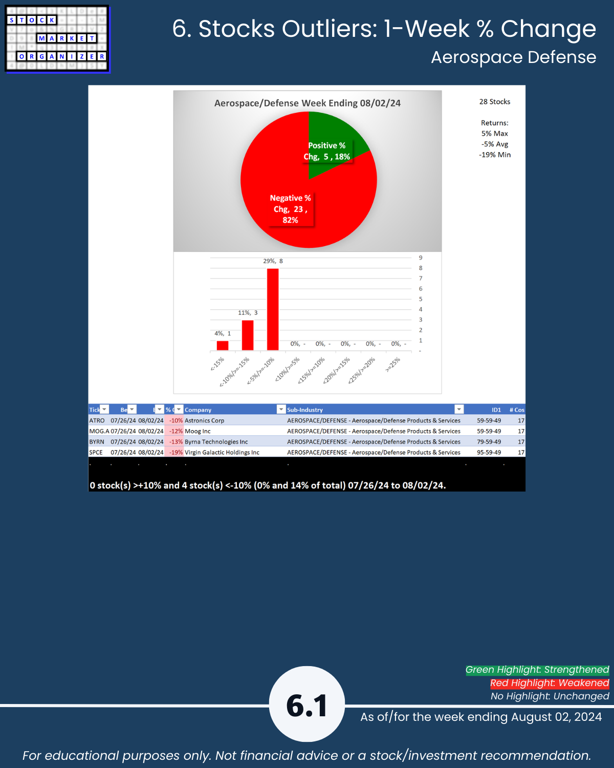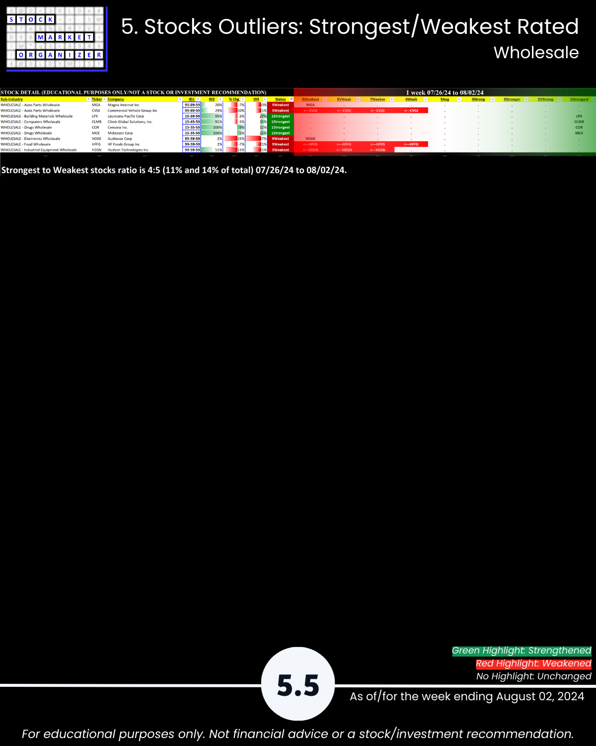 As the Nikkei goes through its biggest 2 day drop ever, here’s the 8/2/24 Stock Market Organizer Industry Group 3 strength report (Aerospace Defense, Chemicals, Drugs, Manufacturing, and Wholesale). Weakened slightly by -0.4 to a 4.7 weighted average strength rating. Much more detail in the attached including a segmenting by sub-industry of the Strongest and Weakest (in Stock Market Organizer parlance) stocks.
