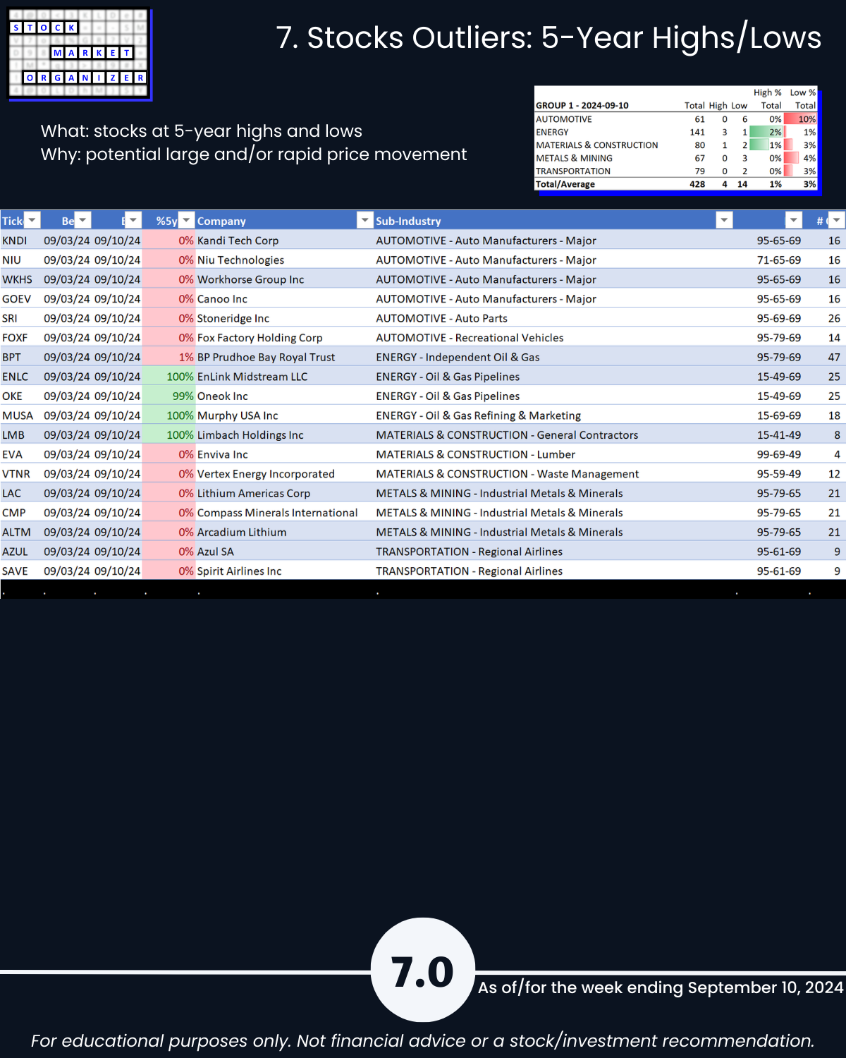 7. Stocks Outliers: 5-Year Highs/Lows