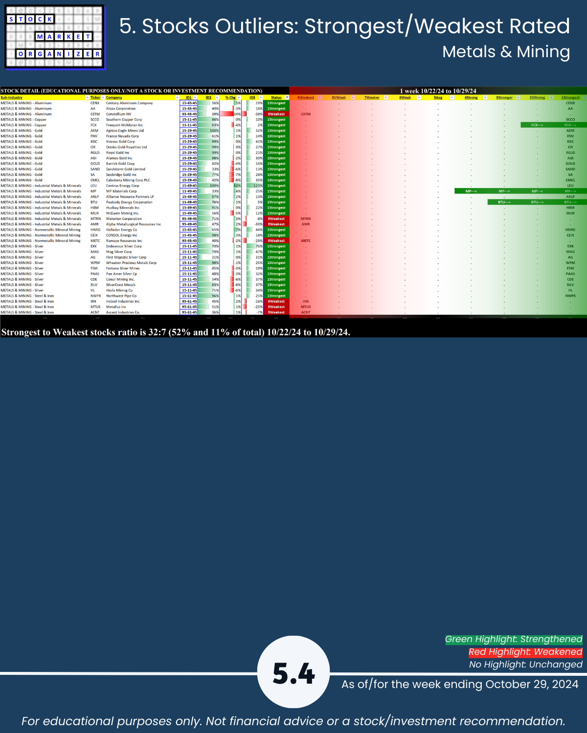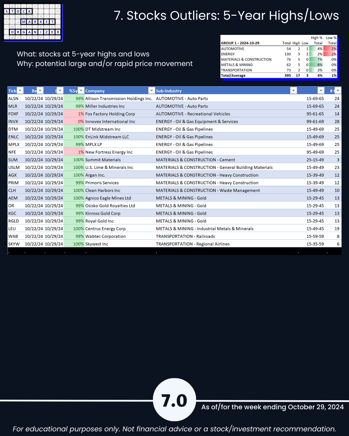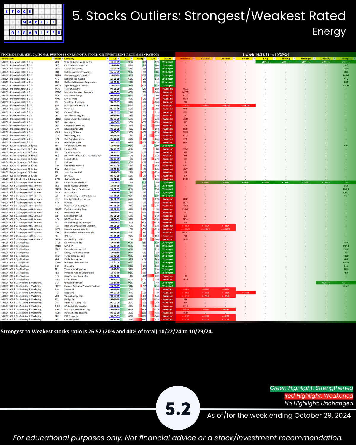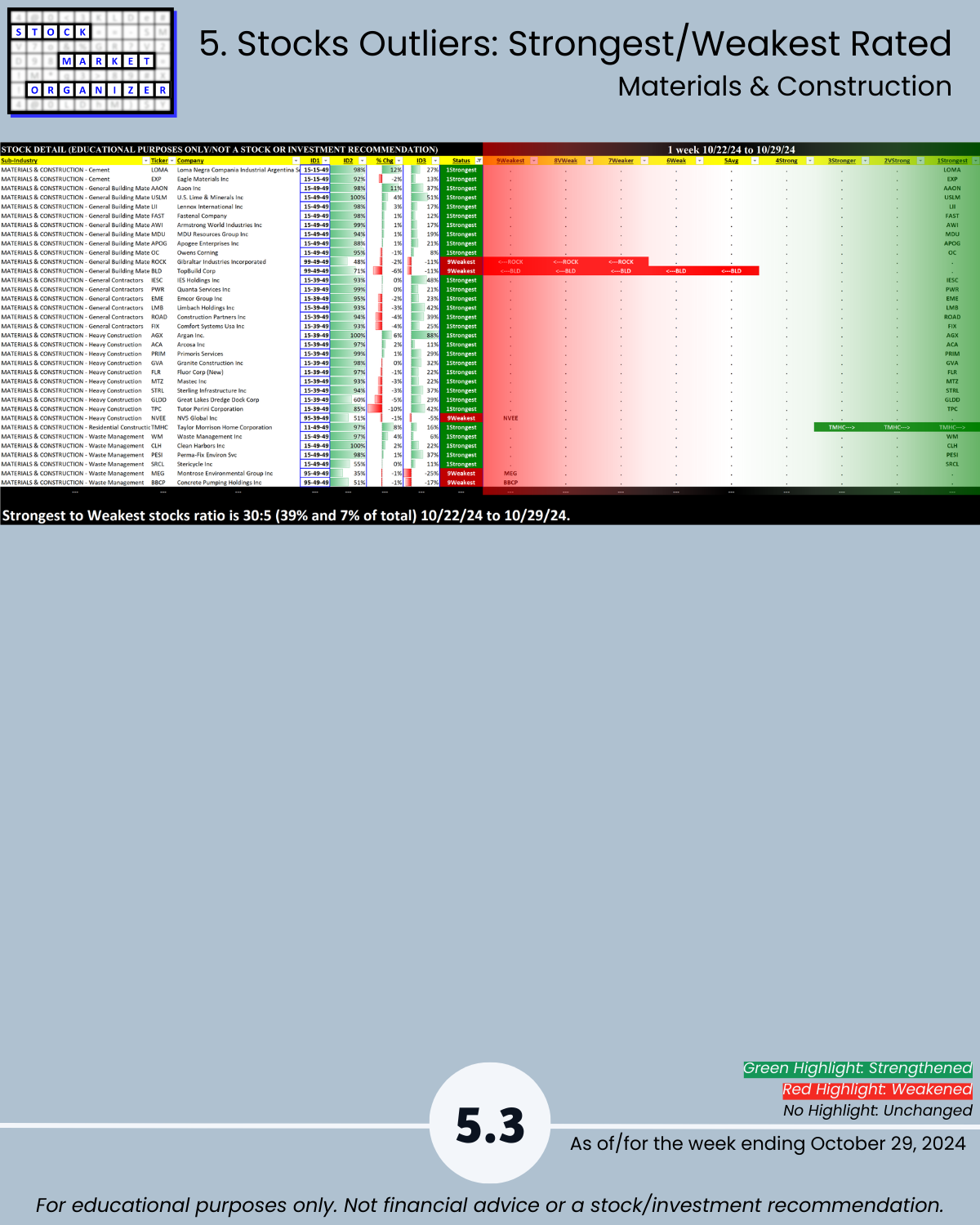 If you are interested in stacking strength as much as possible at the stock, sub-industry, industry, sector, and market levels, this report is for you. Below: the as of/for the week ending 10/29/24 Stock Market Organizer Industry Group 1 Strength Report, which covers the Automotive, Energy, Materials & Construction, Metals & Mining, and Transportation industries.