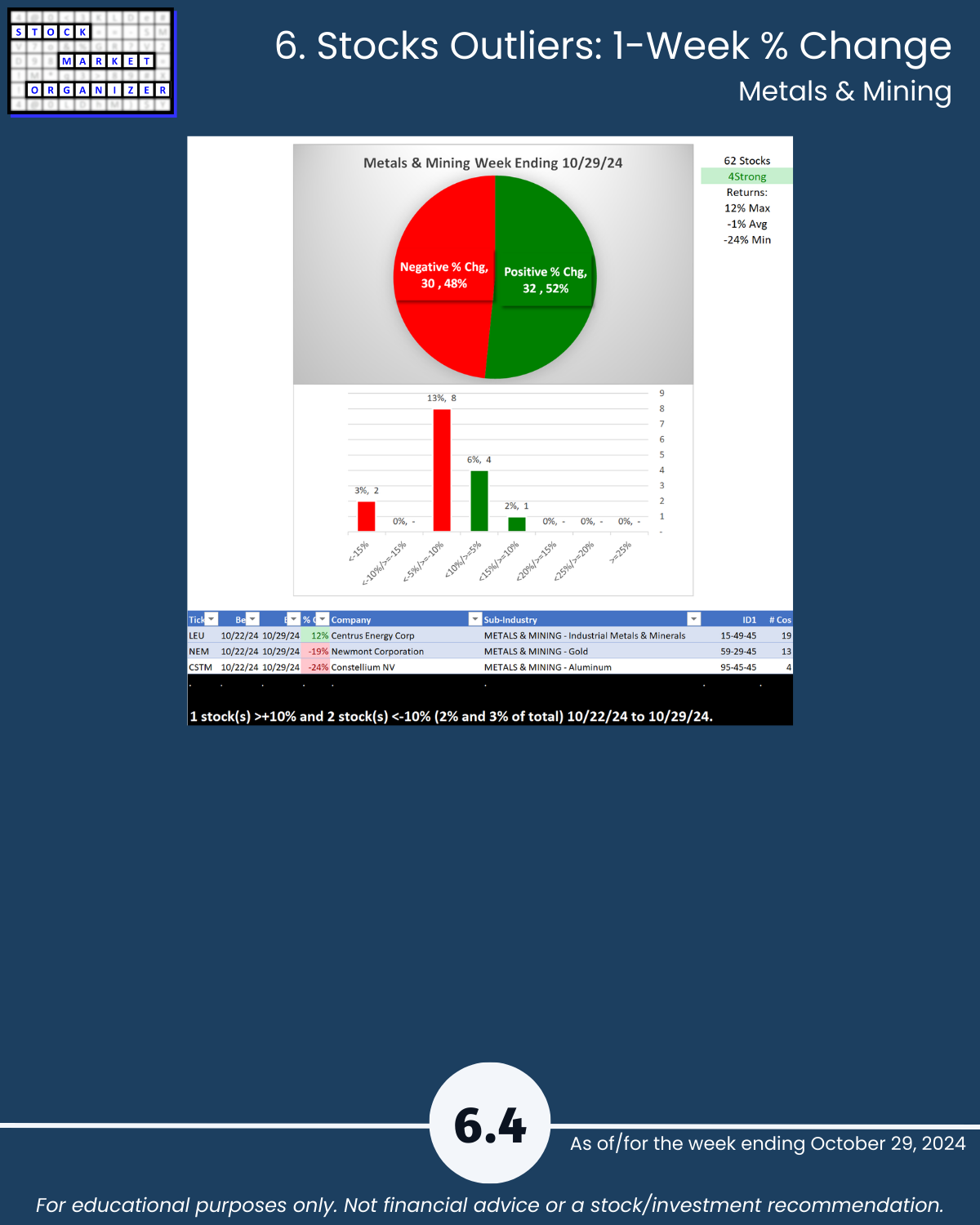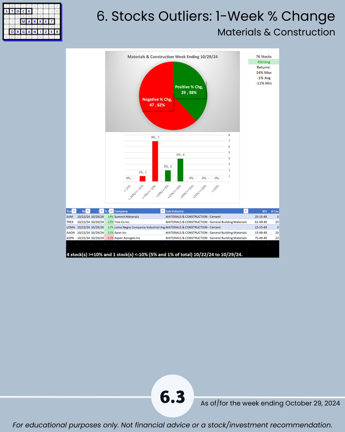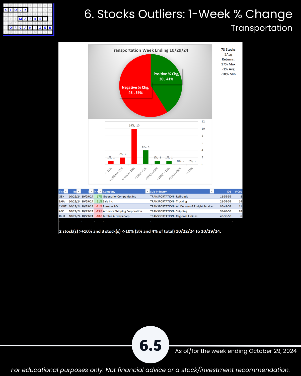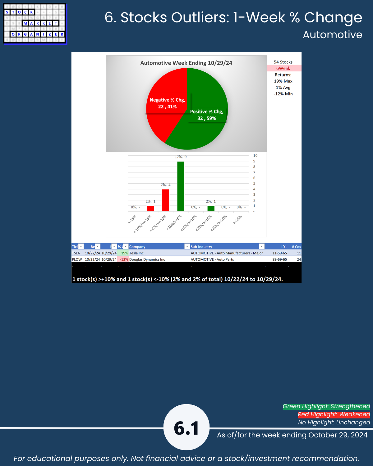 If you are interested in stacking strength as much as possible at the stock, sub-industry, industry, sector, and market levels, this report is for you. Below: the as of/for the week ending 10/29/24 Stock Market Organizer Industry Group 1 Strength Report, which covers the Automotive, Energy, Materials & Construction, Metals & Mining, and Transportation industries.