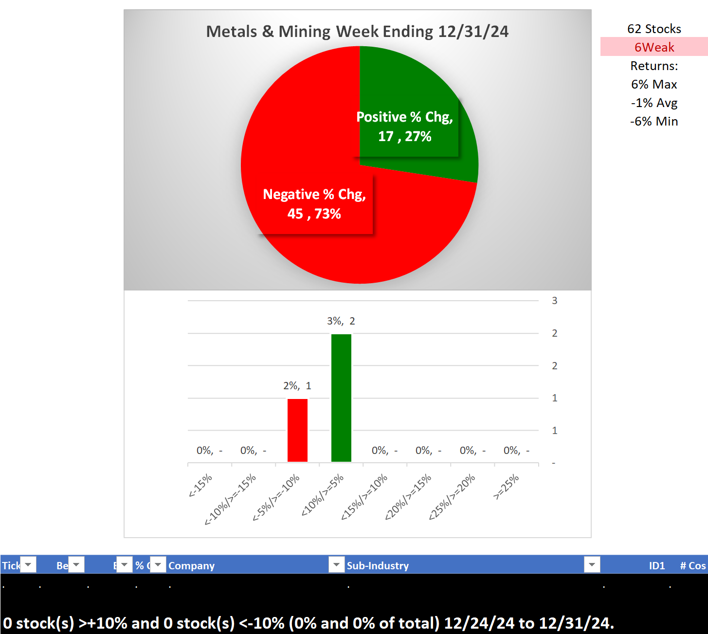 - Metals & Mining was unchanged at 6Weak = headwind