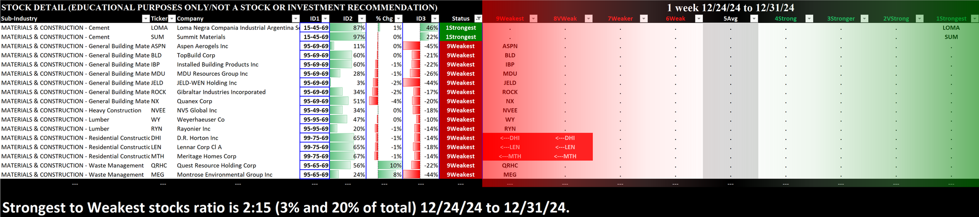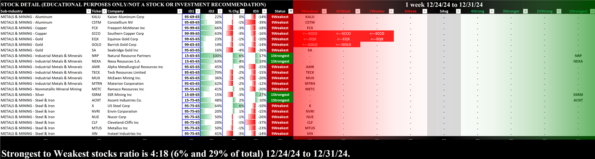 SMO Exclusive: Strength Report Industry Group 1 2024-12-31 Weakened -0.2 to 6.0 Strength Score