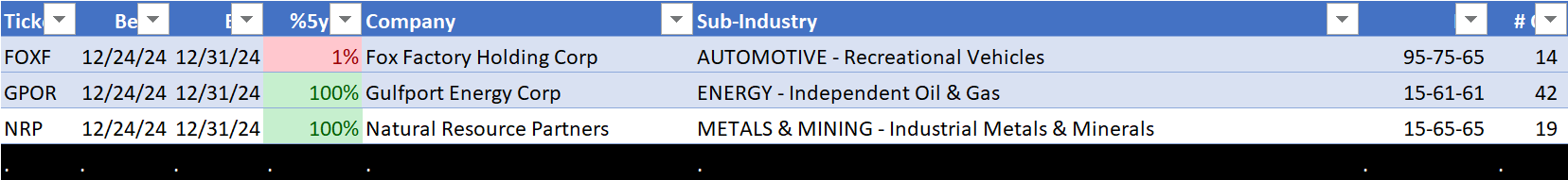 Note this analysis is the same as that used for the SPDR ETFs published every Tuesday and Friday (here is today's report dated December 31, 2024) but the two main differences are: