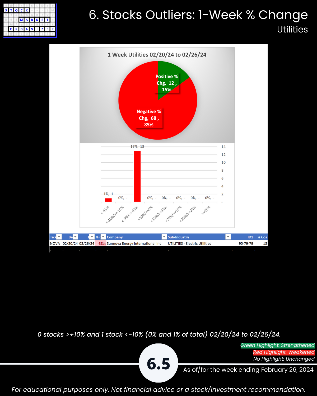 🔹 Weakest Industry: Utilities, 85% negative stocks (Weaker, 7th strongest)