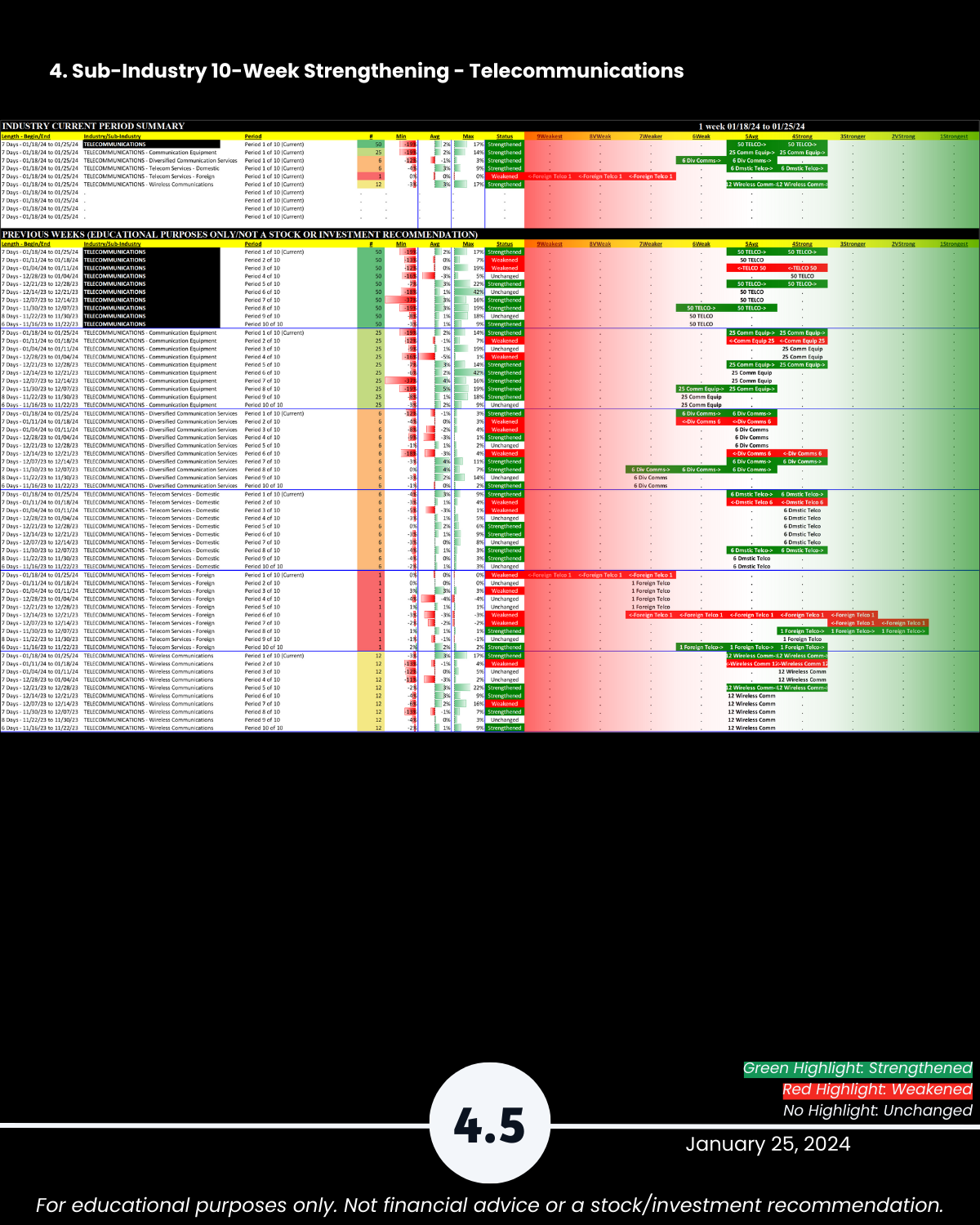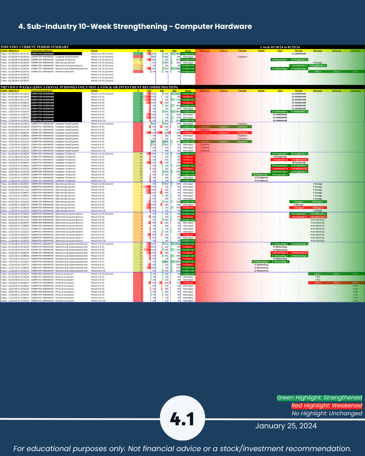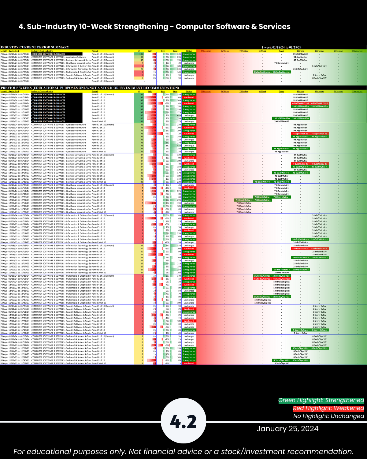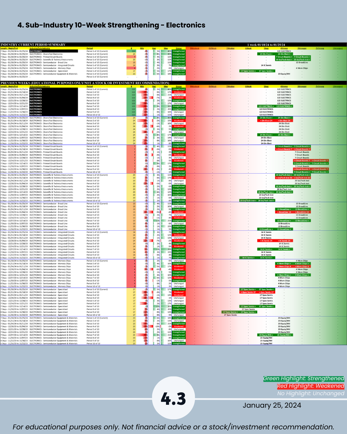 3-4. Industry and Sub-industry 10-Week Strengthening