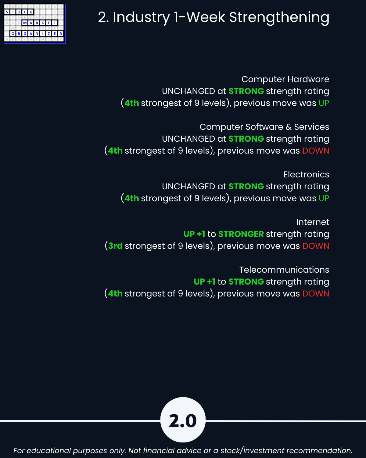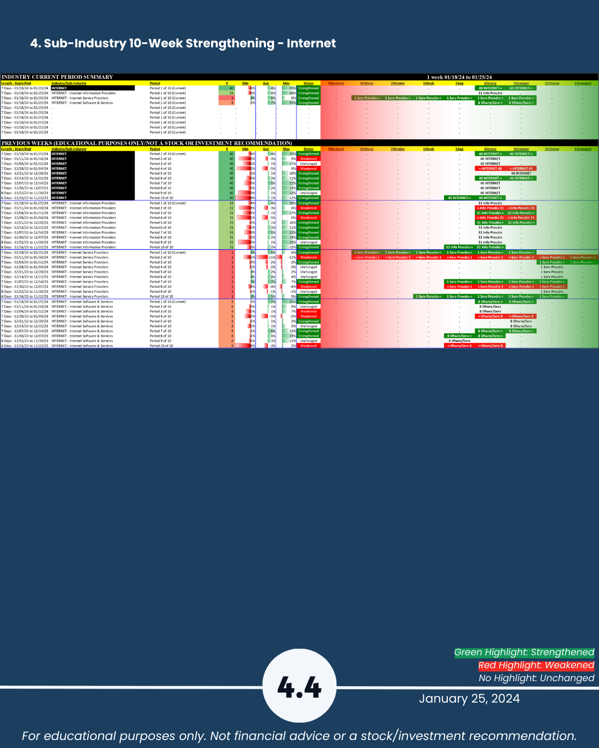 🔹 Internet industry strongest ranked at “Stronger” (3rd strongest of 9 levels)