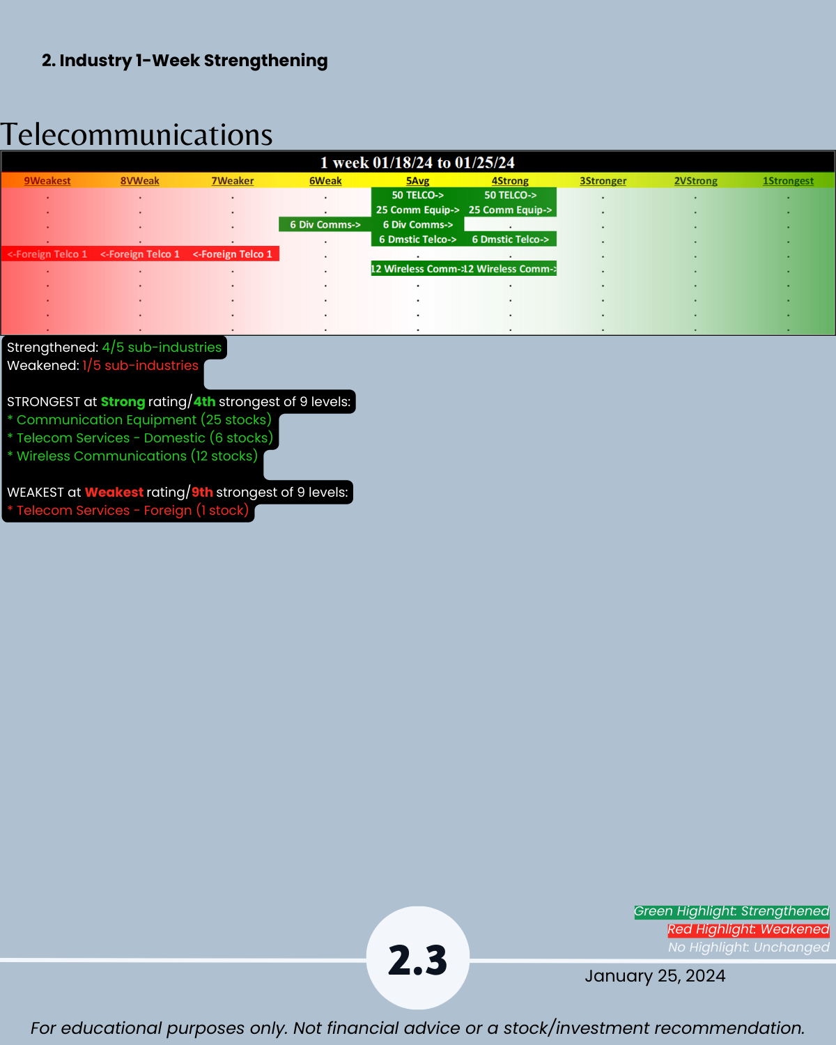 🔹 30 Sub-industries - 16 strengthened, 1 weakened (53%/3%)