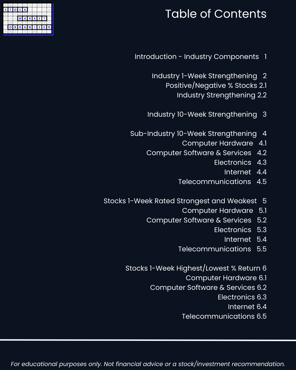 🔹 Objective strengthening measurements of all stocks in a sub-industry and industry.