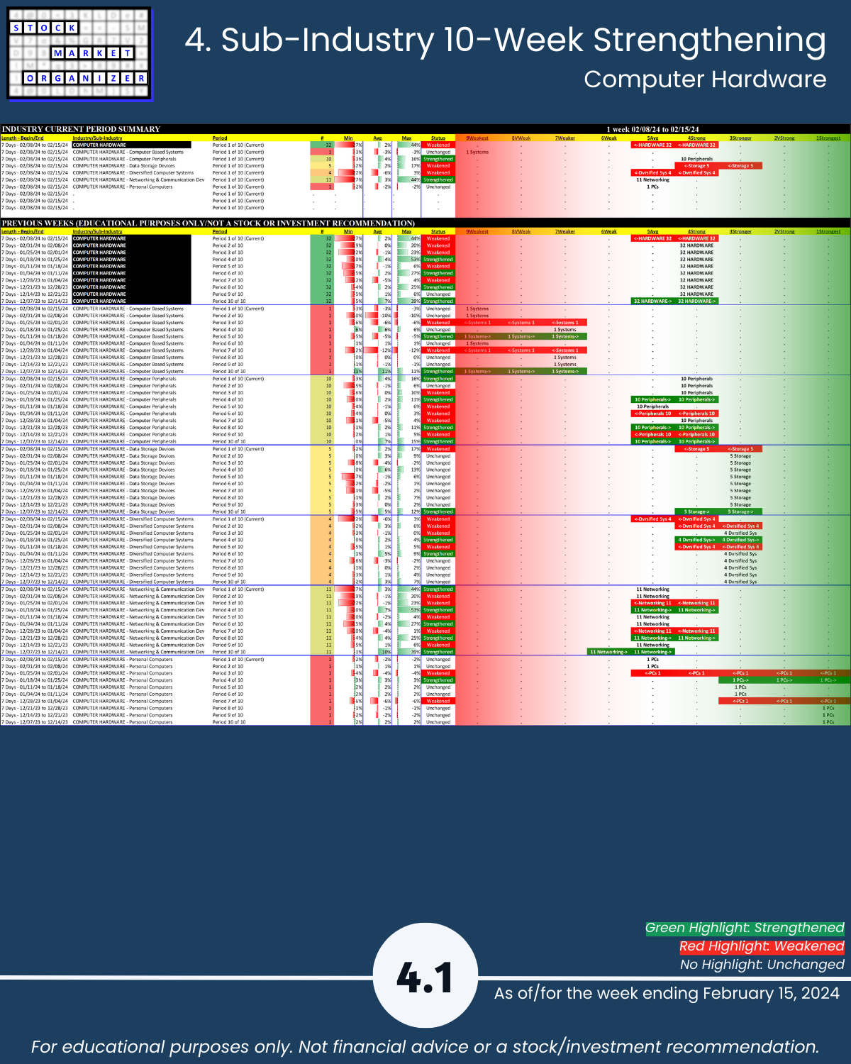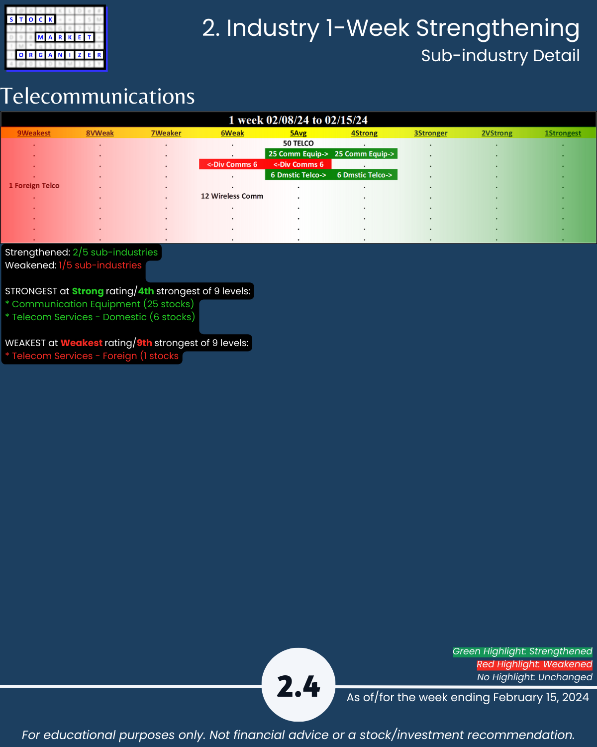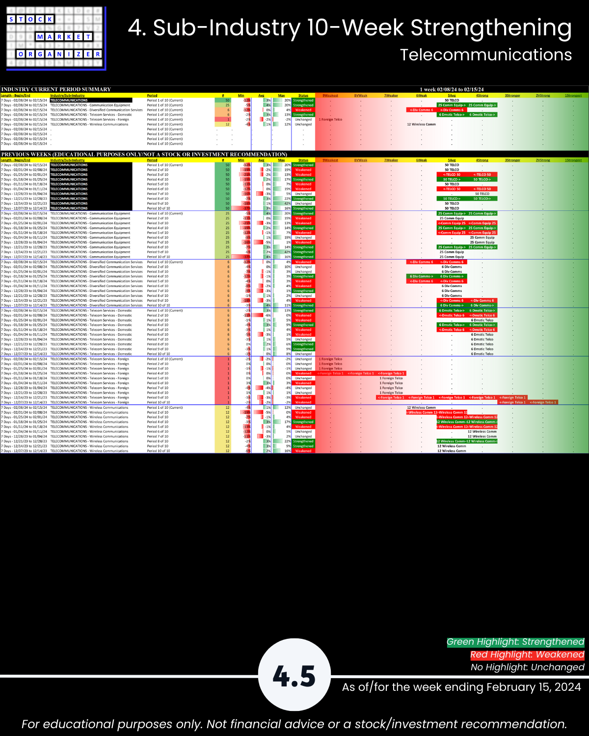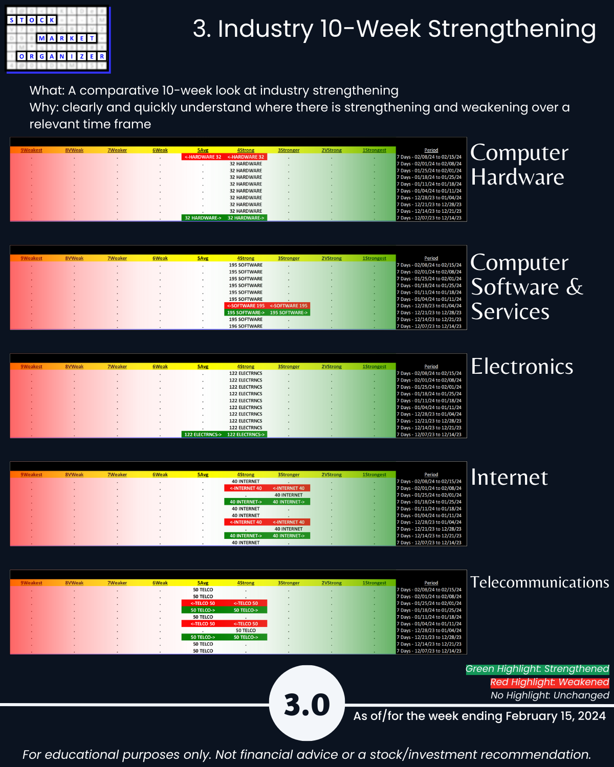 ๐น Weakest Industries: Computer Hardware (WEAKENED this week), Telecommunications (Average, 5th strongest)