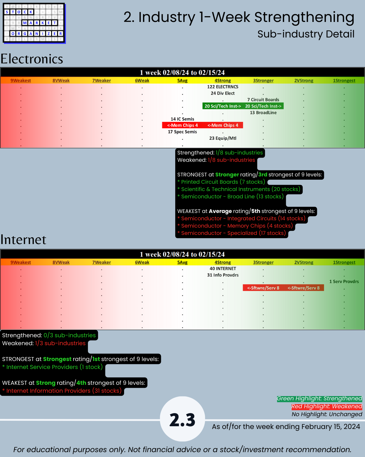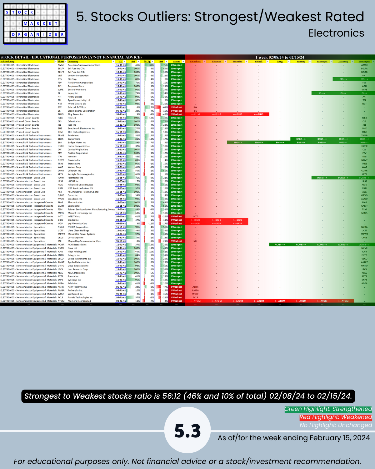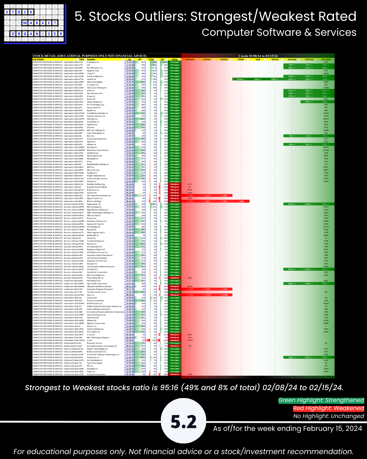 ๐น Stocks rated Strongest:Weakest: Computer Software 49%:8% of total, Electronics 46%:10%, Internet 50%:10%
