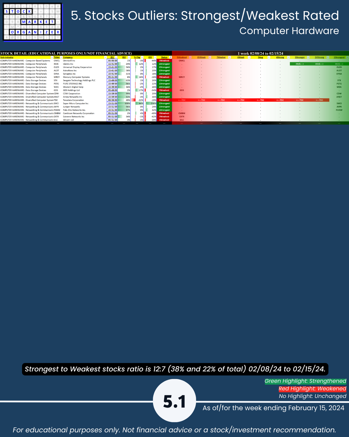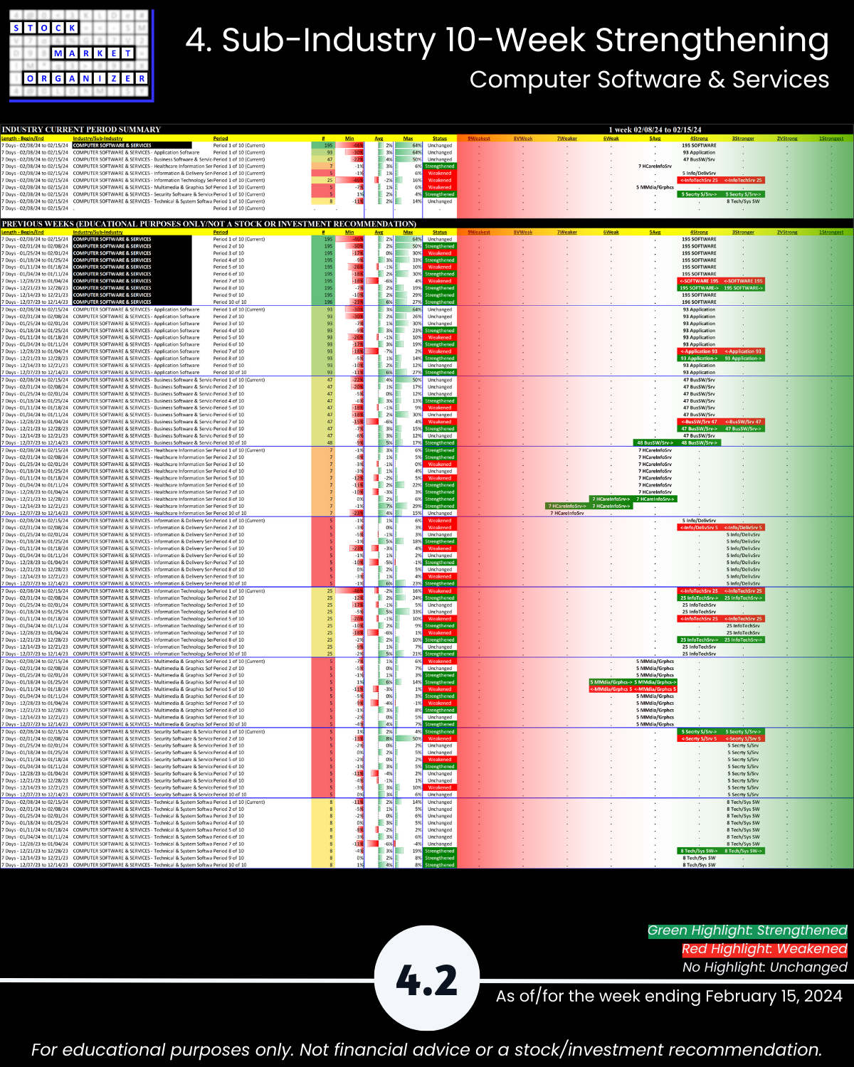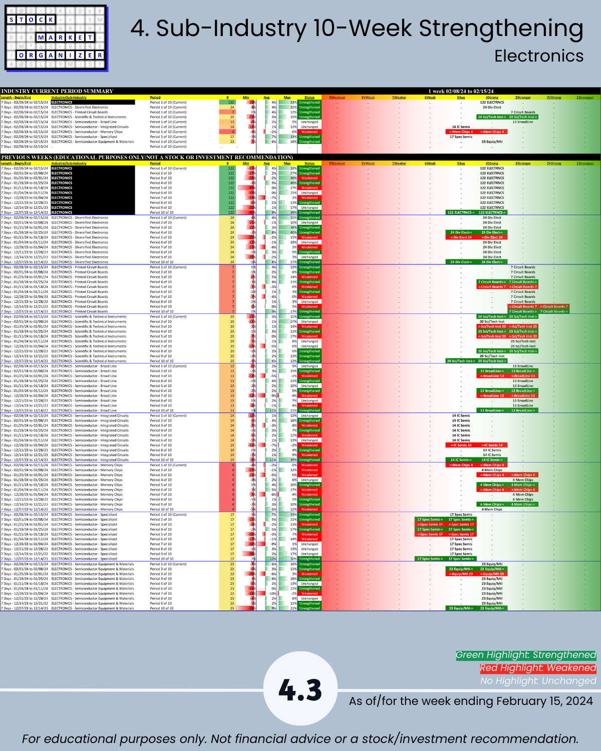 ๐น Stocks rated Strongest:Weakest: Computer Software 49%:8% of total, Electronics 46%:10%, Internet 50%:10%