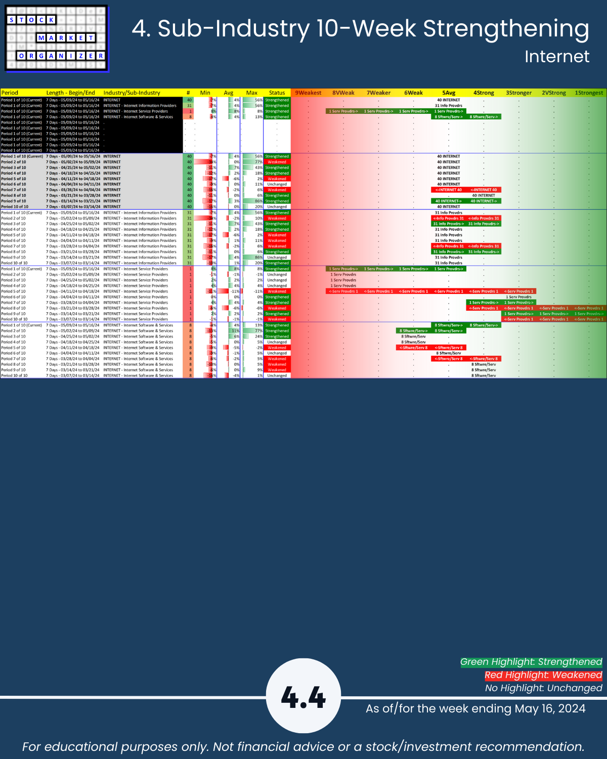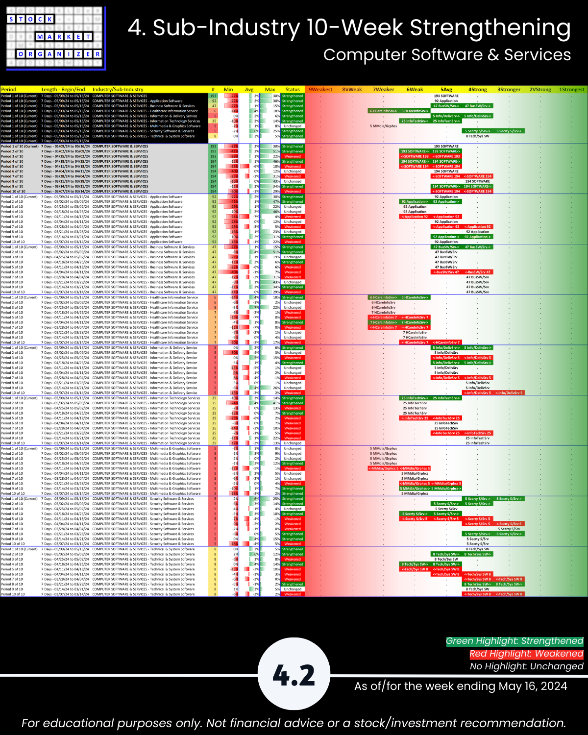 For the full Premium version, which includes the Sections 5, 6, and 7 stocks detail that takes full advantage of the sector, industry, and sub-industry strength and weakness insights available in this free report, please sign up here then read this premium report. For an example of the detail in this section, please see Sections 5, 6, and 7 of the May 8, 2024 Financial sector report.