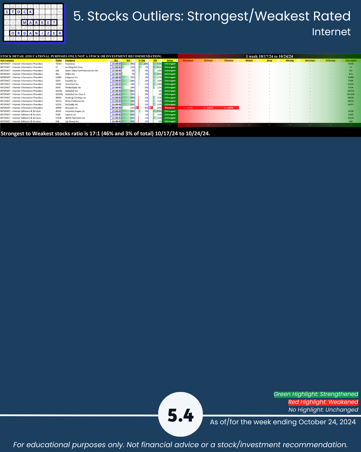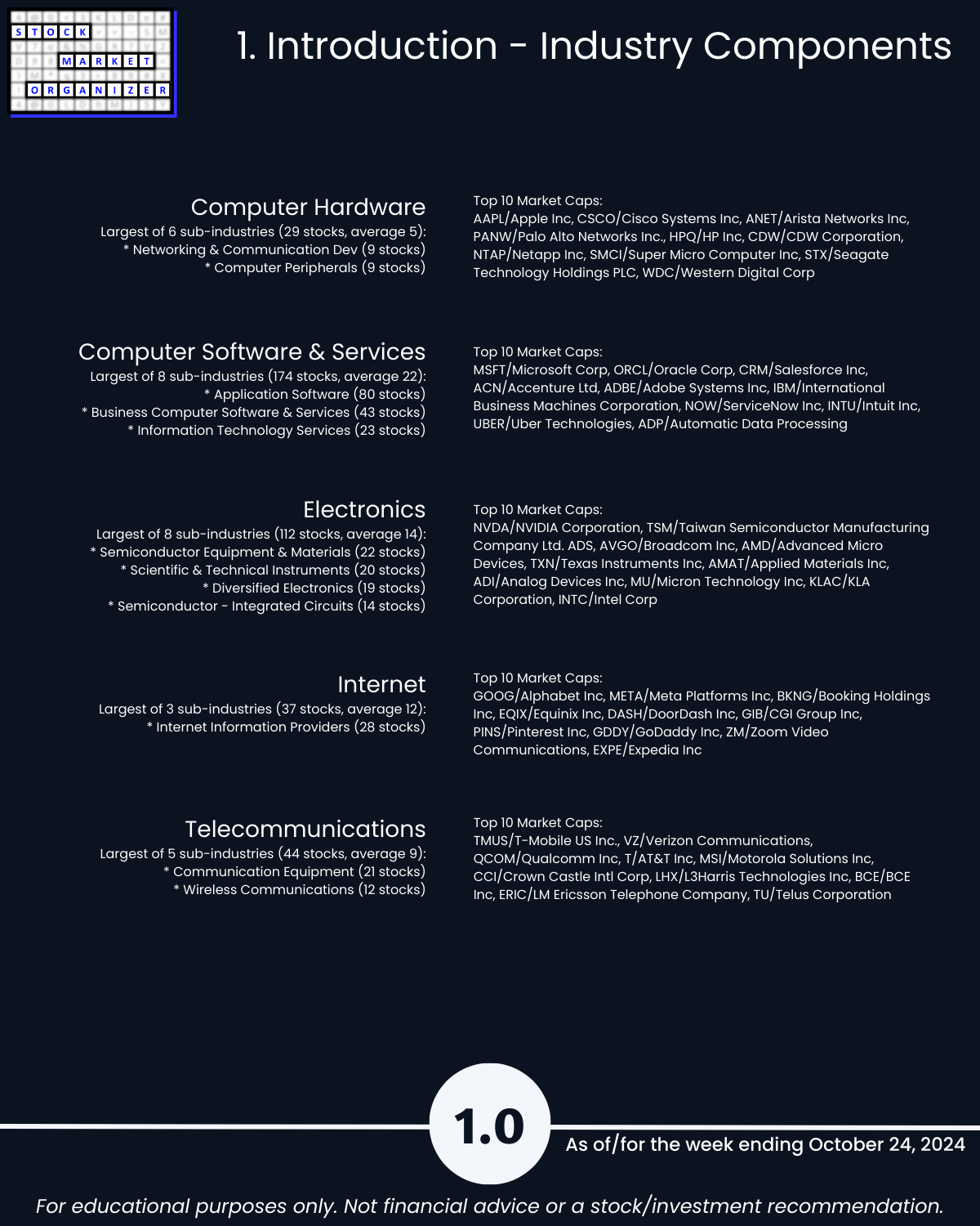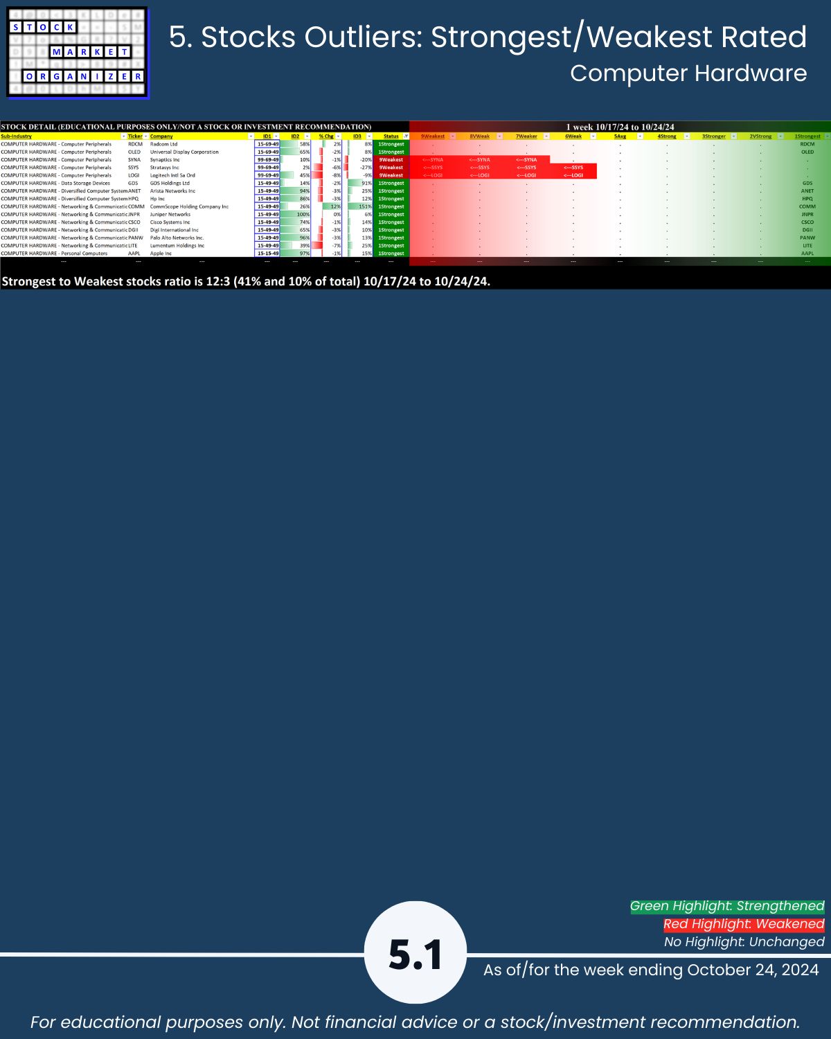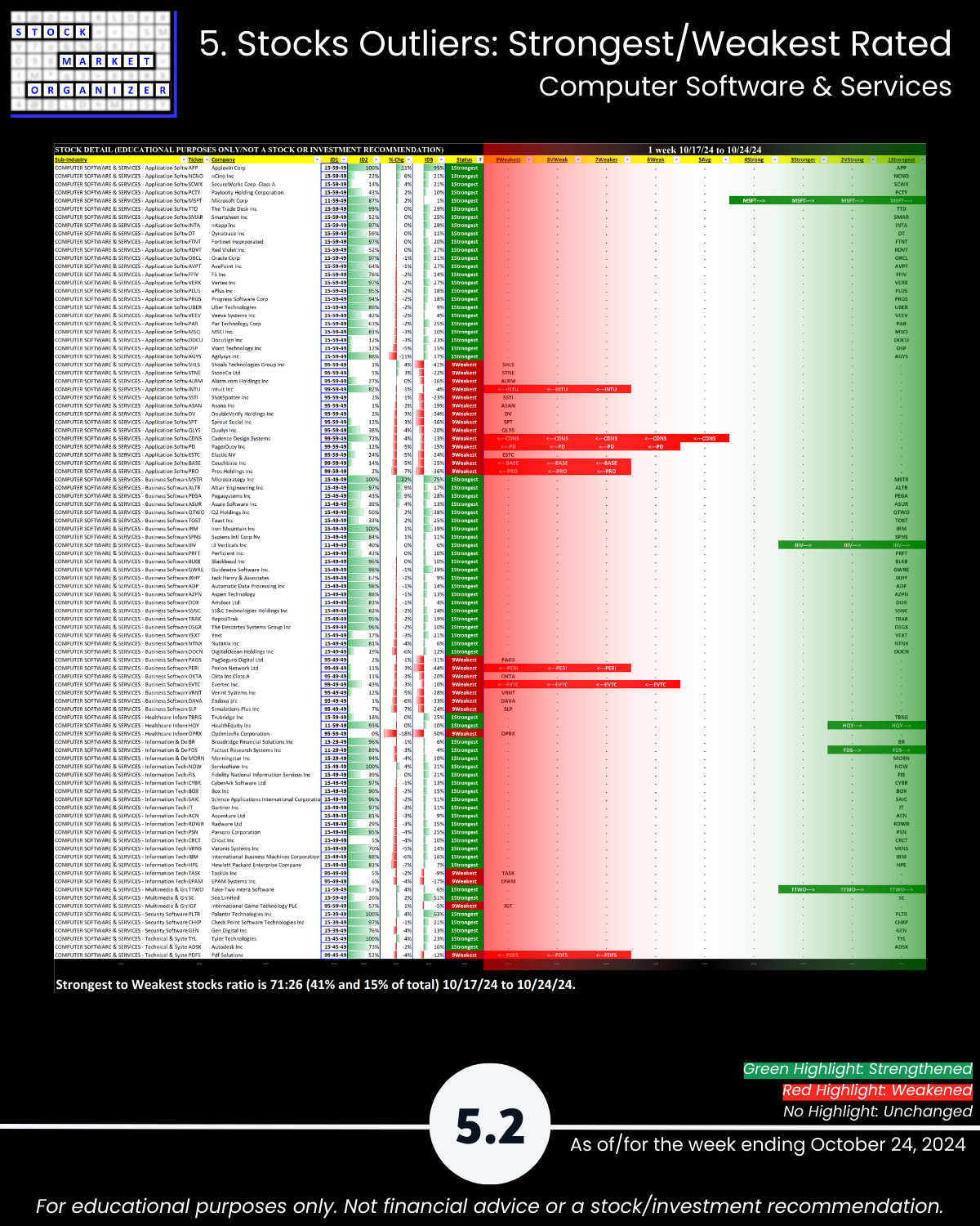 For the week ending Thursday, October 24, 2024, mild Weakening in Computer Hardware, Computer Software & Services, Electronics (Chips/Semiconductors), Internet, and Telecommunications.