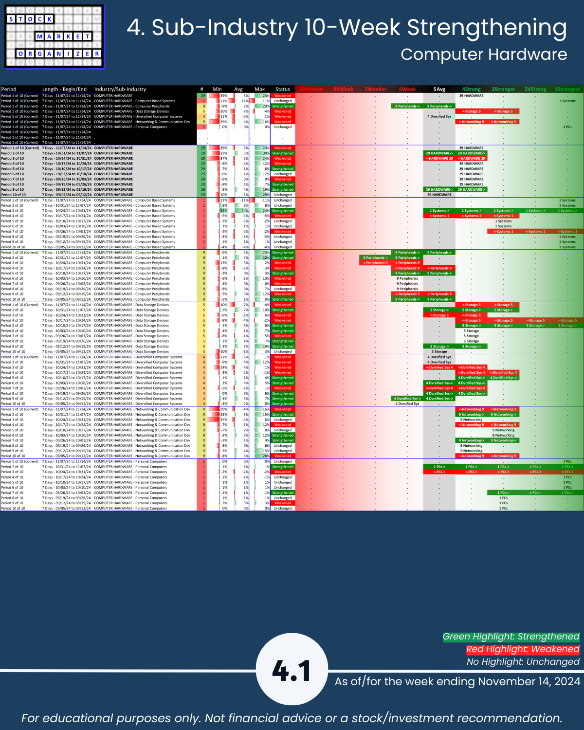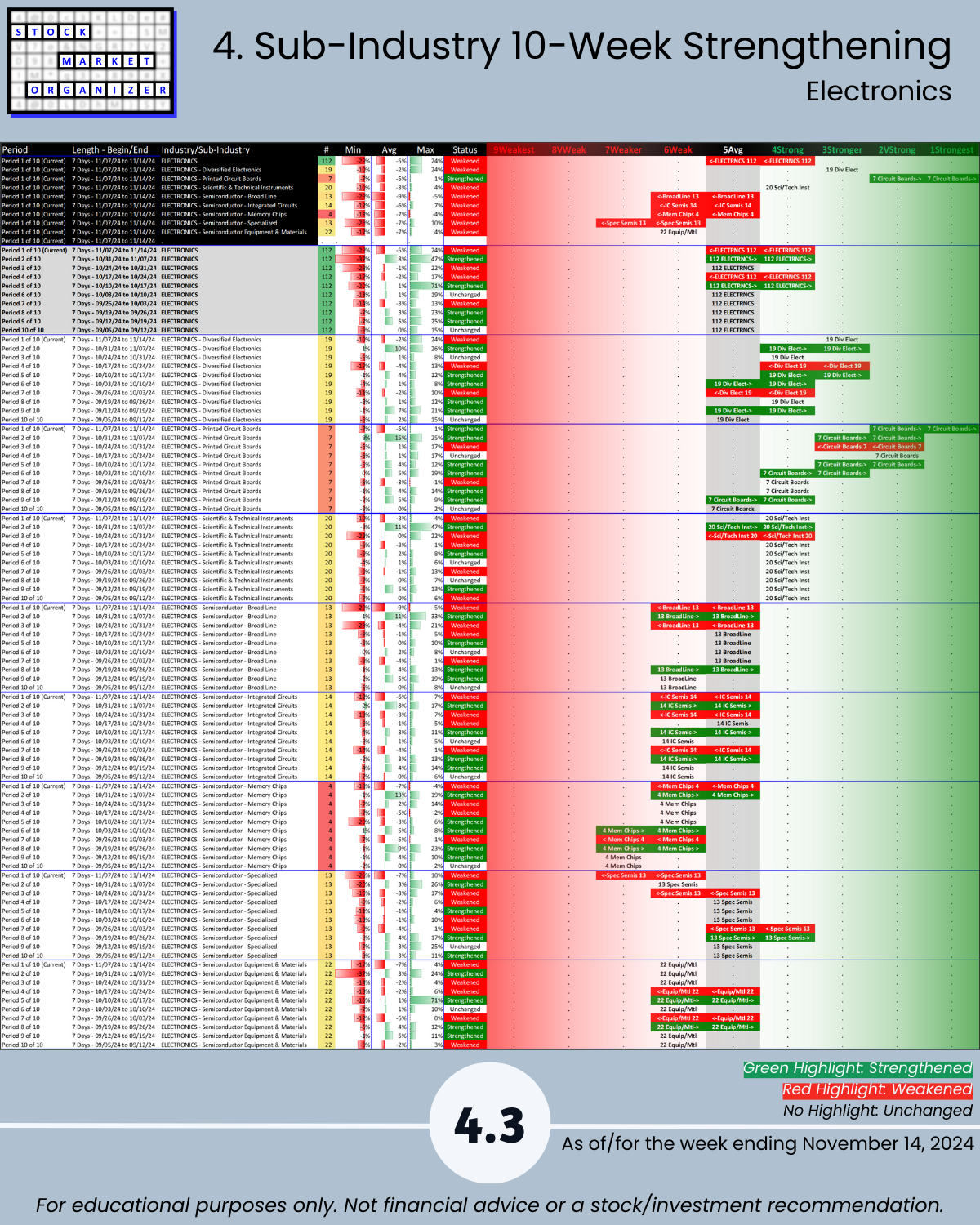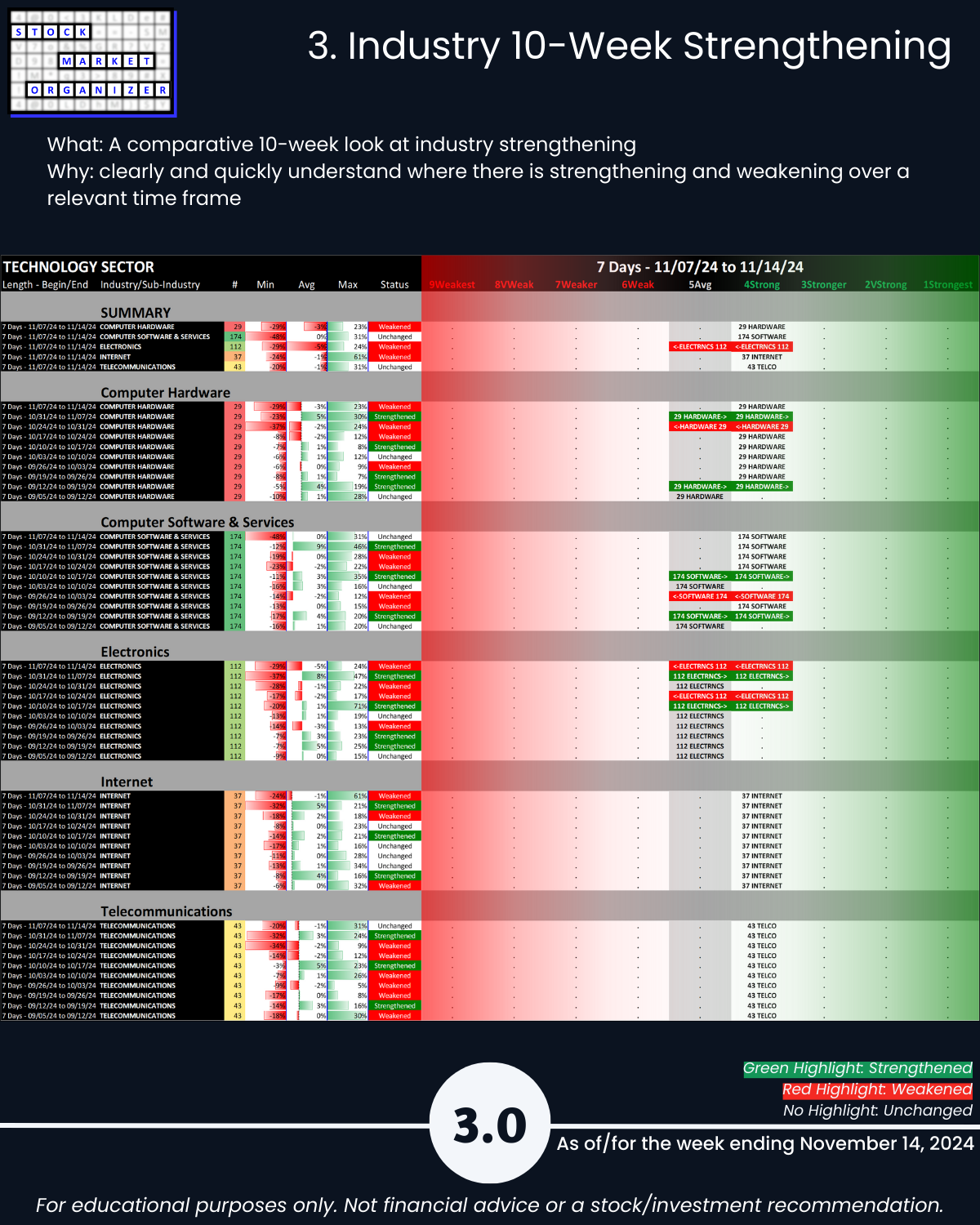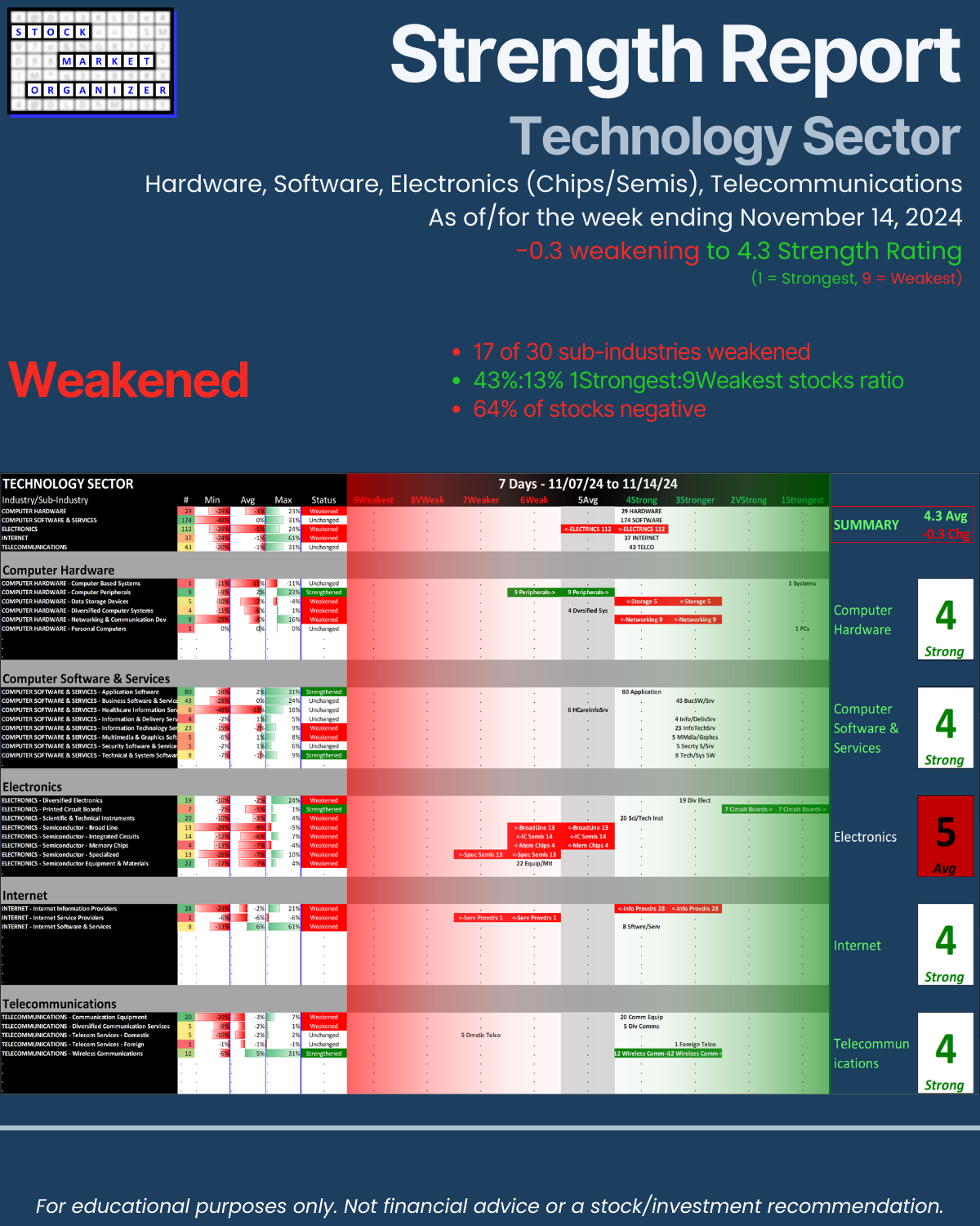 SMO Exclusive: Strength Report Technology Sector 2024-11-14 Weakened -0.3 to 4.3 Strength Score