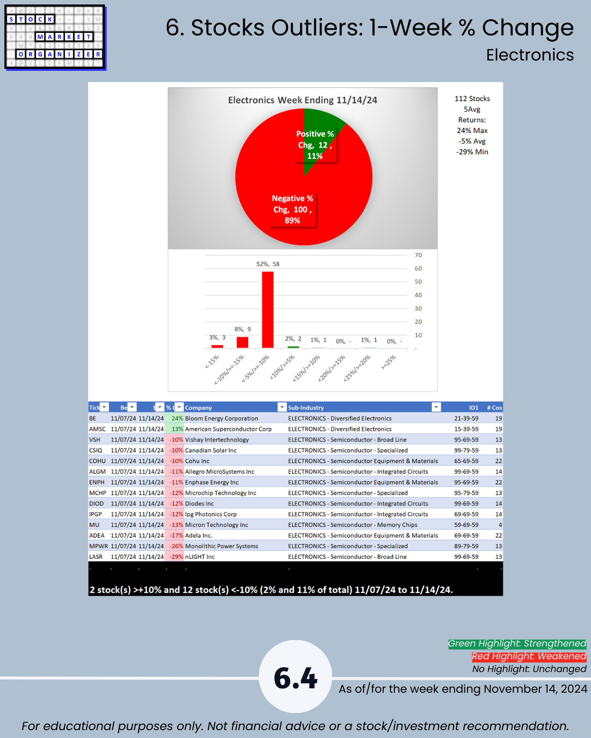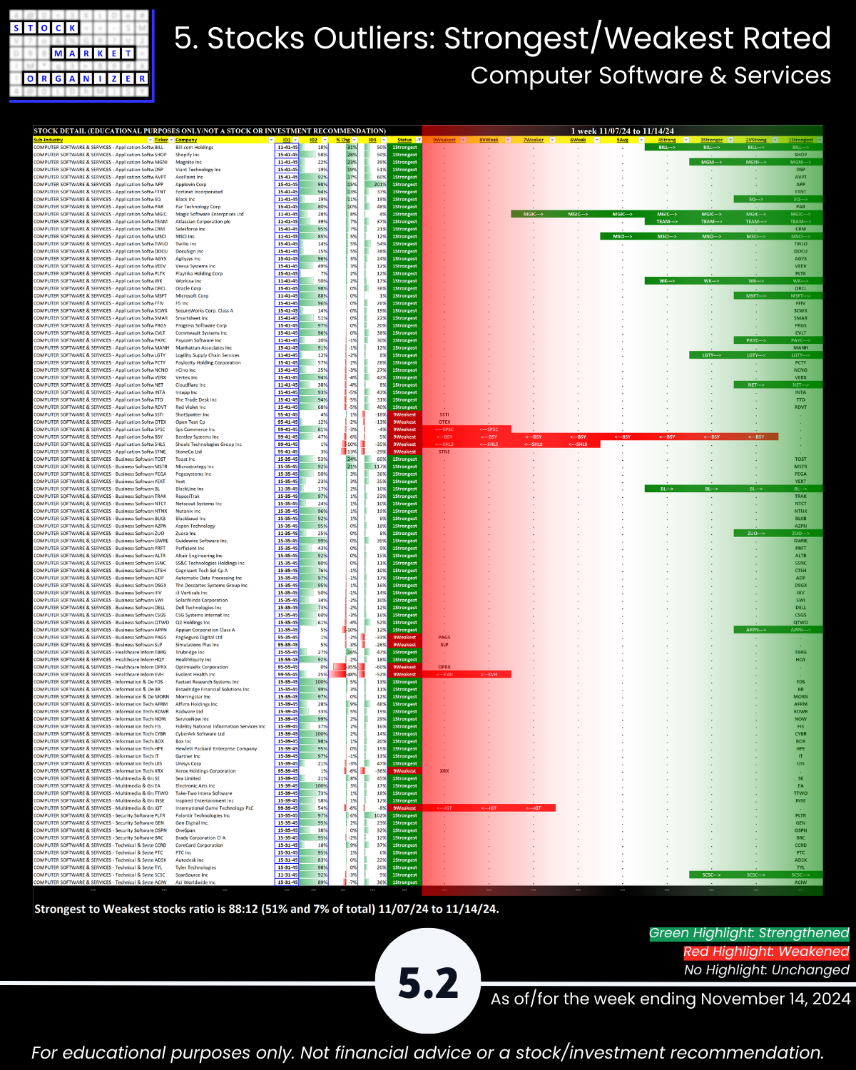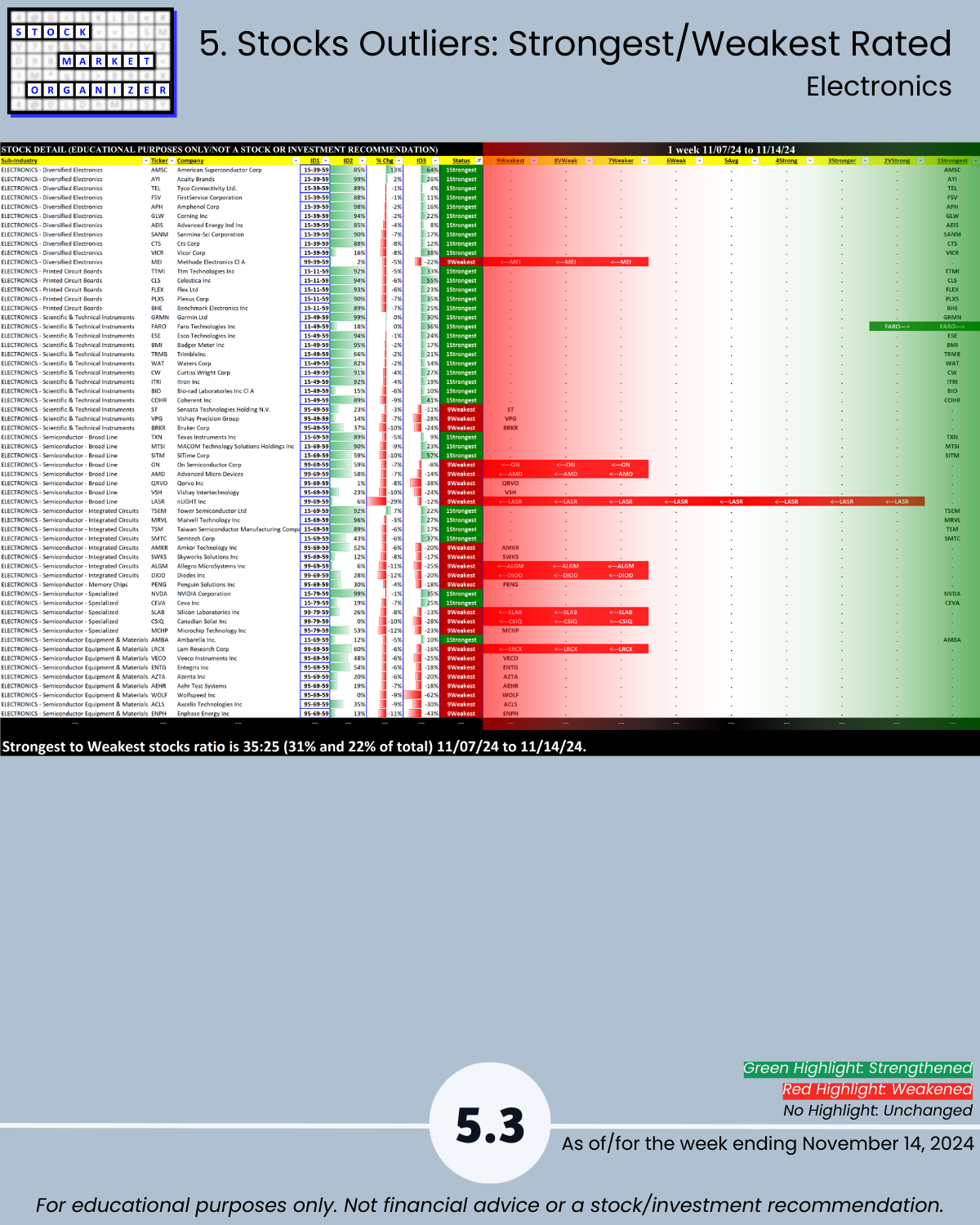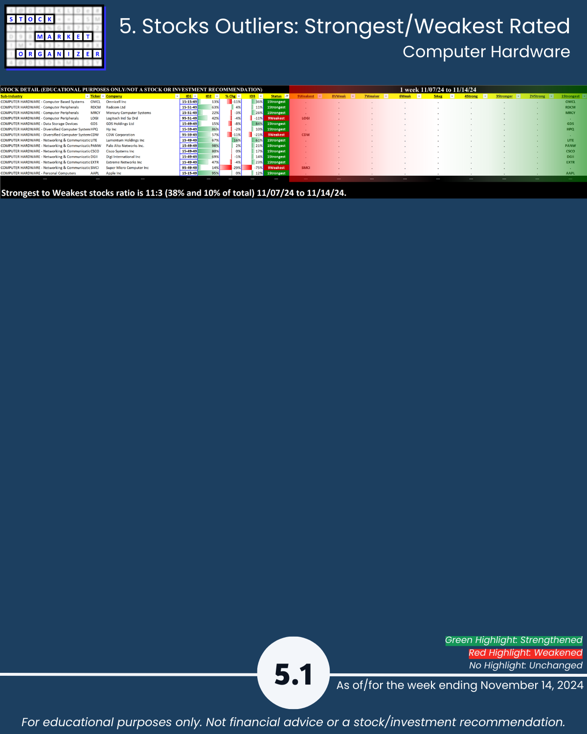 SMO Exclusive: Strength Report Technology Sector 2024-11-14 Weakened -0.3 to 4.3 Strength Score