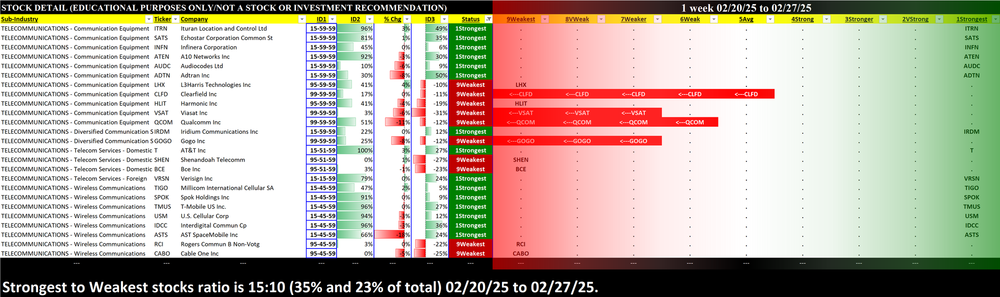 The Technology sector weakened -1.0 points to a 5.7 overall rating. If at all interested in positions in this sector, it is better to go where there is strength/strengthening - as reflected by price. This Stock Market Organizer methodology explicitly reveals this.