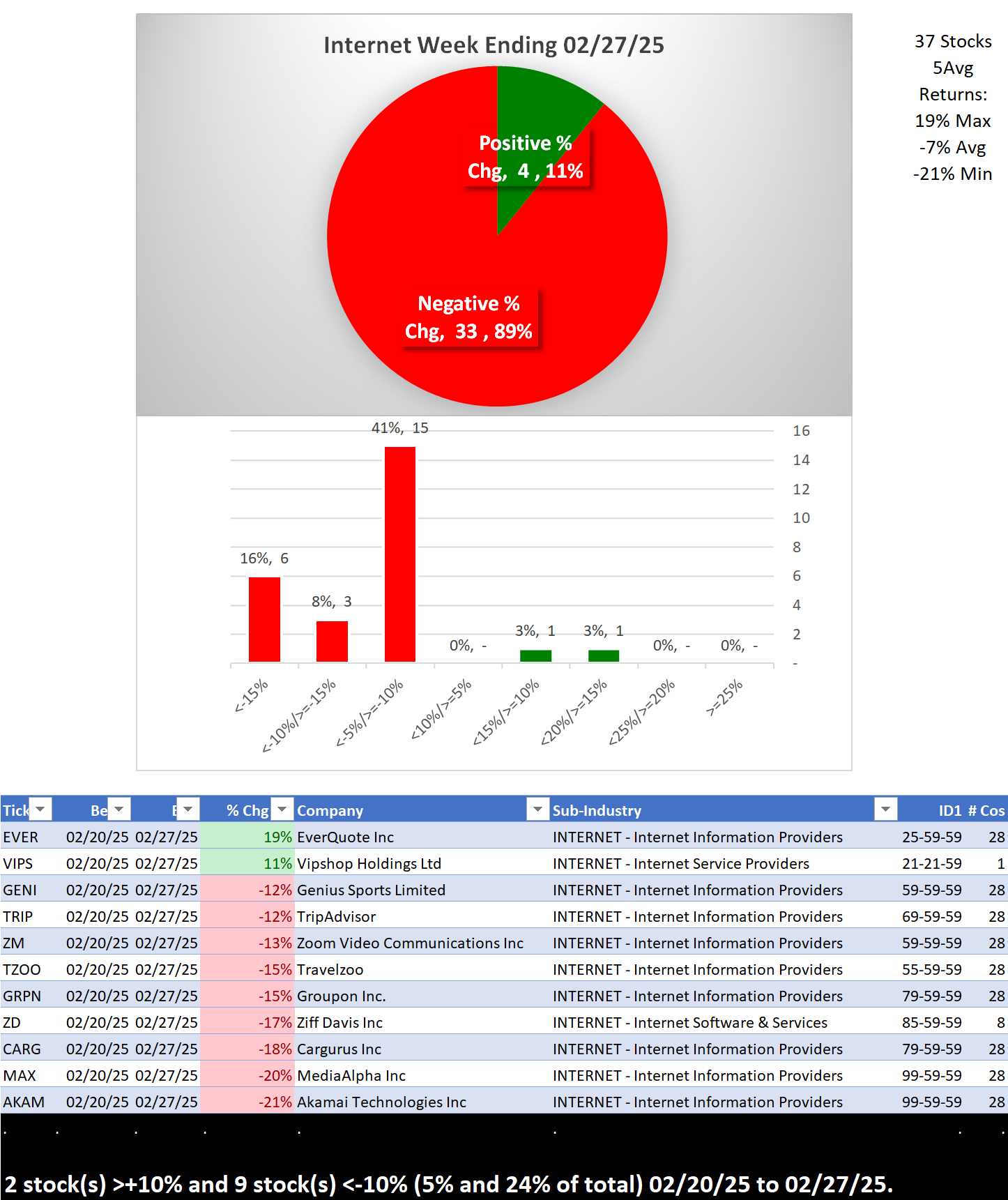 - INDUSTRY 1-Week Strengthening, Positive/Negative % Stocks