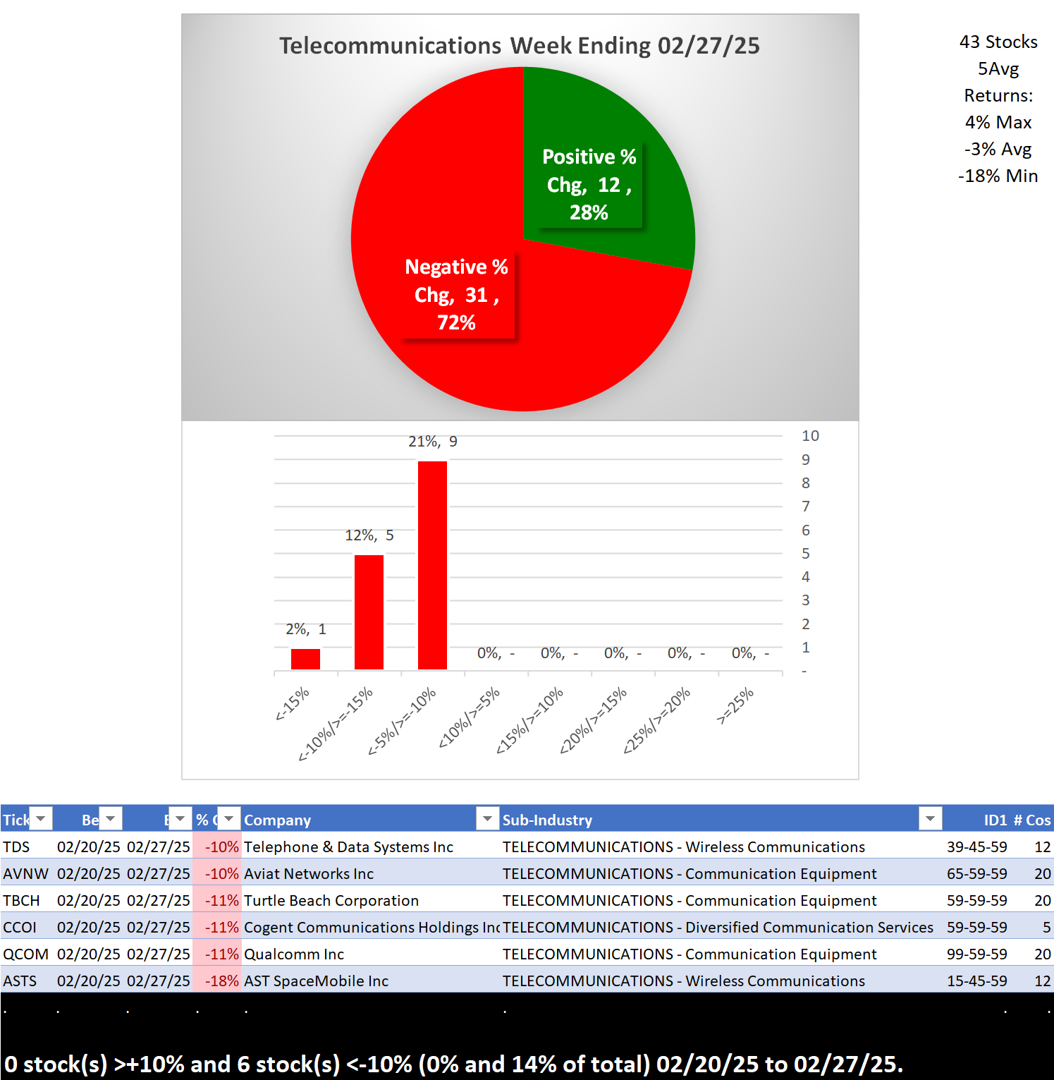 There is a Communications ETF (symbol XLC) which is separate from the Technology ETF (symbol XLK). The Technology sector in this analysis includes Telecommunications with Computer Hardware, Computer Software & Services, Electronics (Chips/Semis), and Internet.