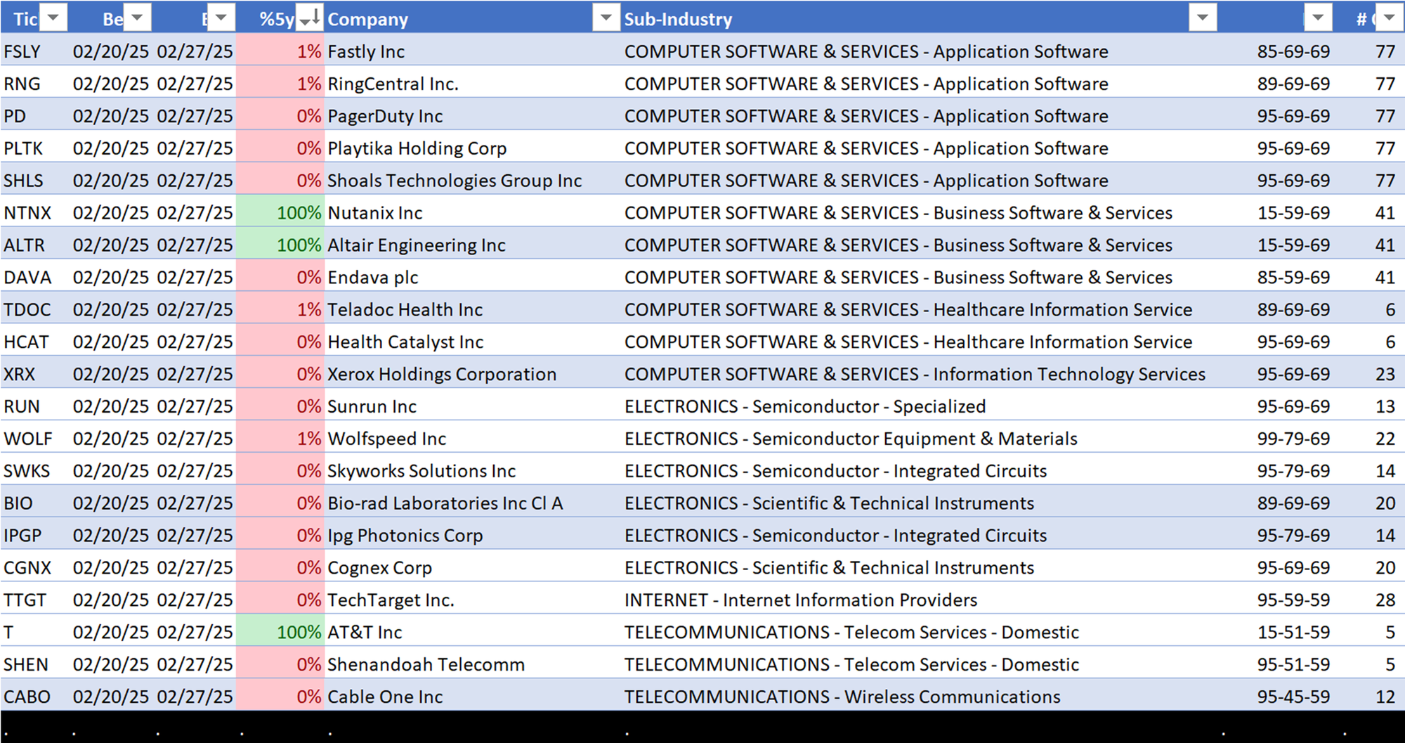 - Application Software (77 stocks)