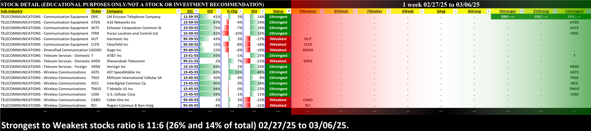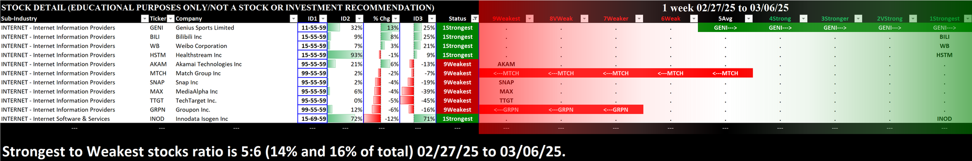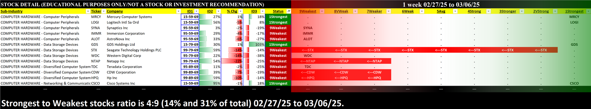 What: stocks currently rated 1Strongest/9Weakest (highest/lowest of 9 strength ratings)