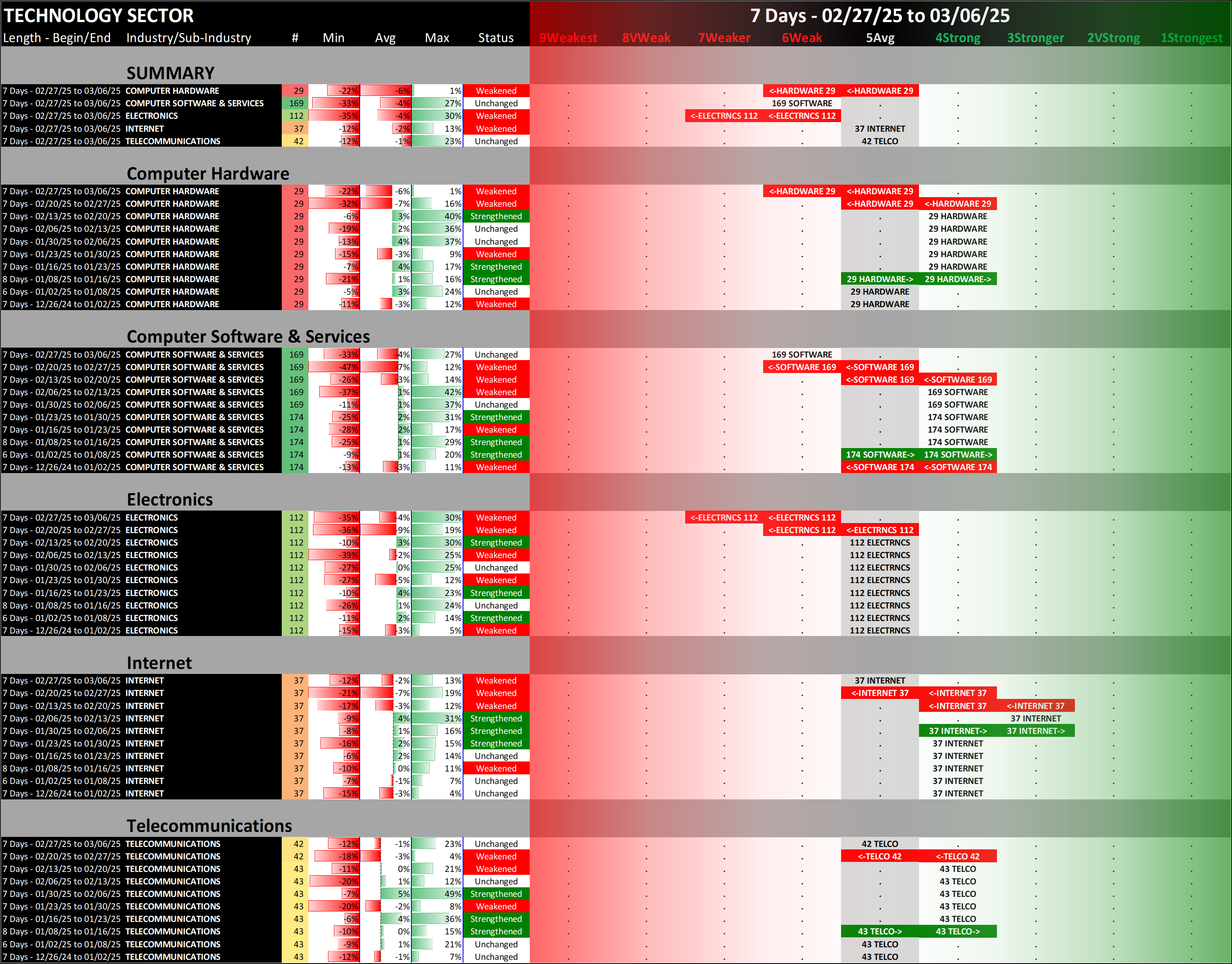 SMO Exclusive: Strength Report Technology Sector 2025-03-06 Weakened -0.4 to 6.1 Strength Score