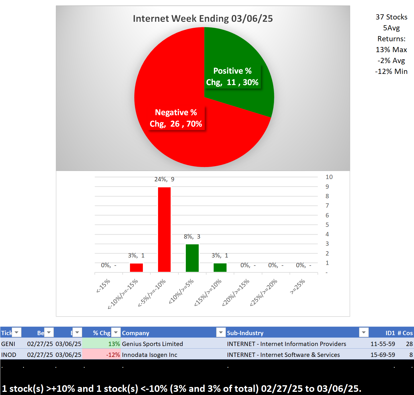 - INDUSTRY 1-Week Strengthening, Positive/Negative % Stocks
