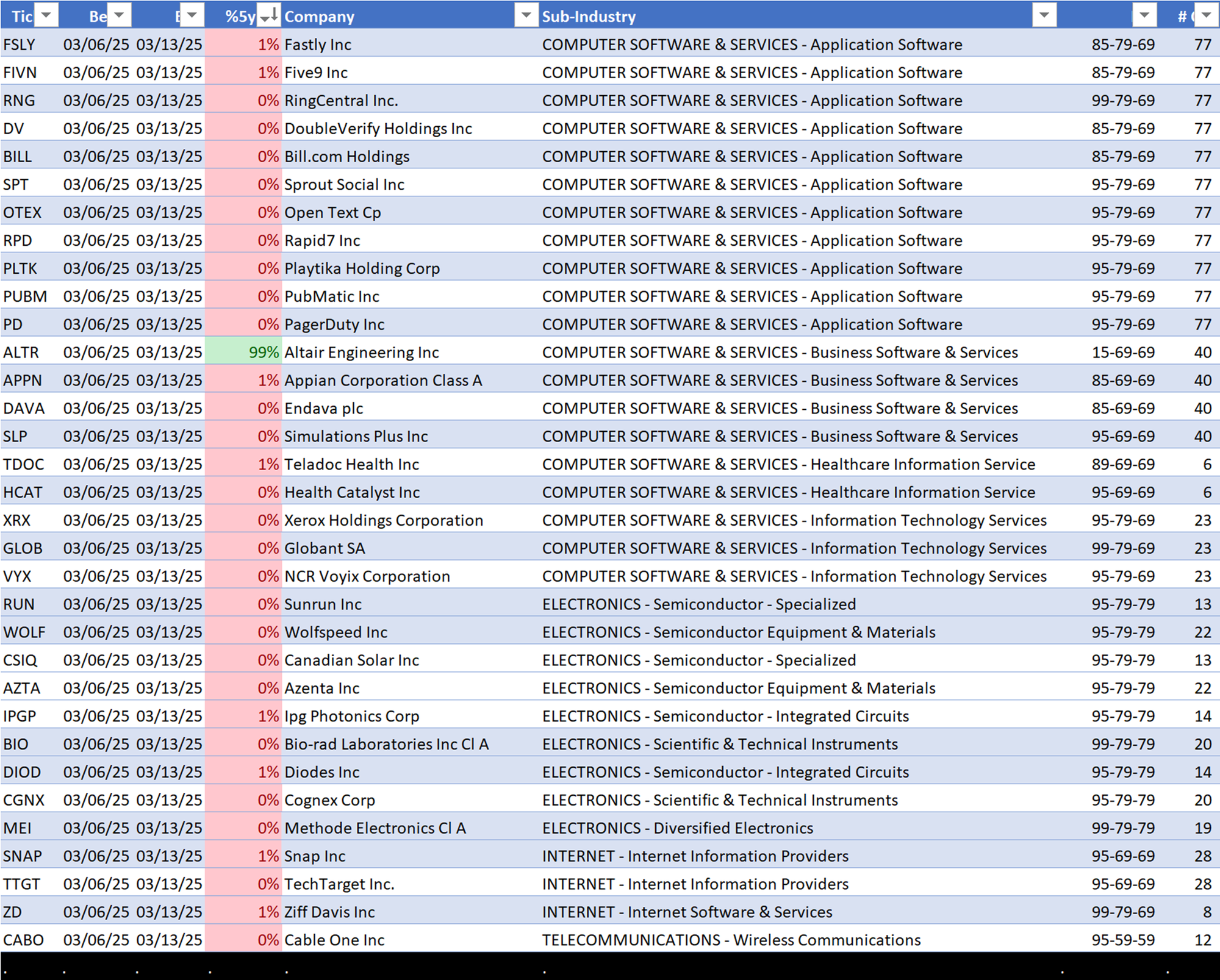 - Application Software (77 stocks)