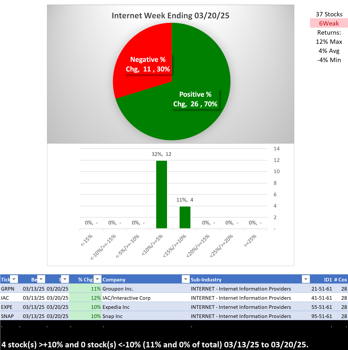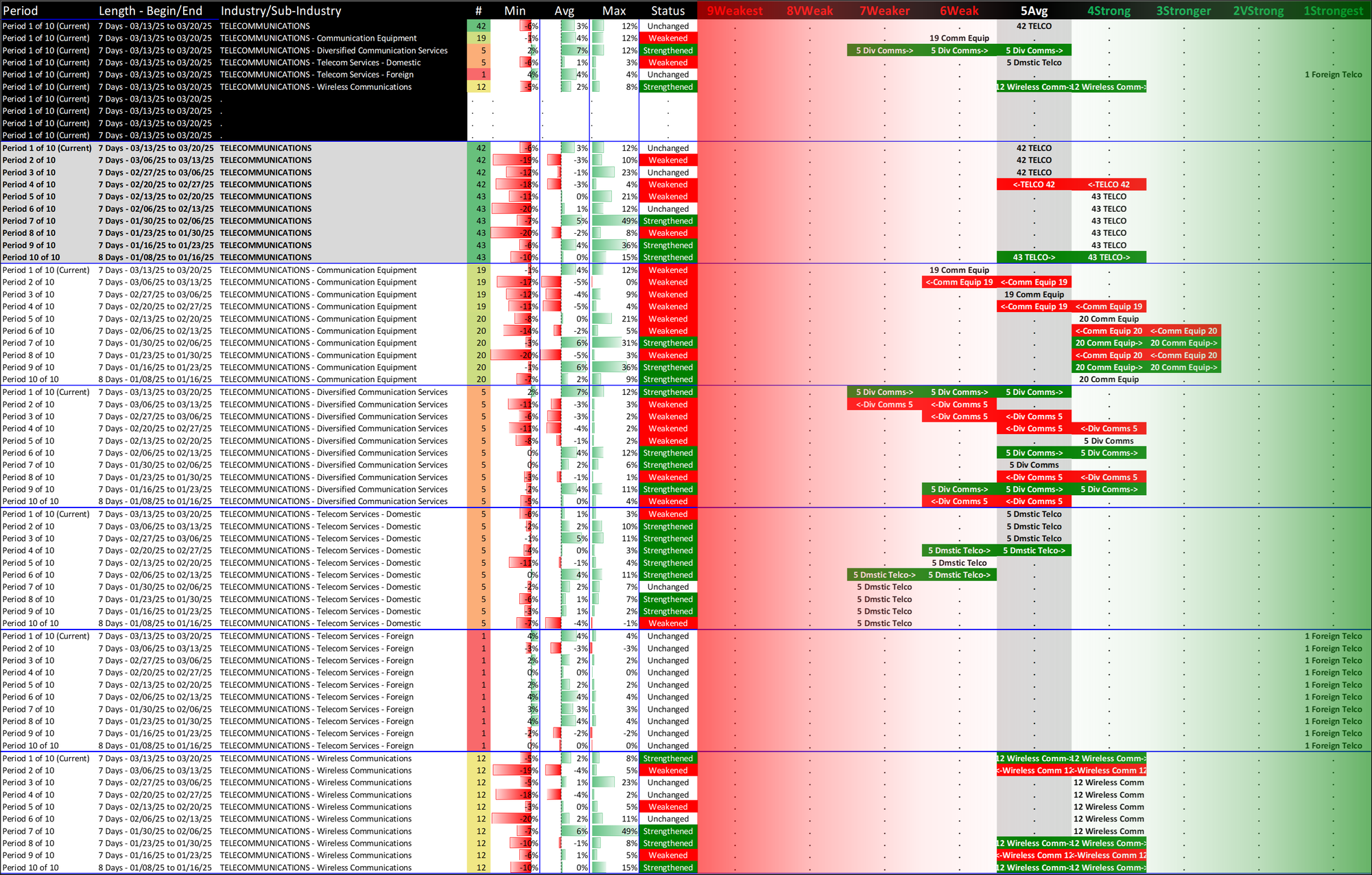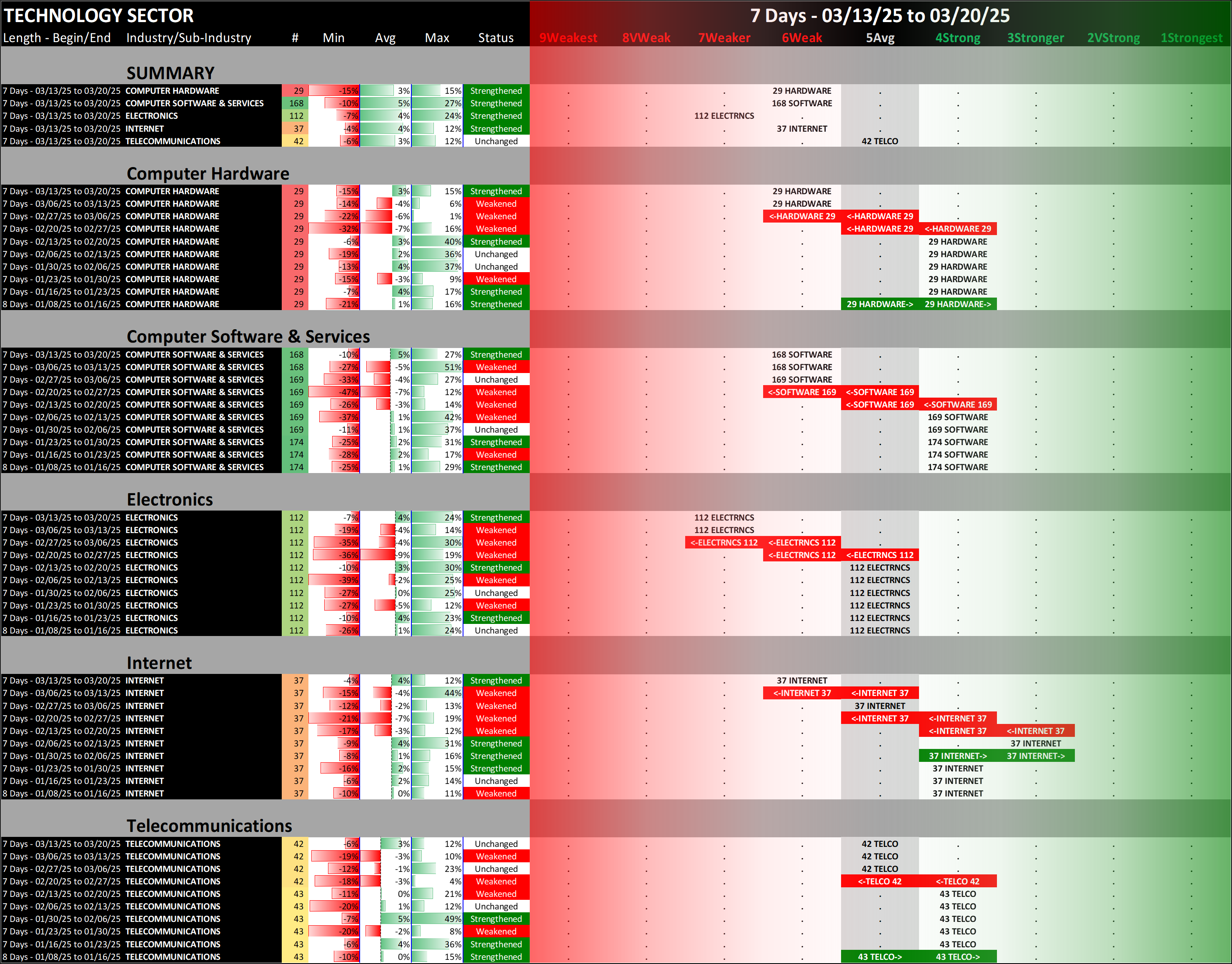 What: recent week-by-week strength changes for the industry and its sub-industries