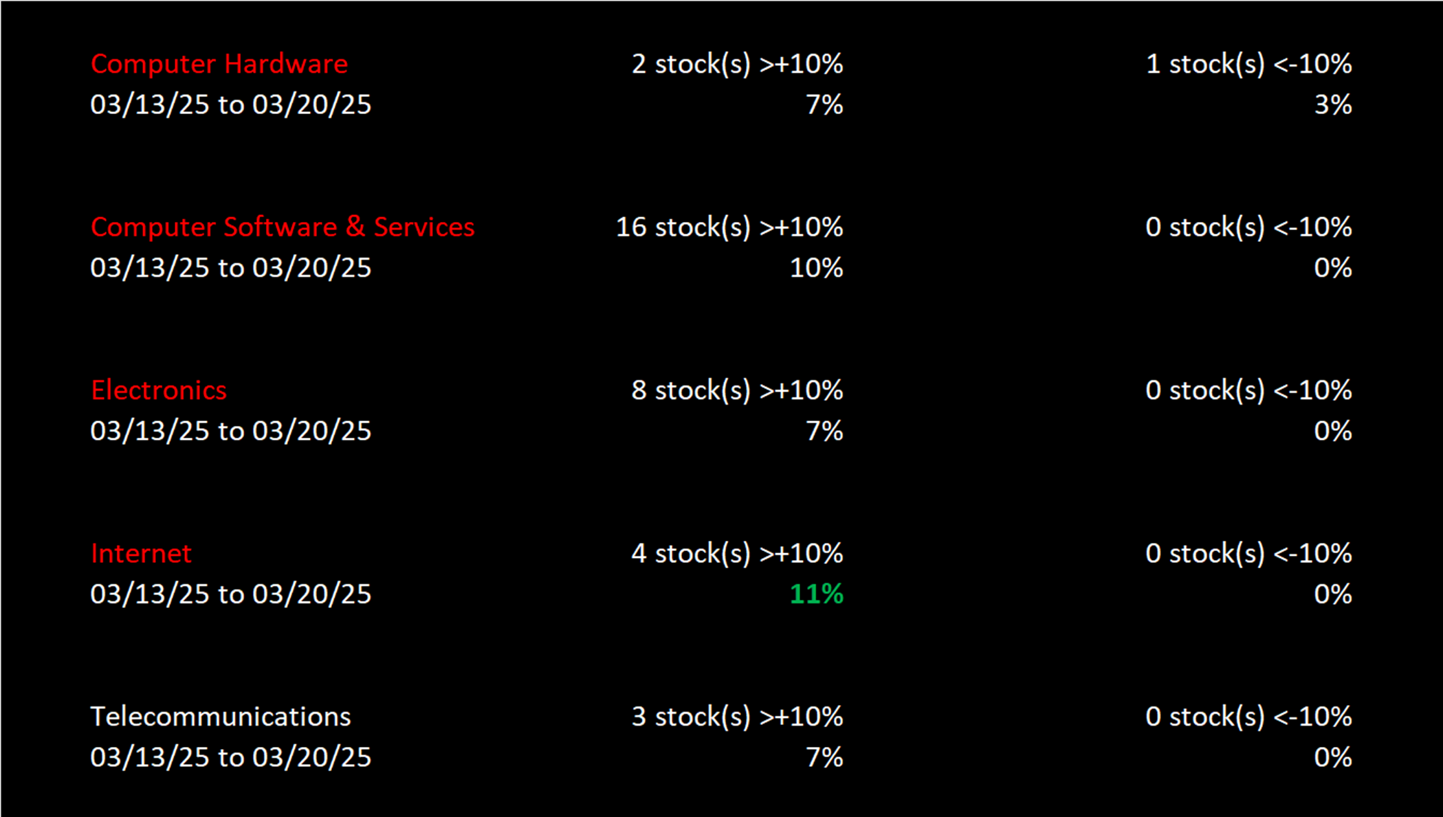 Sector Weekly Summary