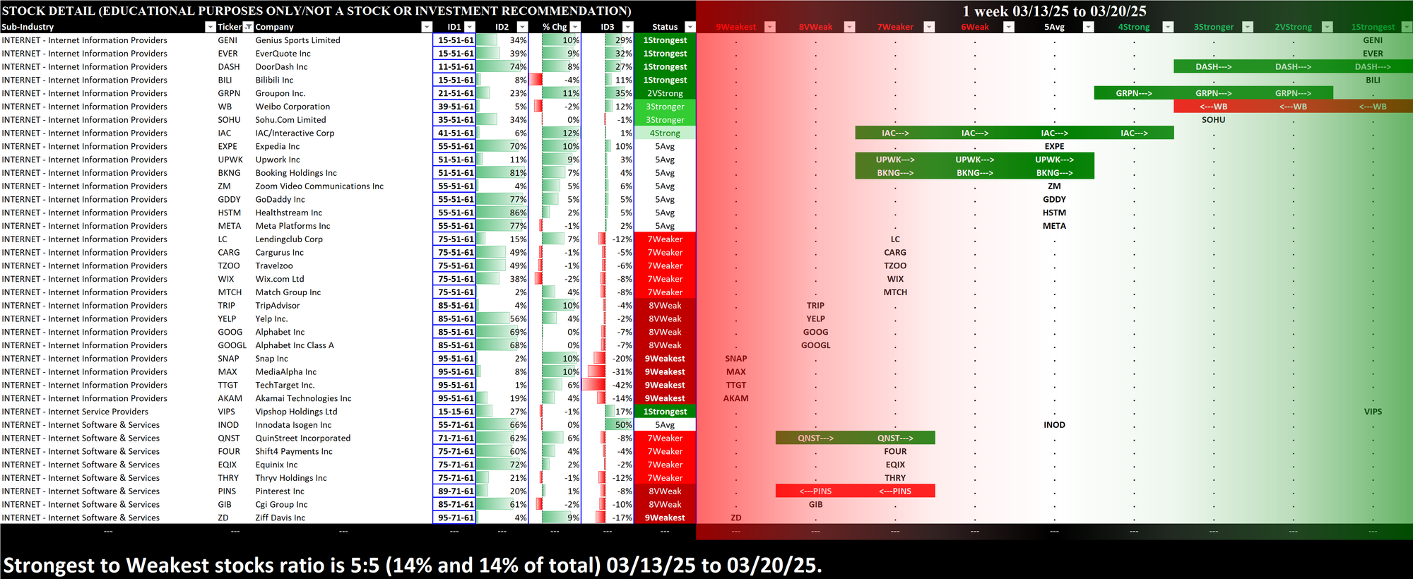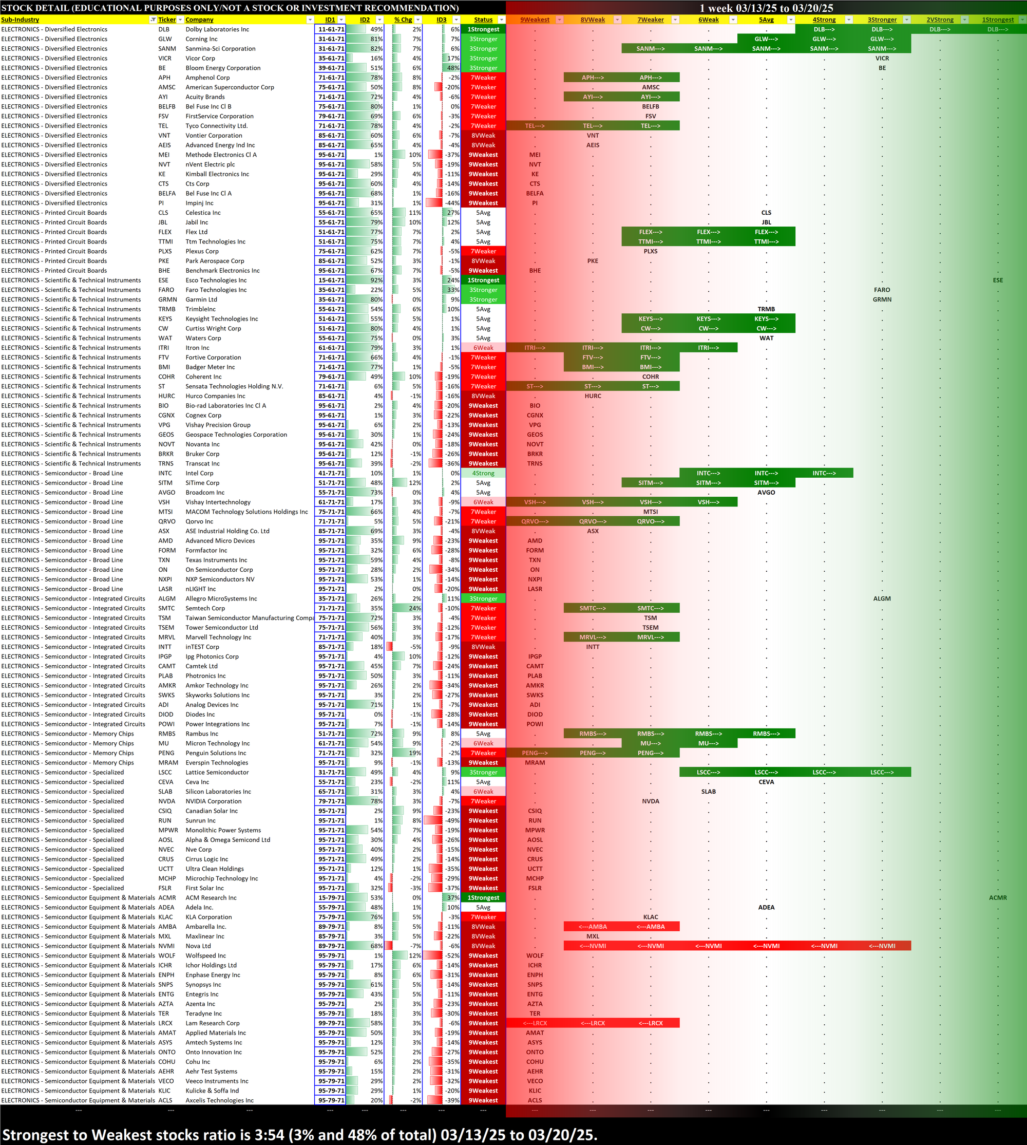- INDUSTRY 1-Week Strengthening, Positive/Negative % Stocks