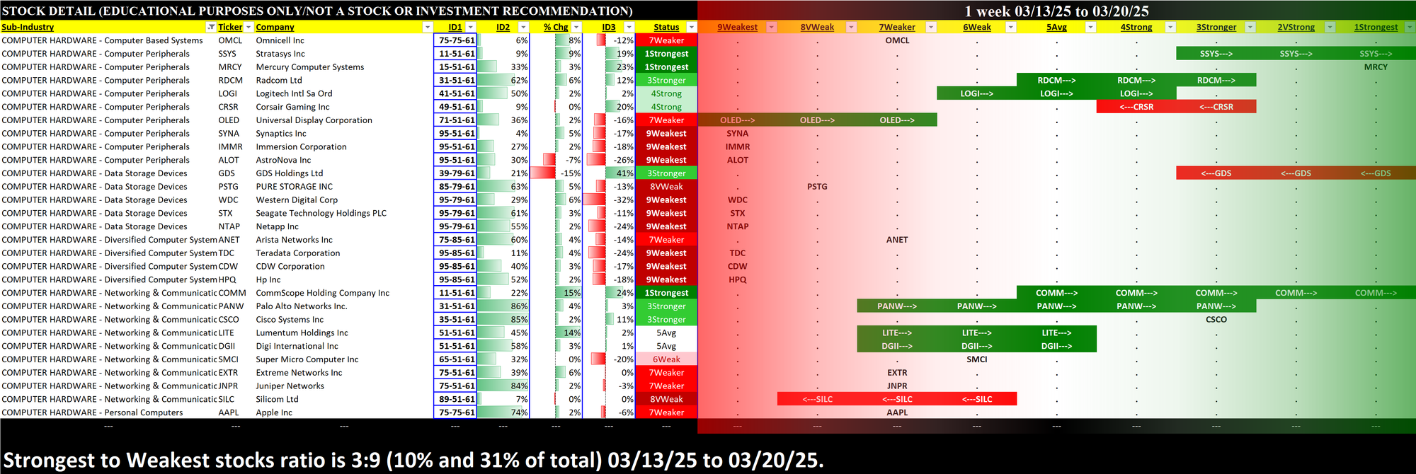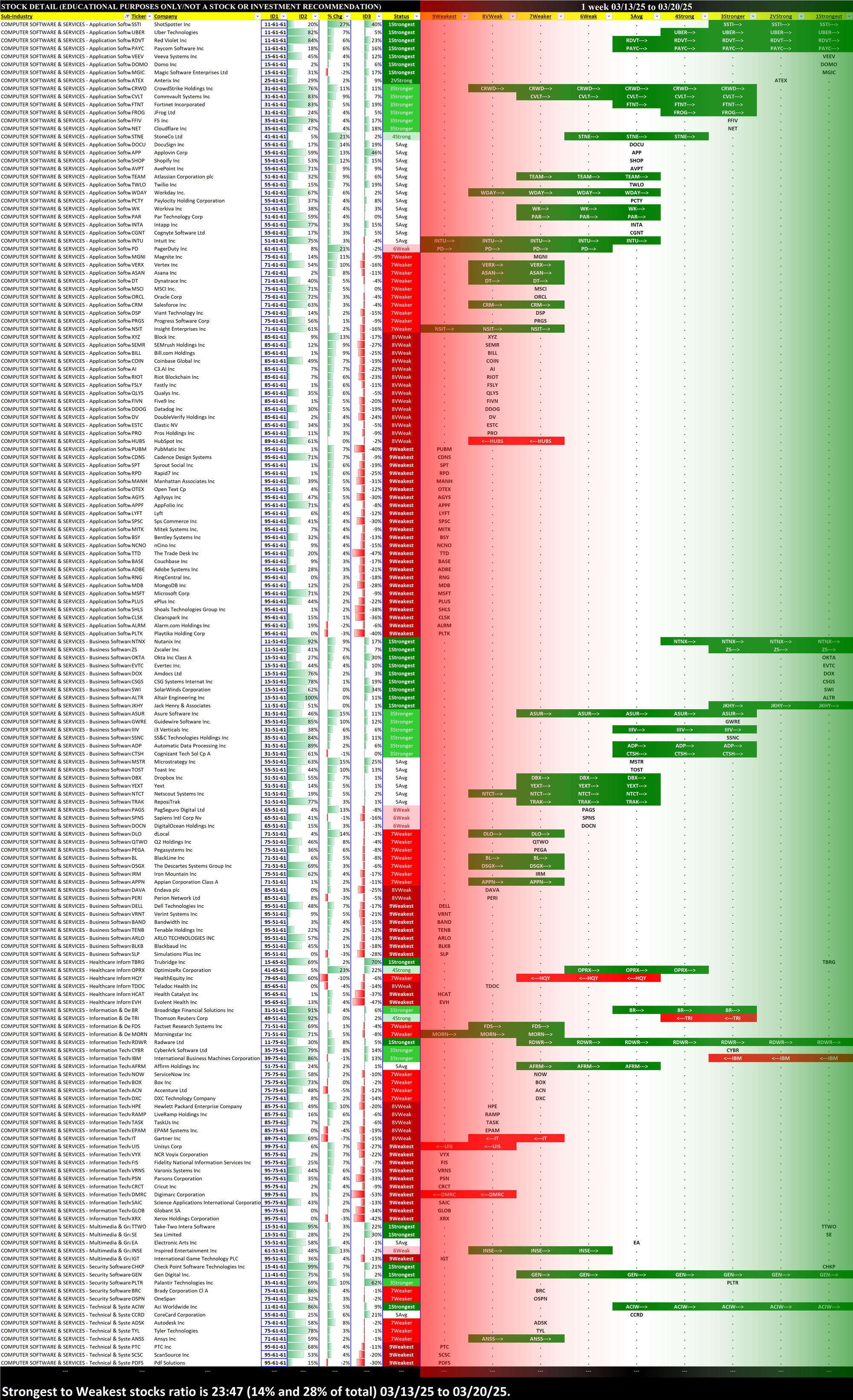 What: stocks currently rated 1Strongest/9Weakest (highest/lowest of 9 strength ratings)