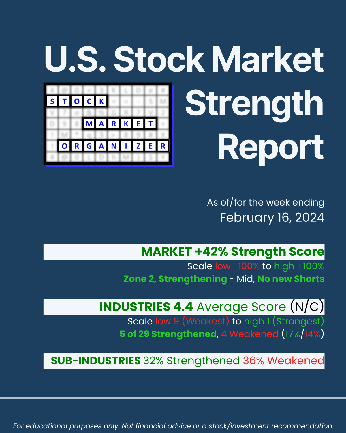 SMO Exclusive: U.S. Stock Market Strength Report 2024-02-16 (+42%, no new Shorts)