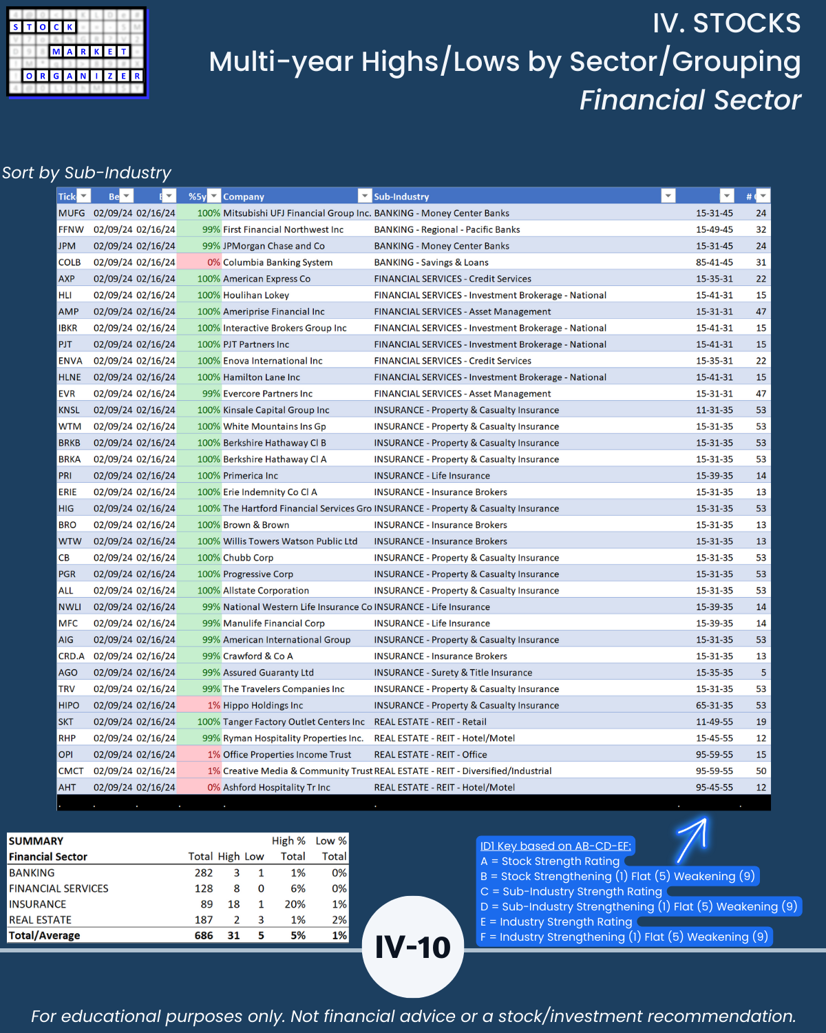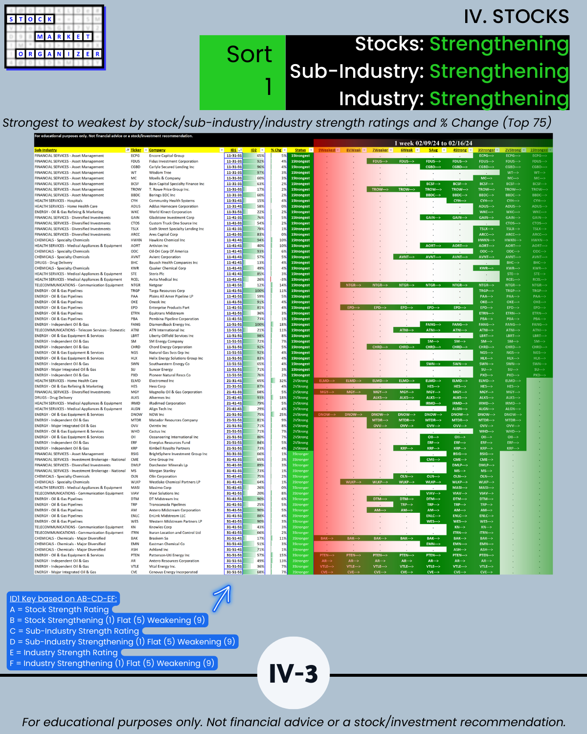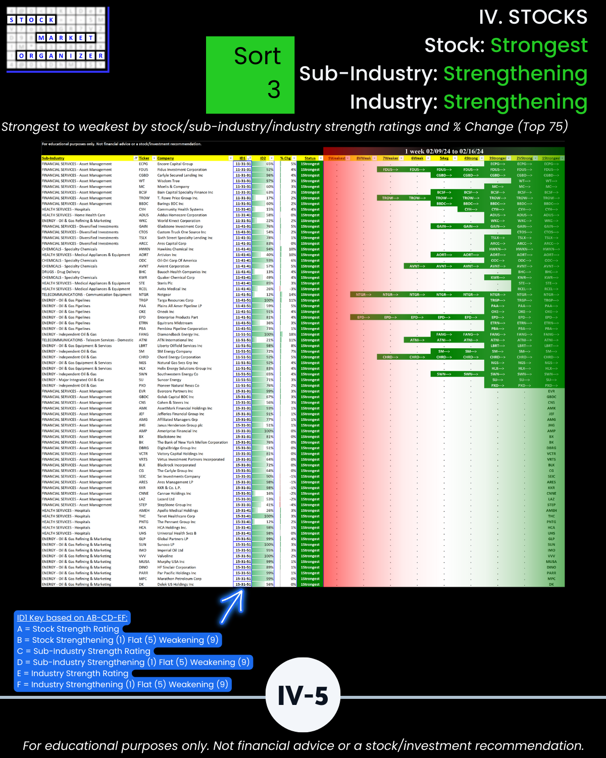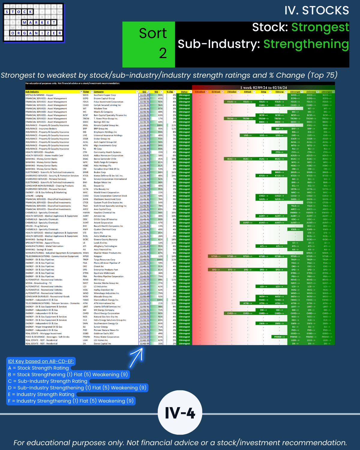 🔹 Financial Services, Insurance, and Materials & Construction = strongest industries at Stronger (3rd strongest of 9 levels)