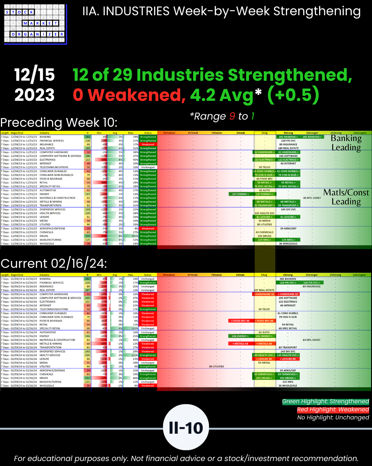 IIA. INDUSTRIES/10-Week Week-by-Week Industry Strength