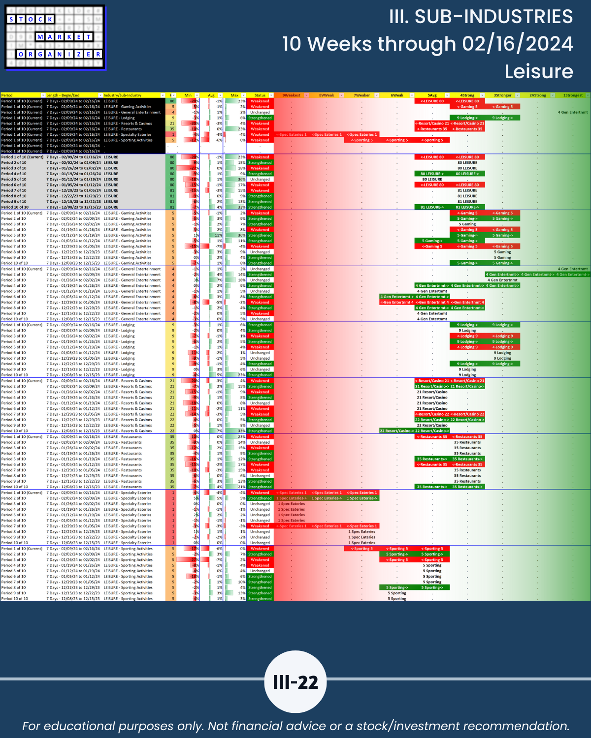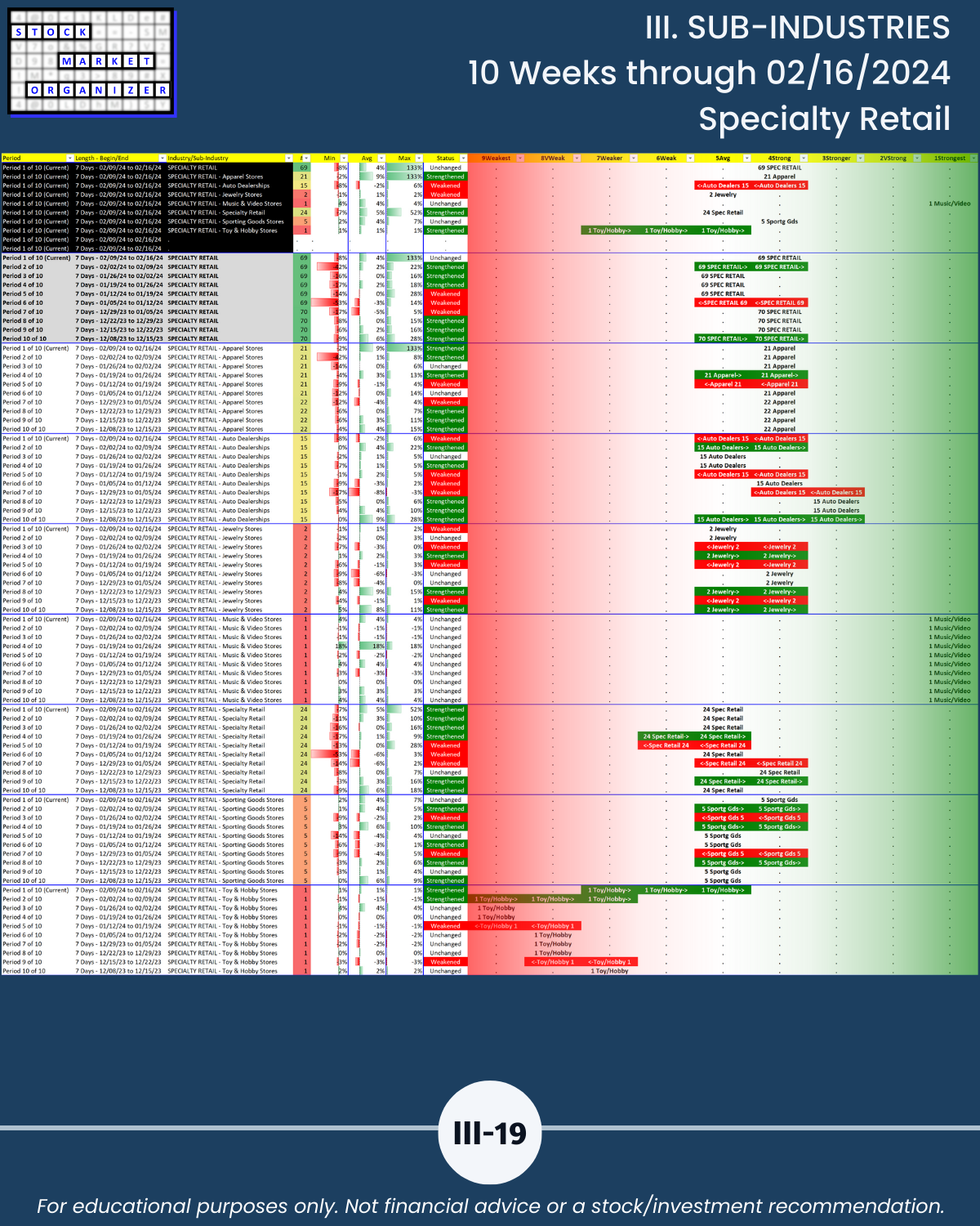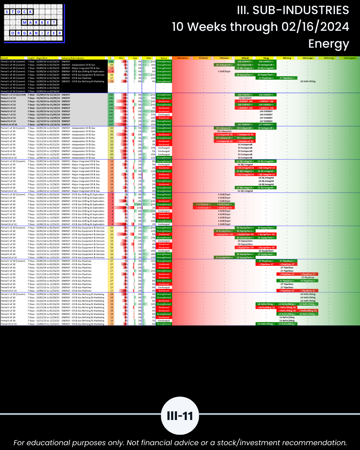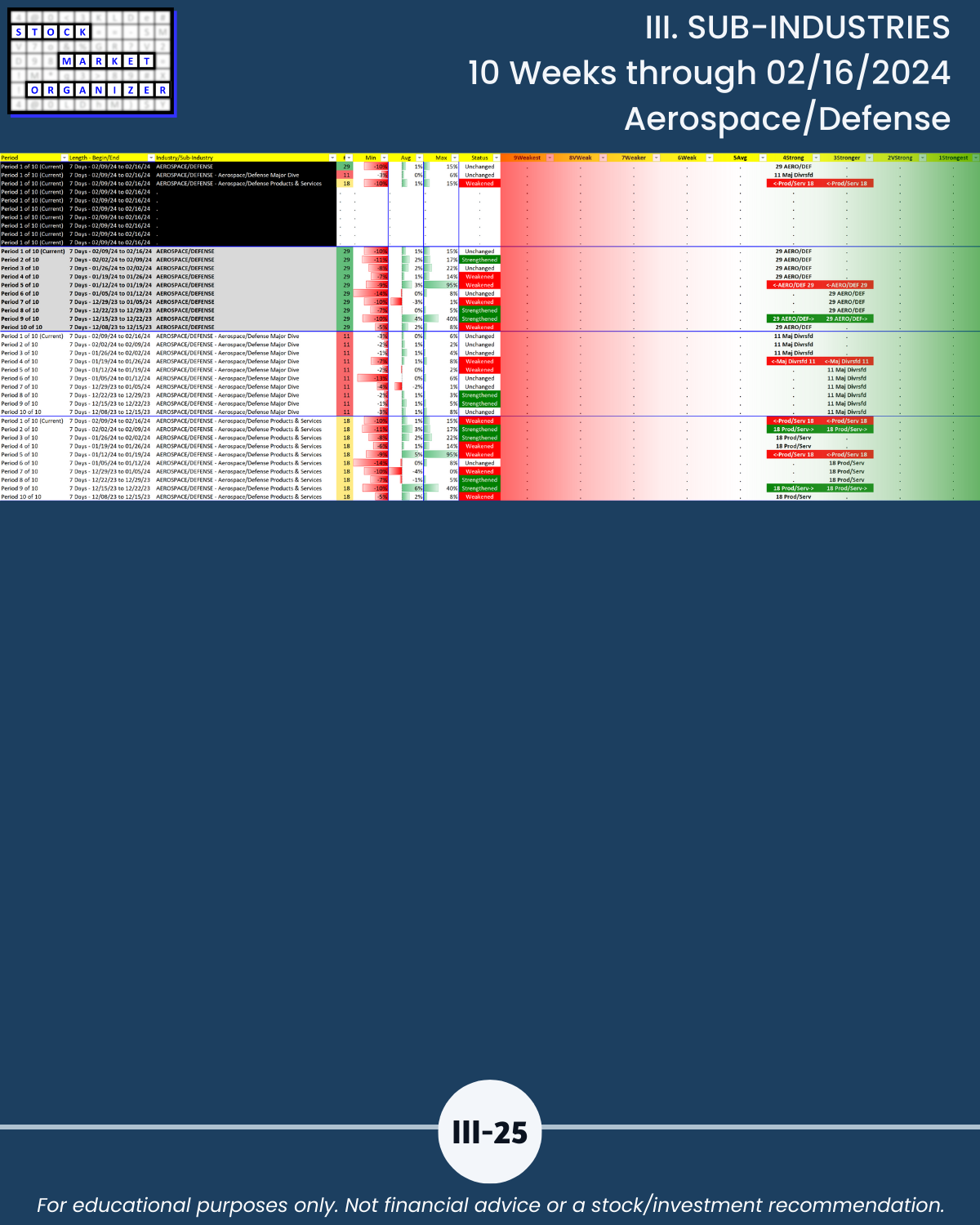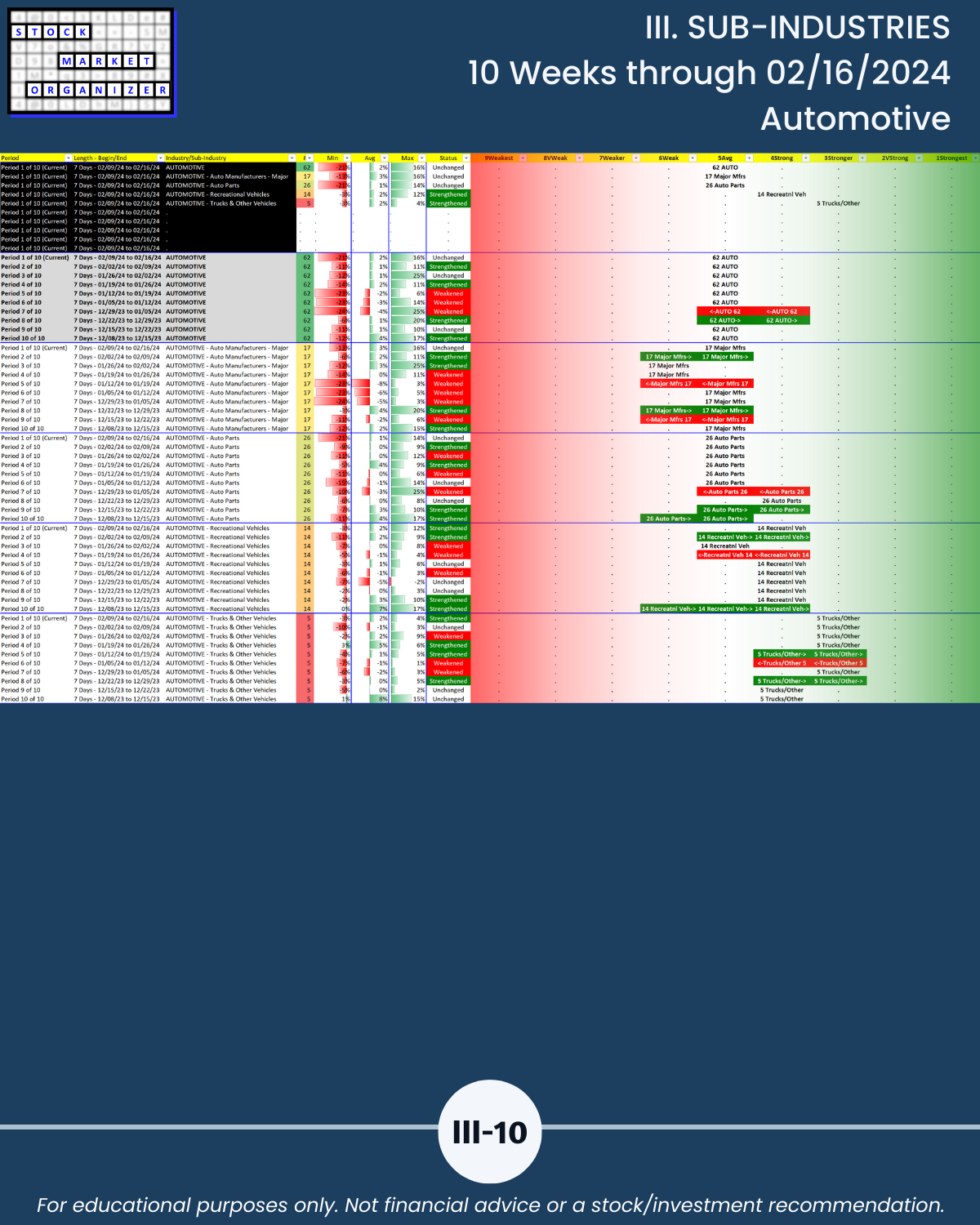 III. SUB-INDUSTRIES/10-Week Individual Sub-Industry Strength Reports