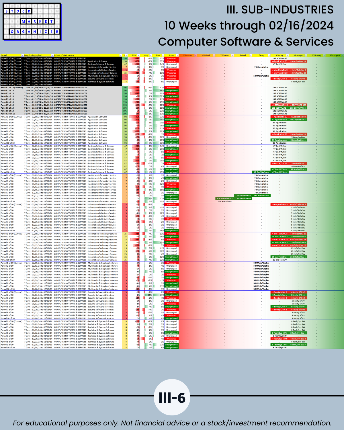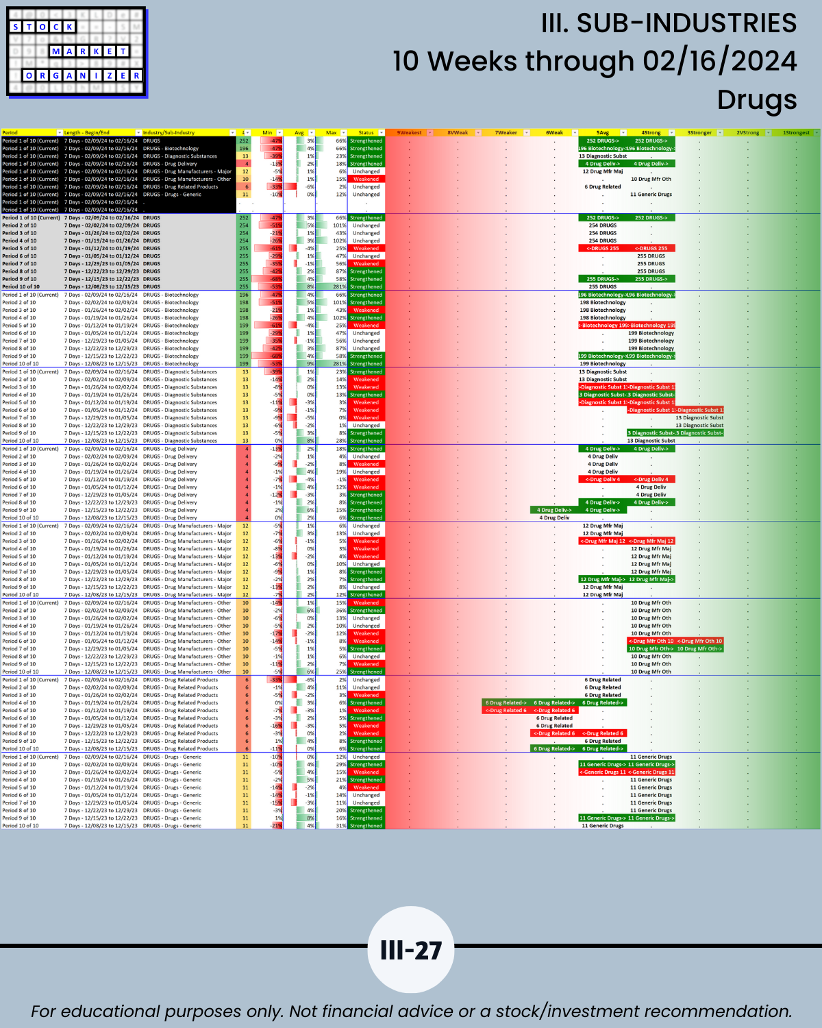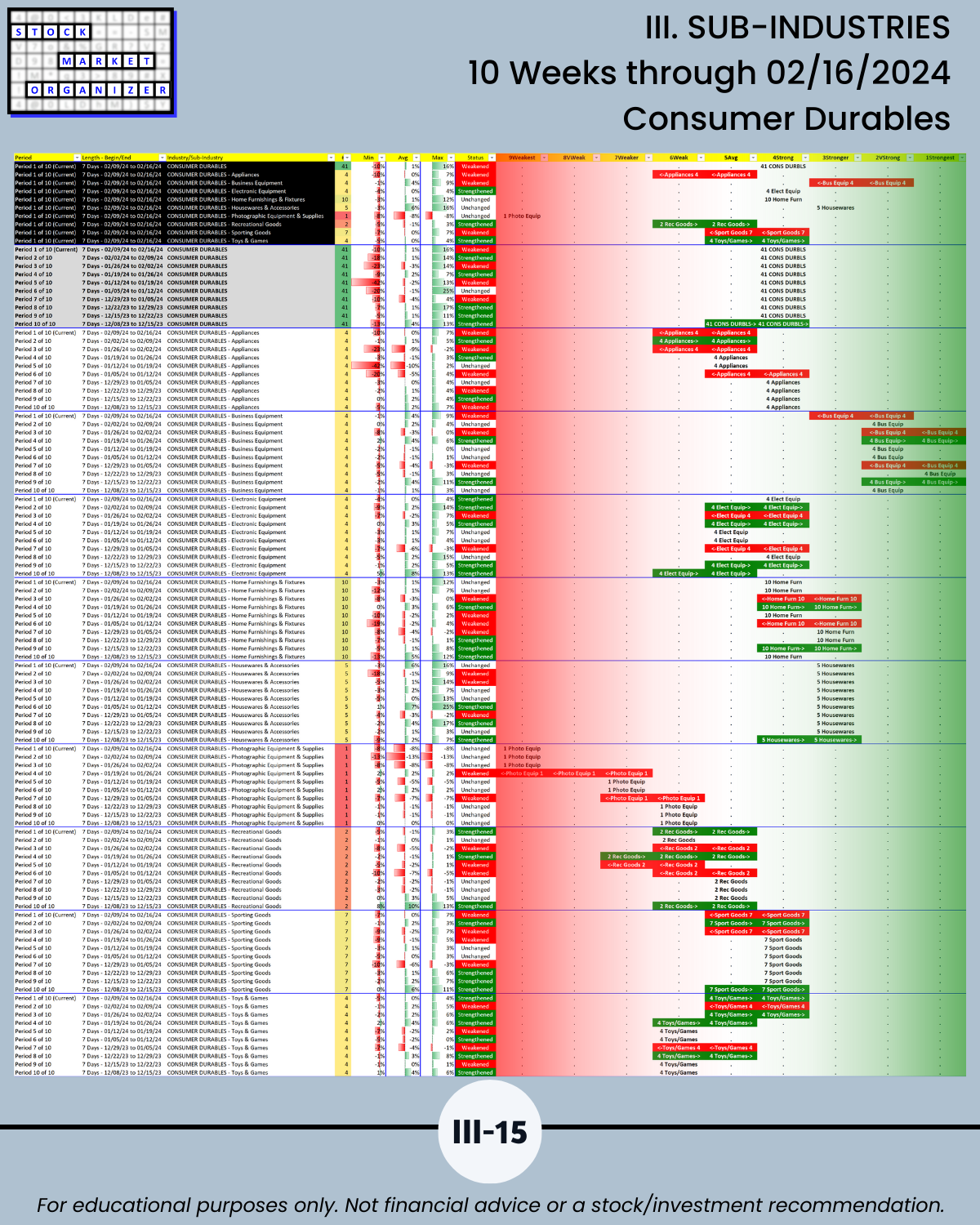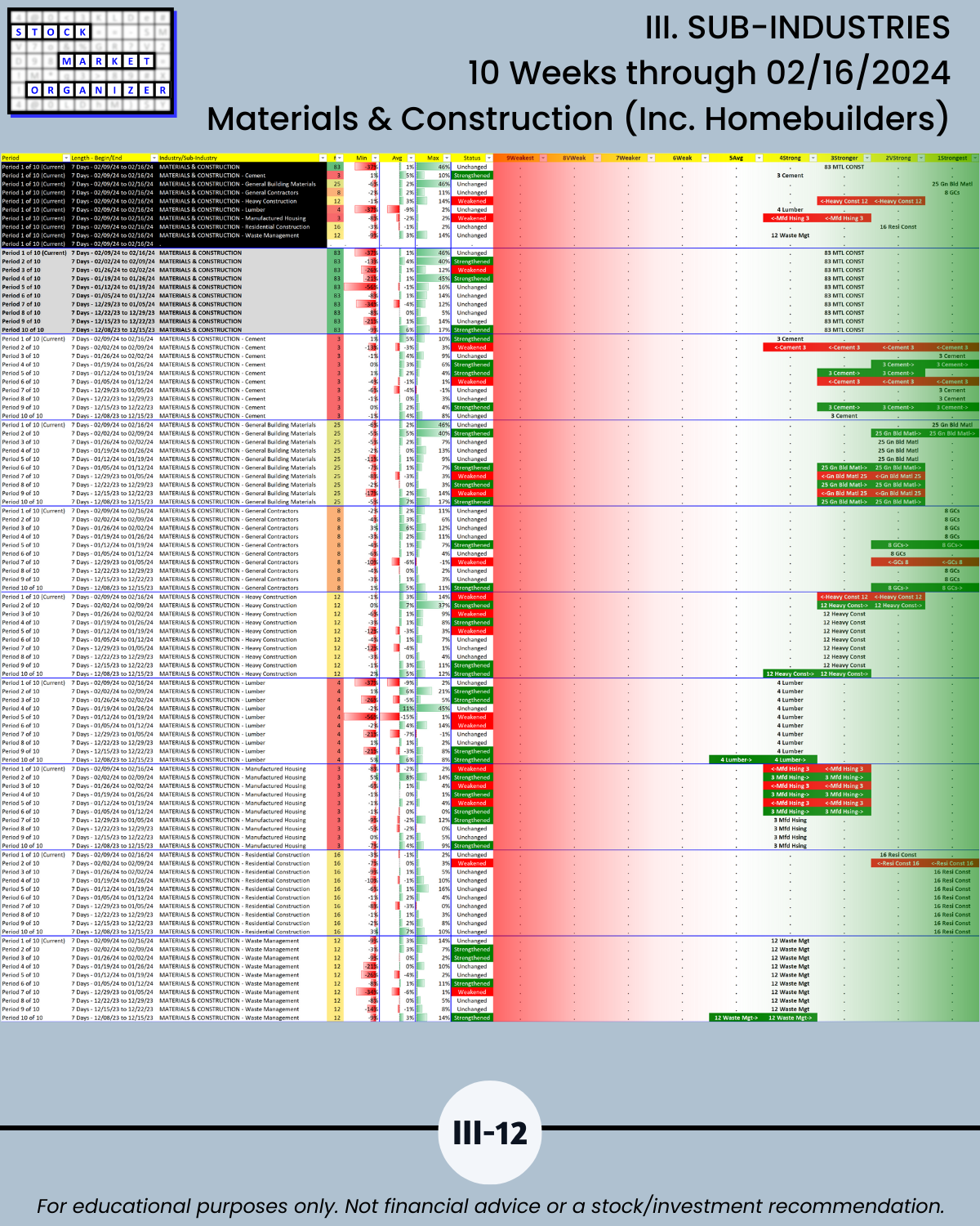III. SUB-INDUSTRIES/10-Week Individual Sub-Industry Strength Reports
