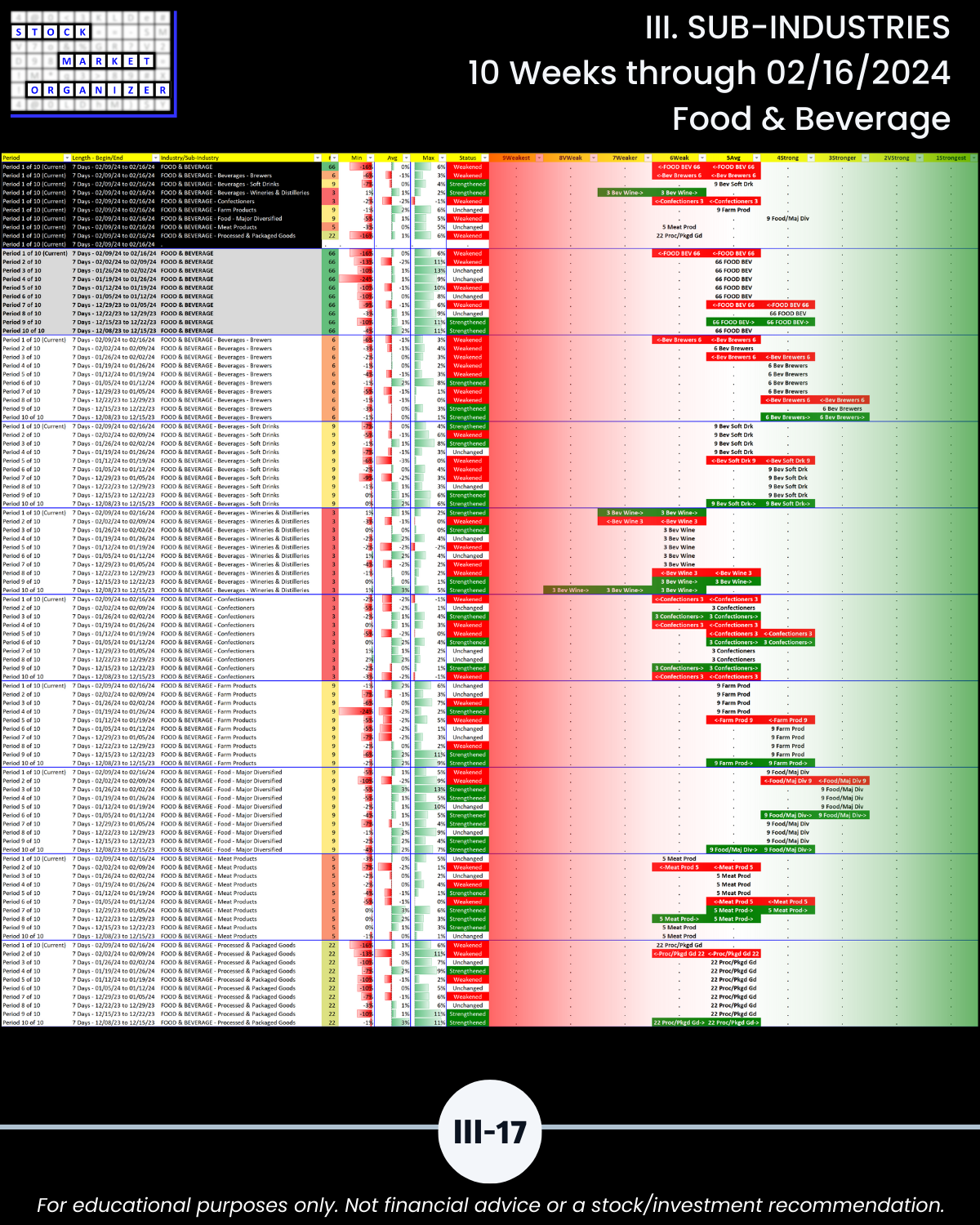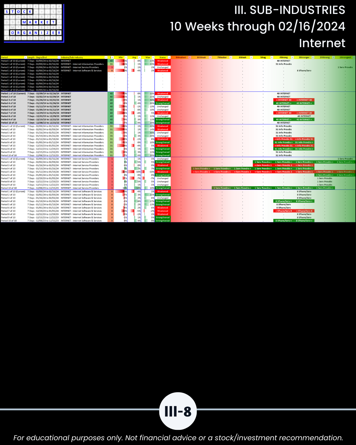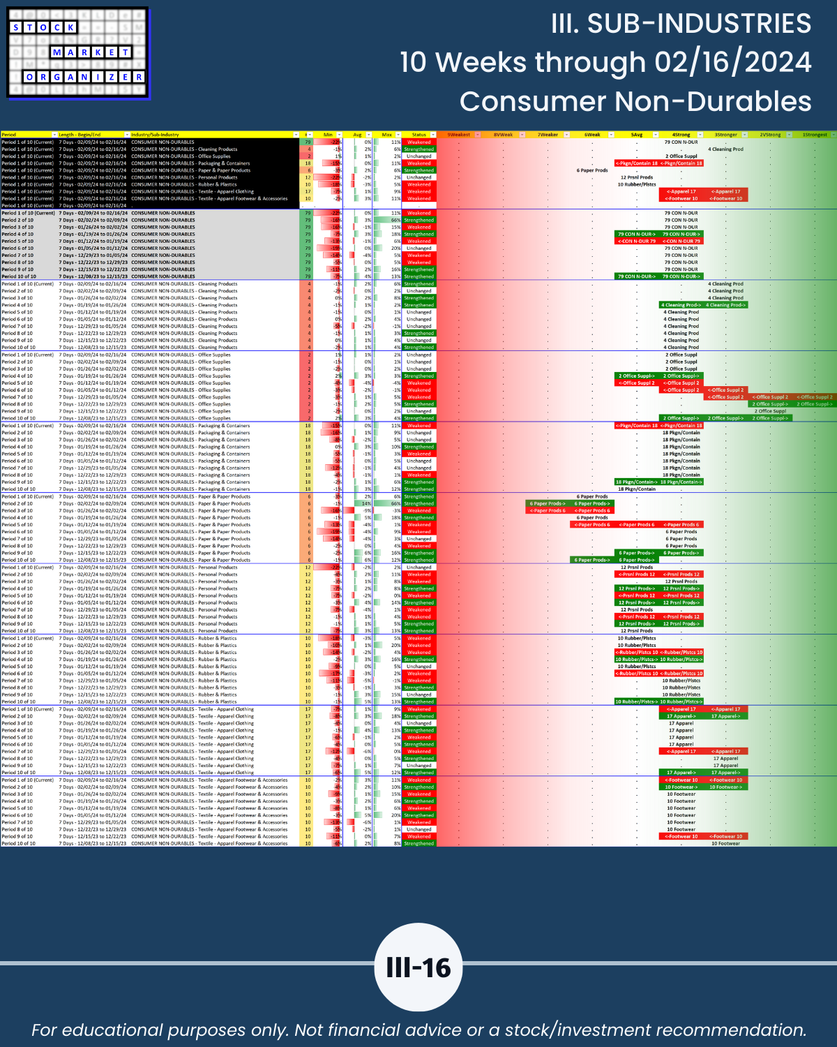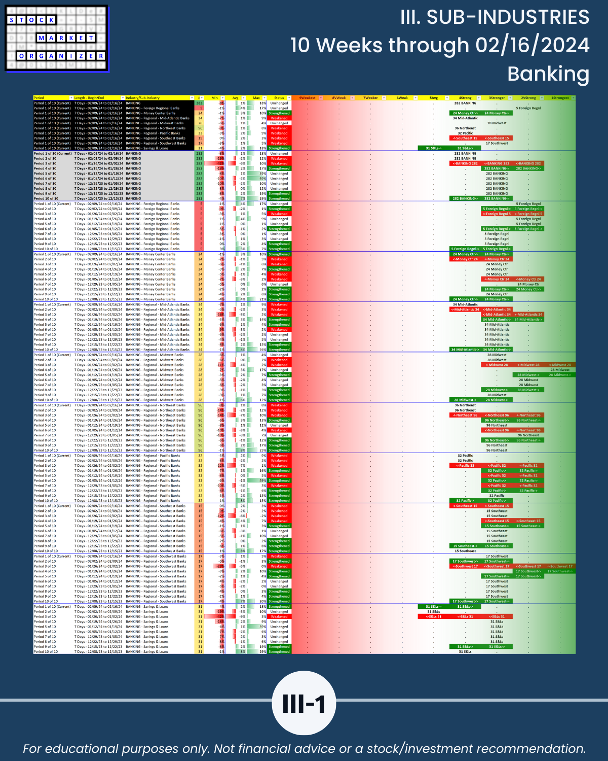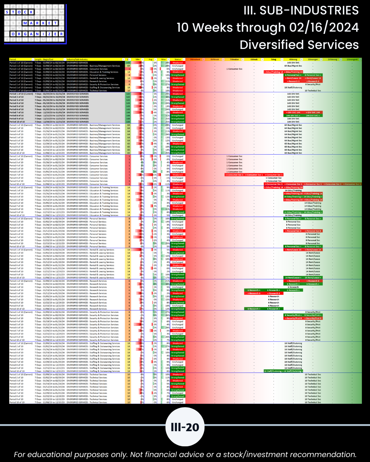 III. SUB-INDUSTRIES/10-Week Individual Sub-Industry Strength Reports