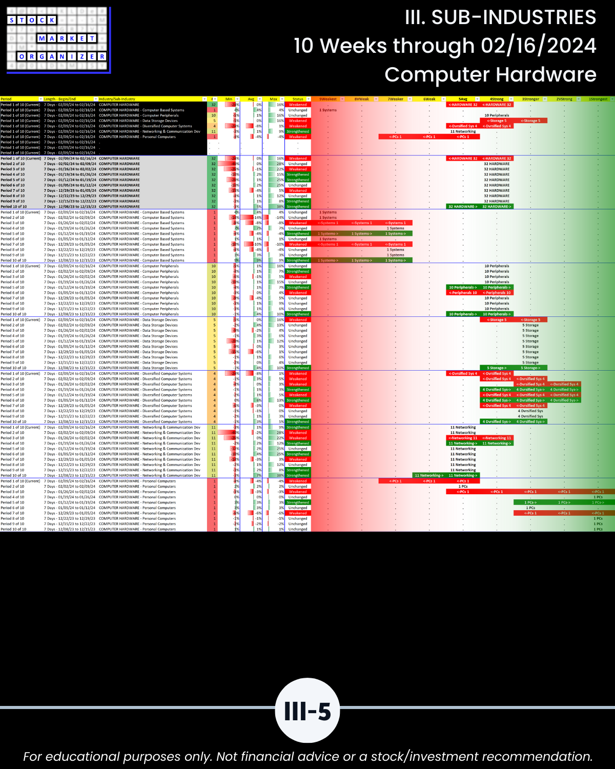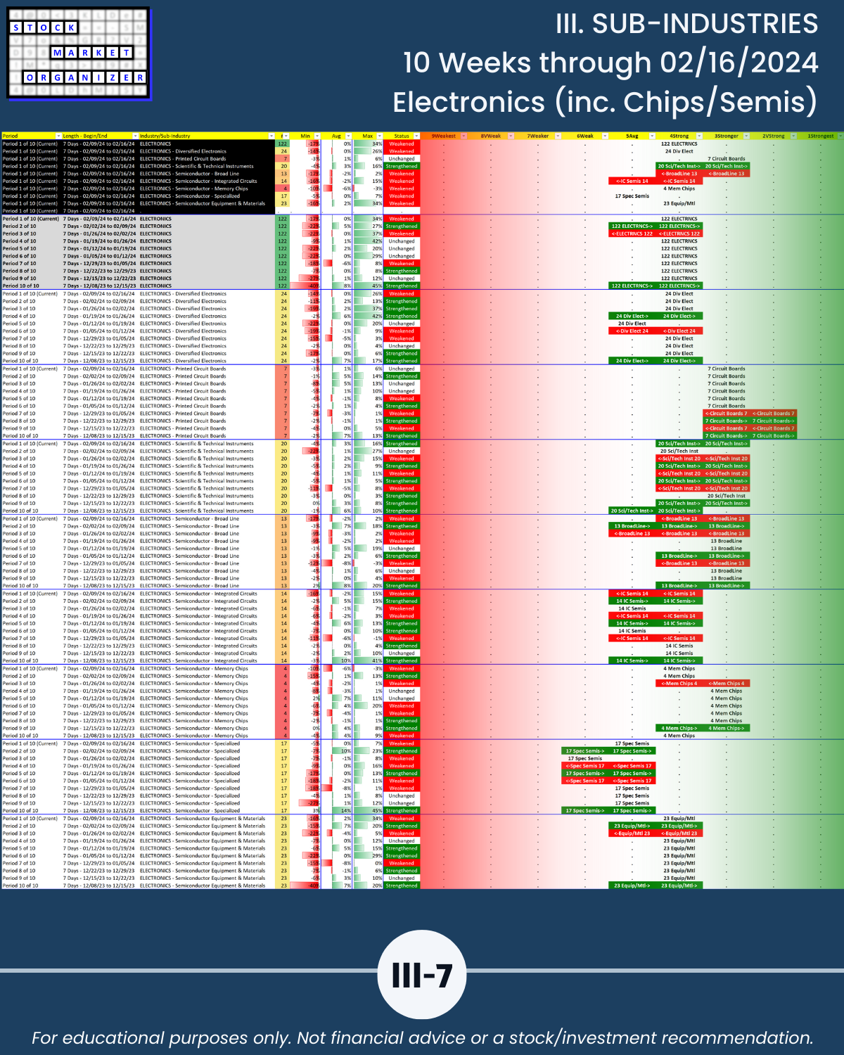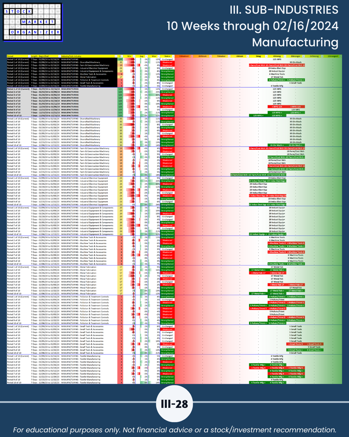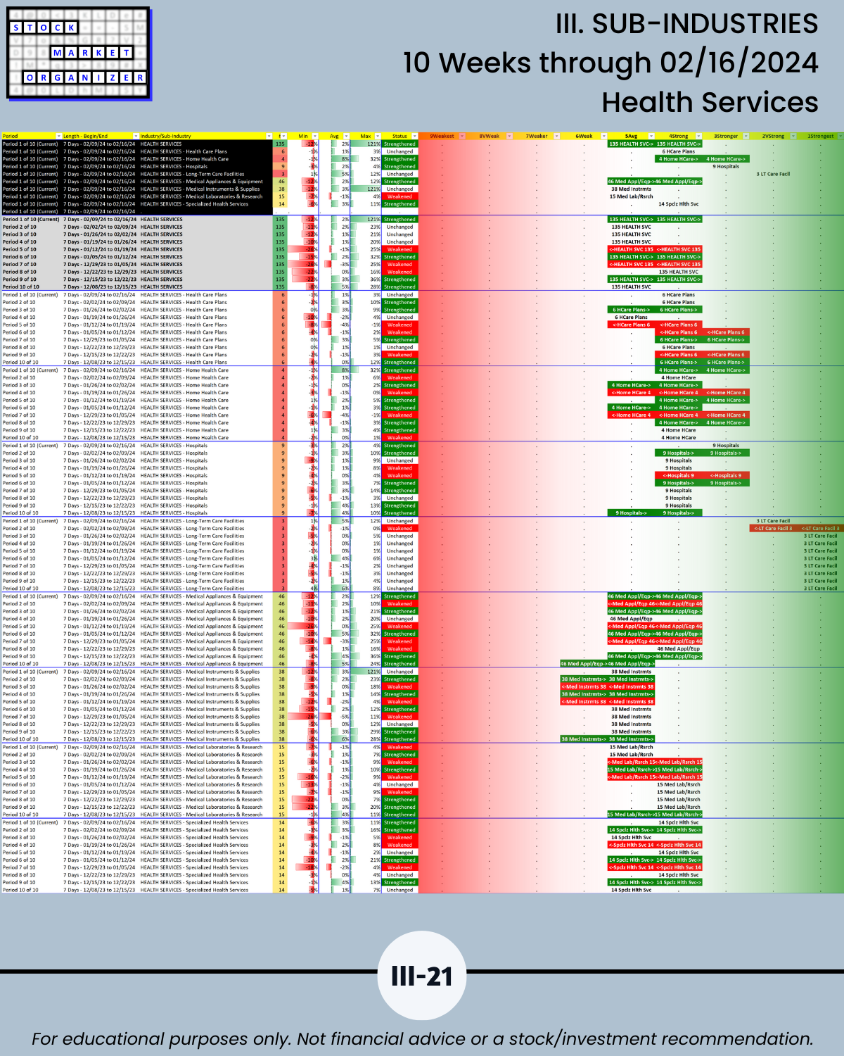 III. SUB-INDUSTRIES/10-Week Individual Sub-Industry Strength Reports