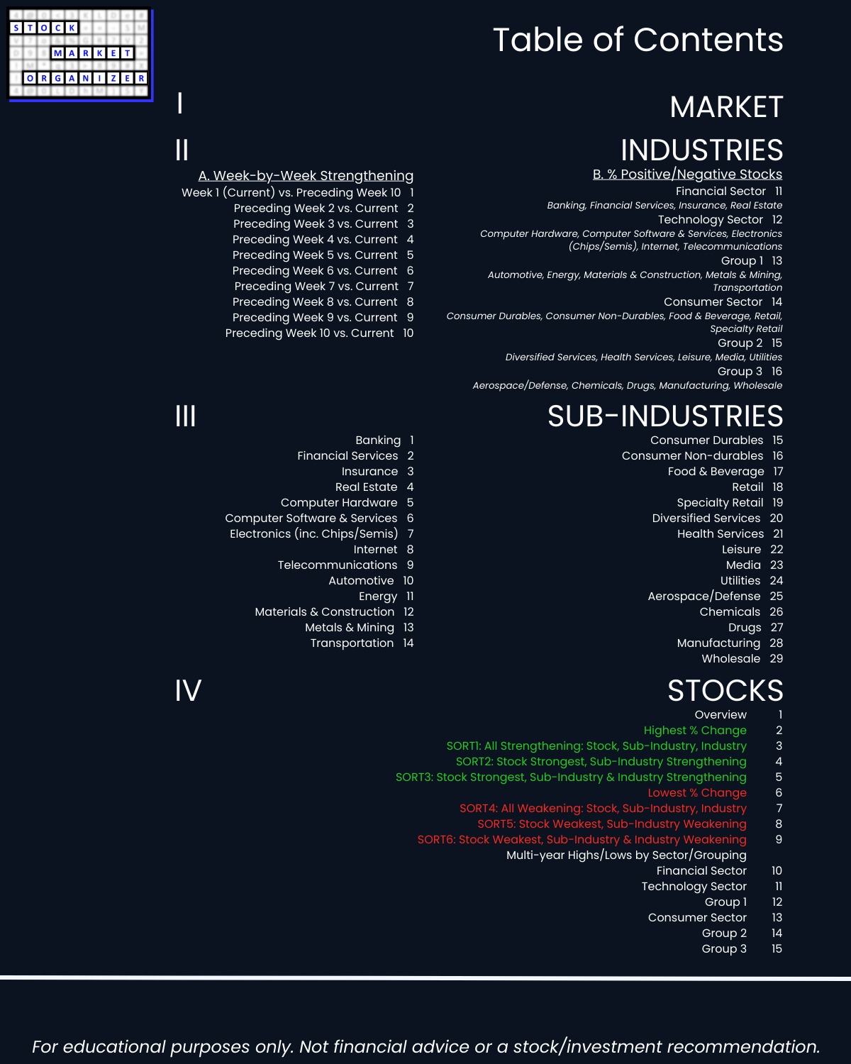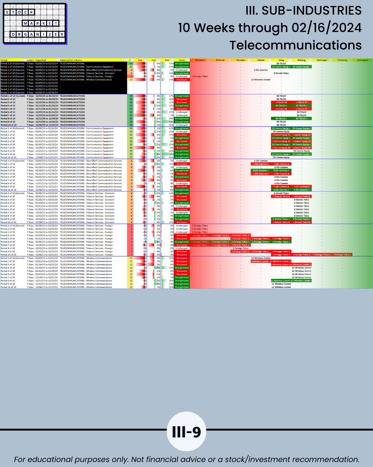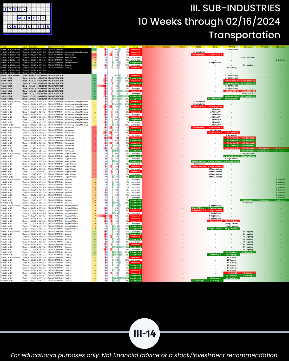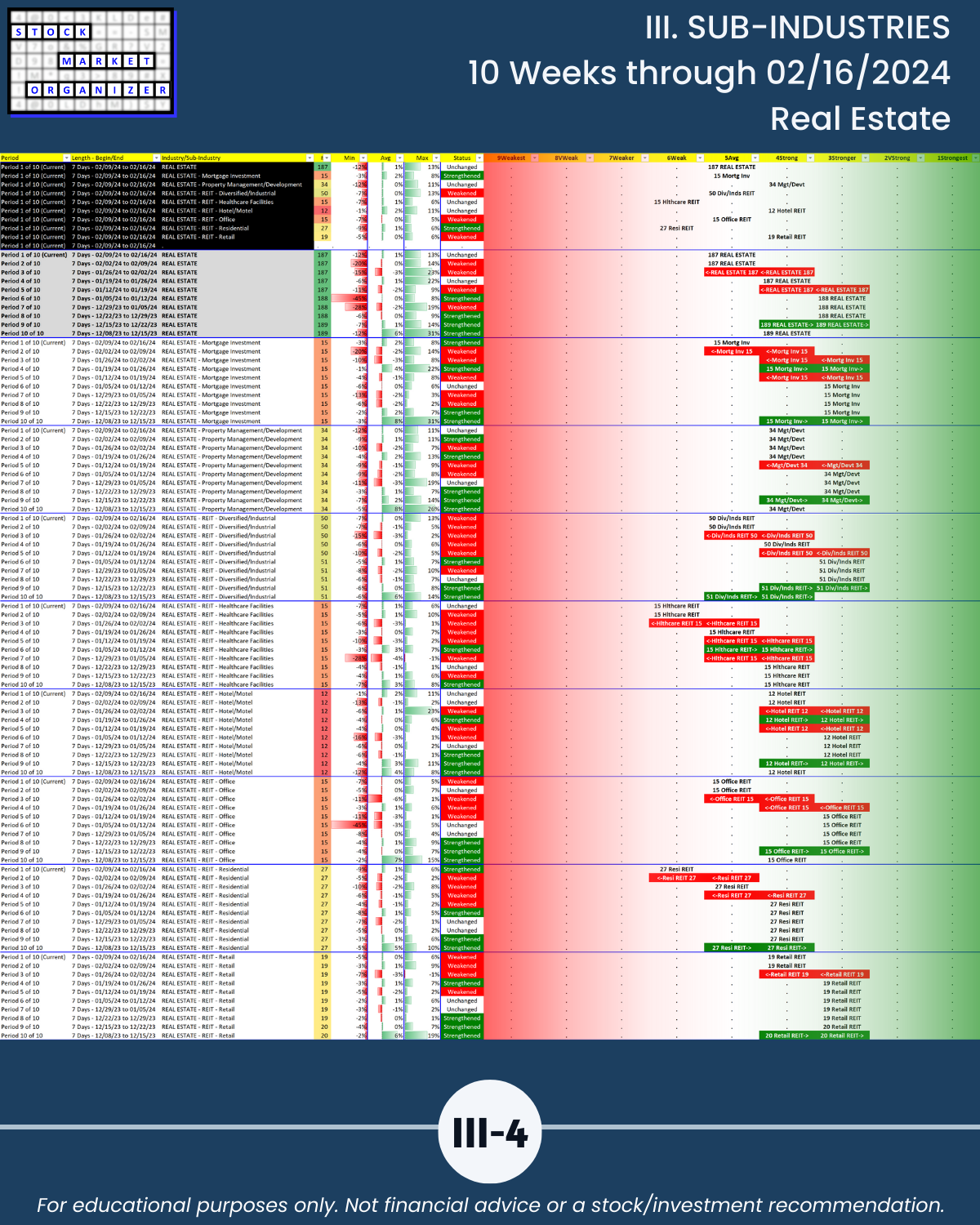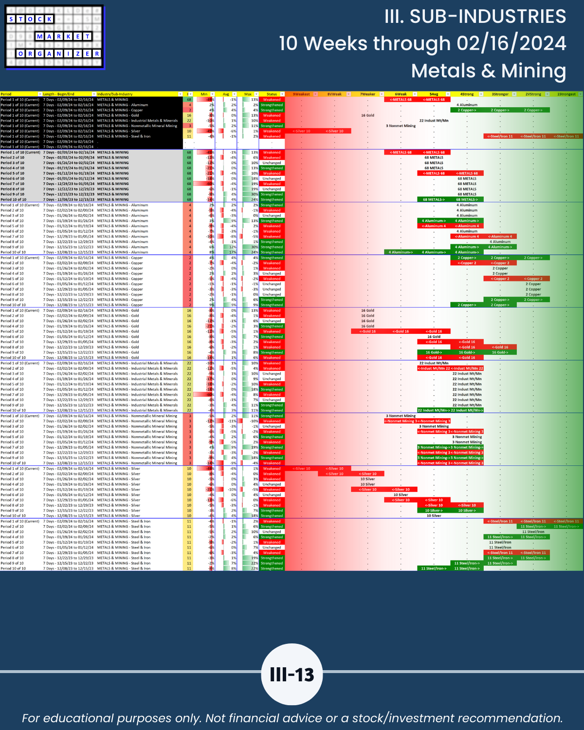 III. SUB-INDUSTRIES/10-Week Individual Sub-Industry Strength Reports