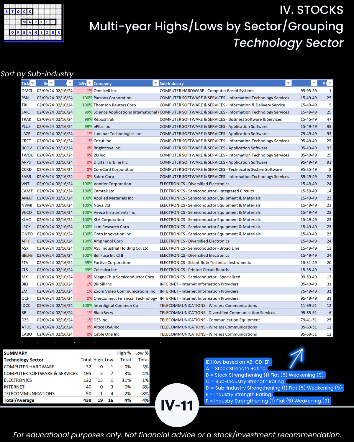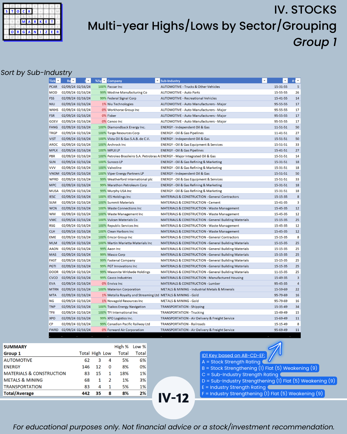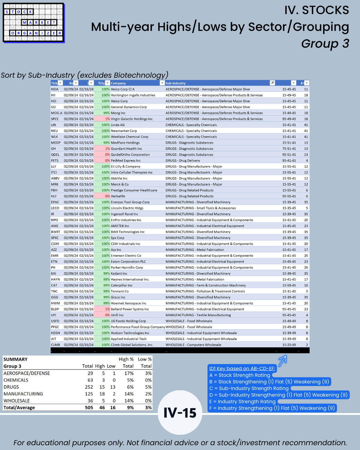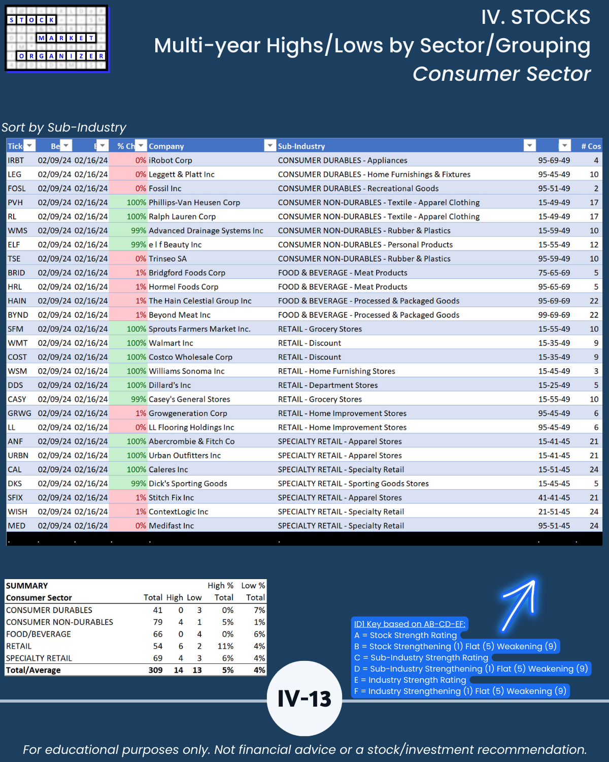 🔹 What stocks are at multi-year highs/lows, and how strong/weak are their sub-industries and industries?