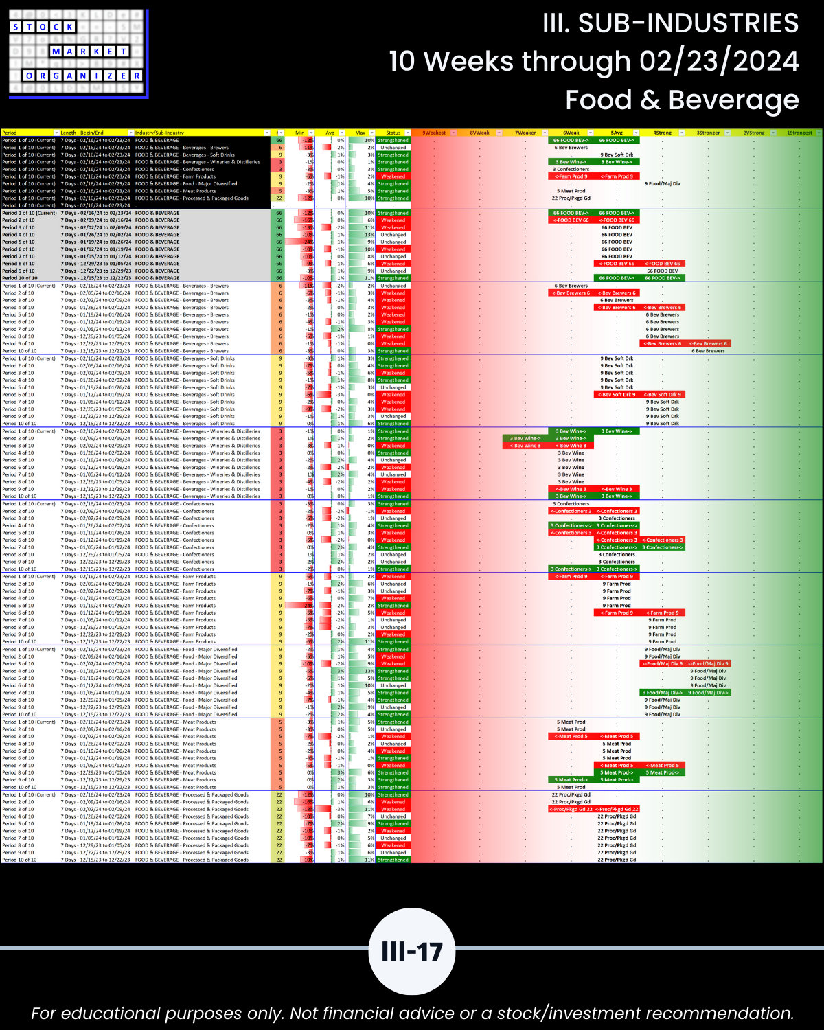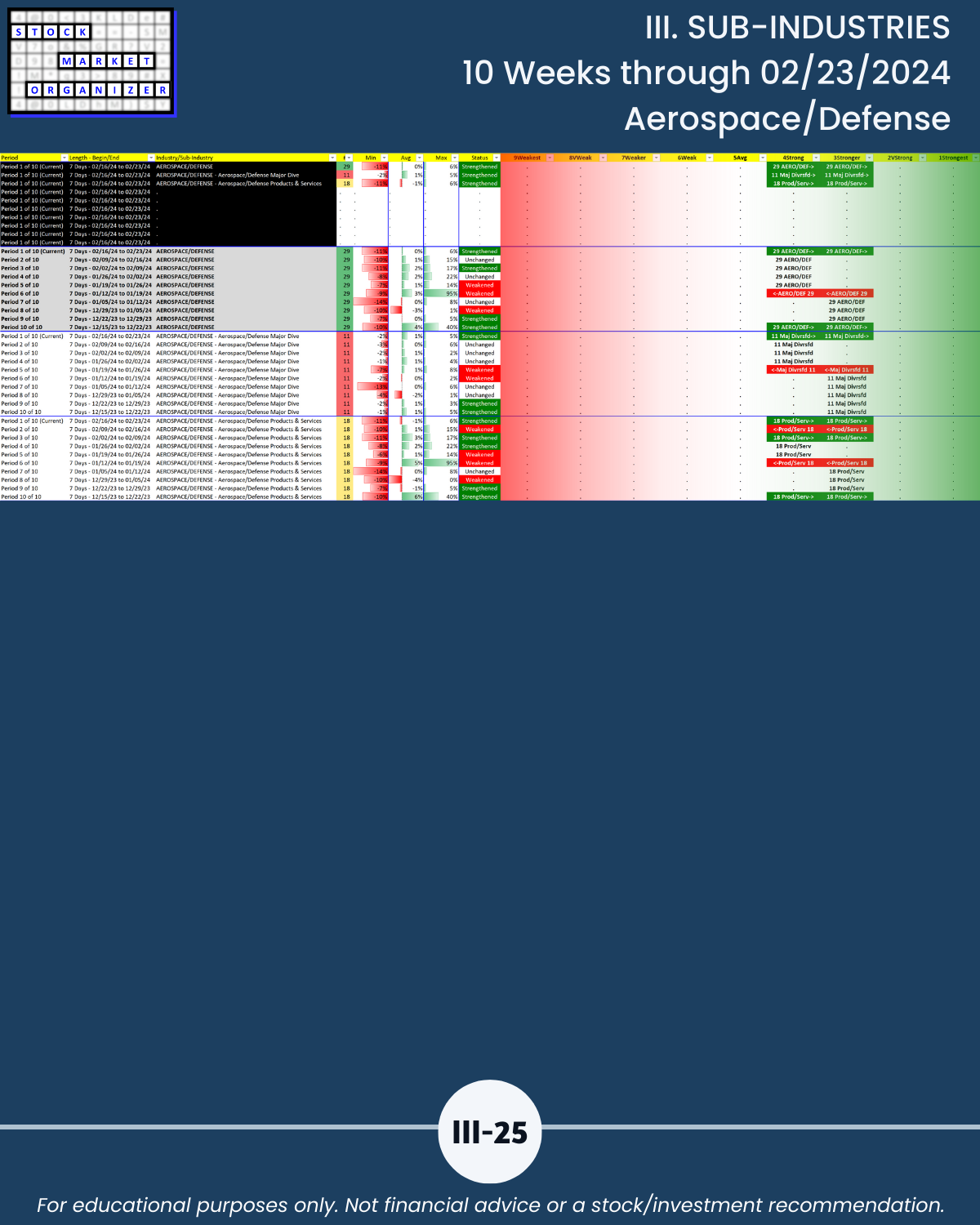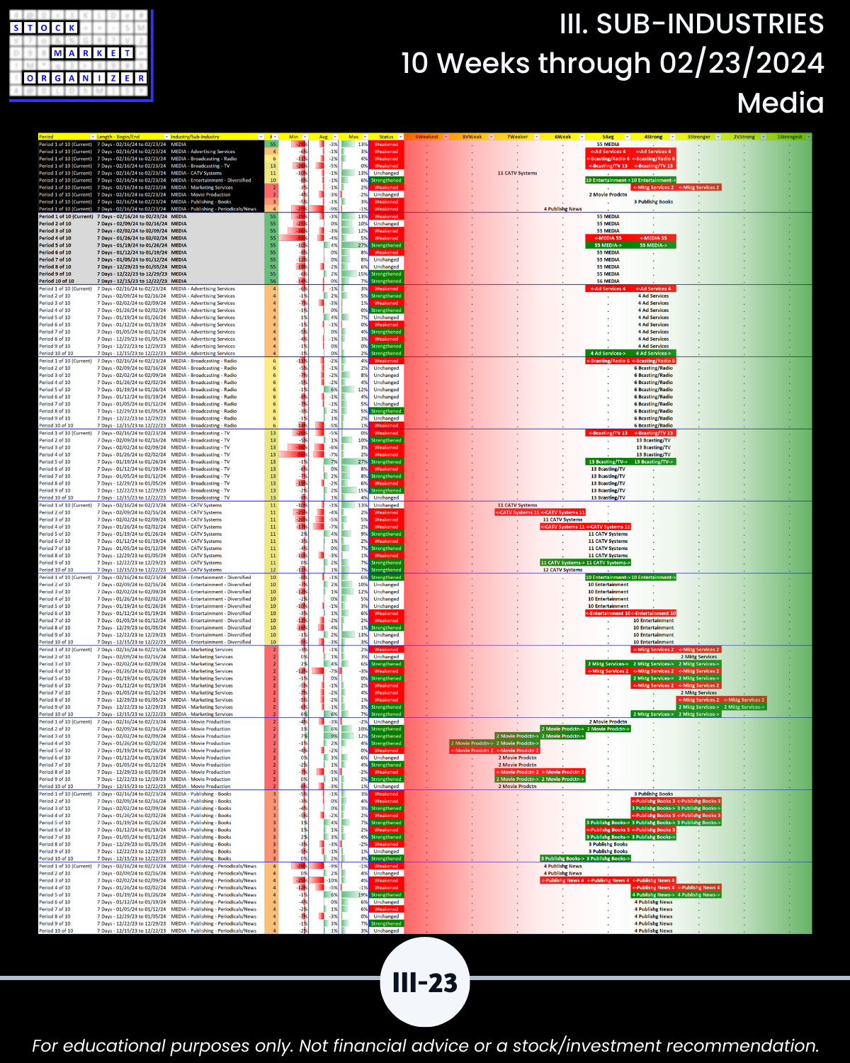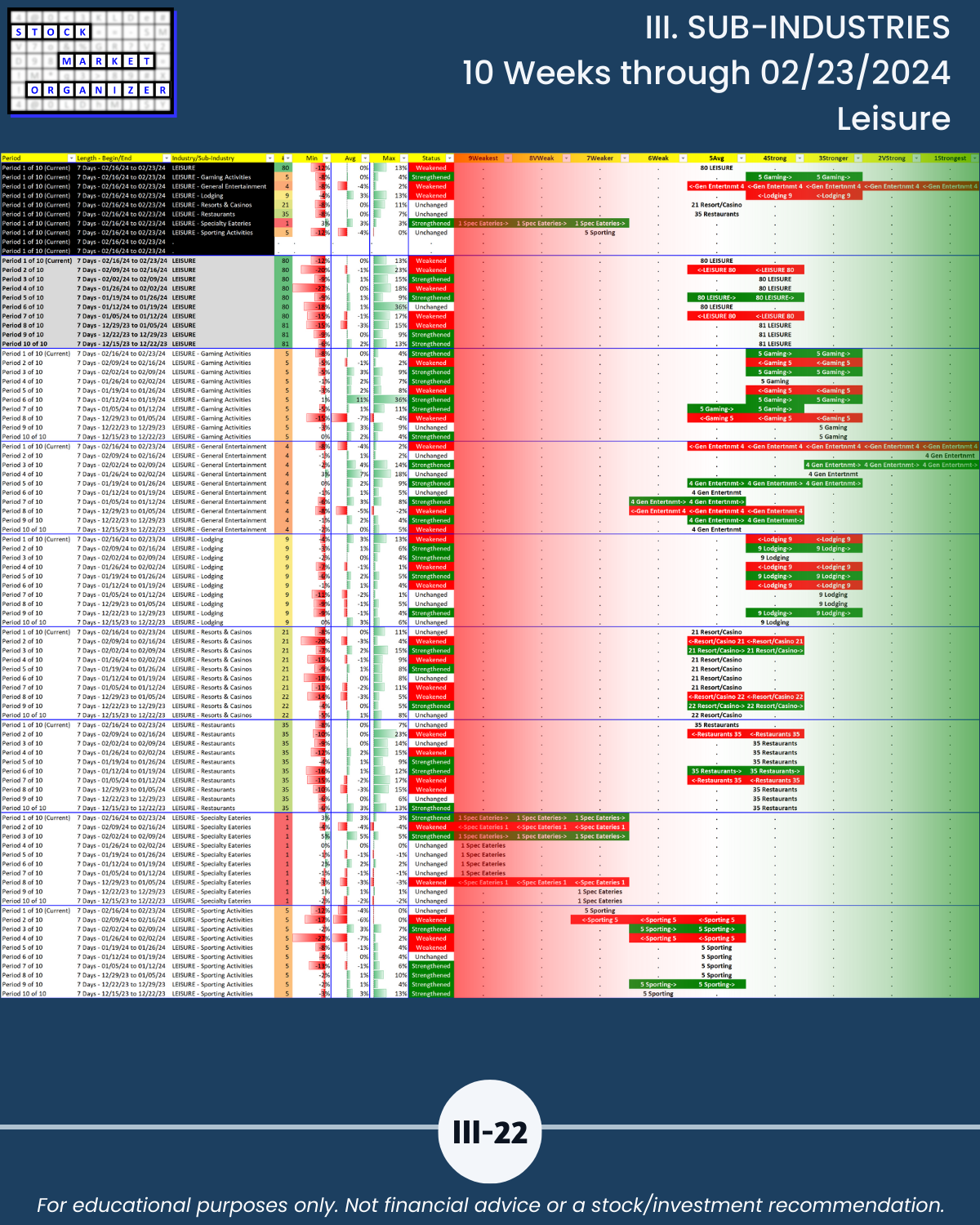 III. SUB-INDUSTRIES/10-Week Individual Sub-Industry Strength Reports