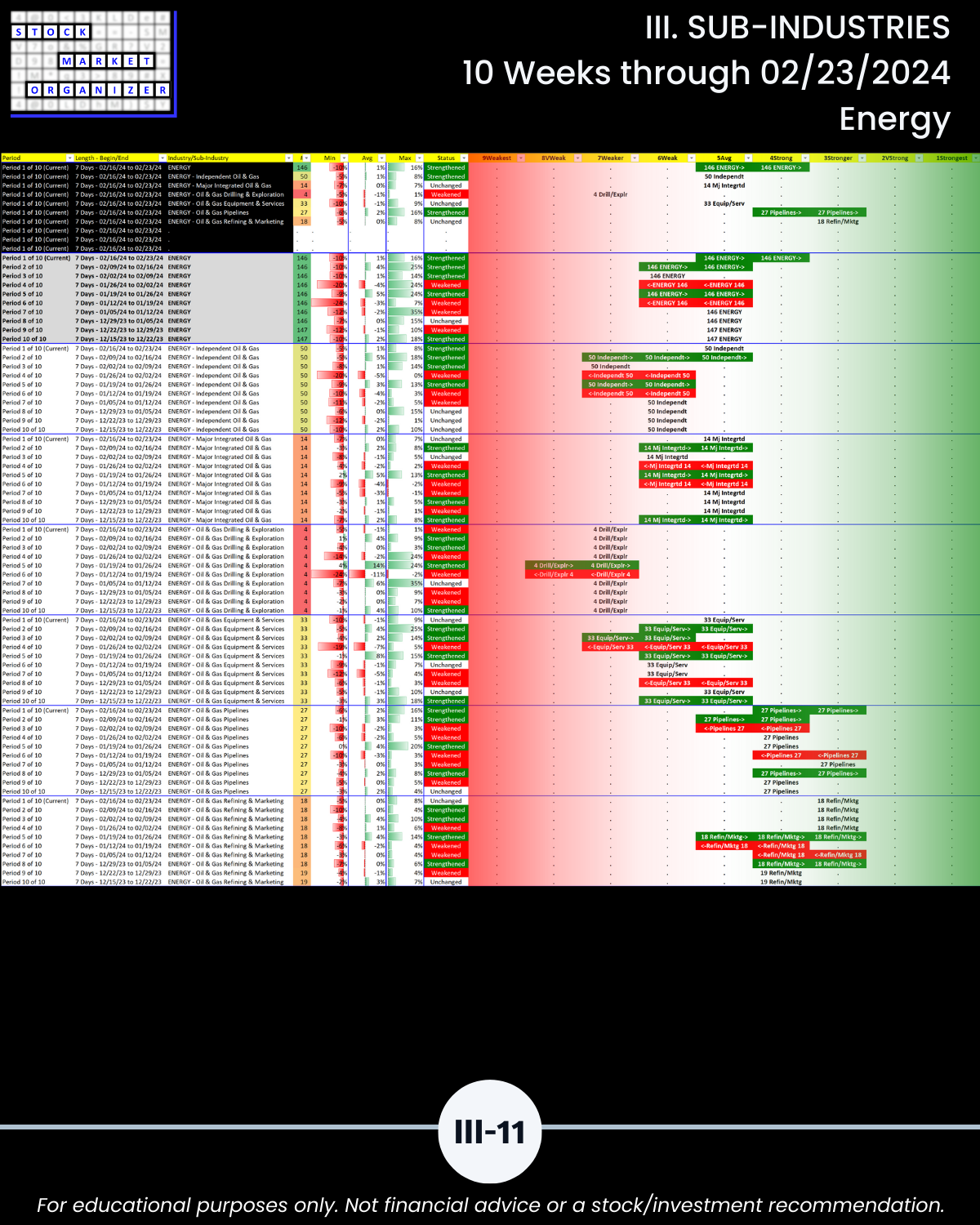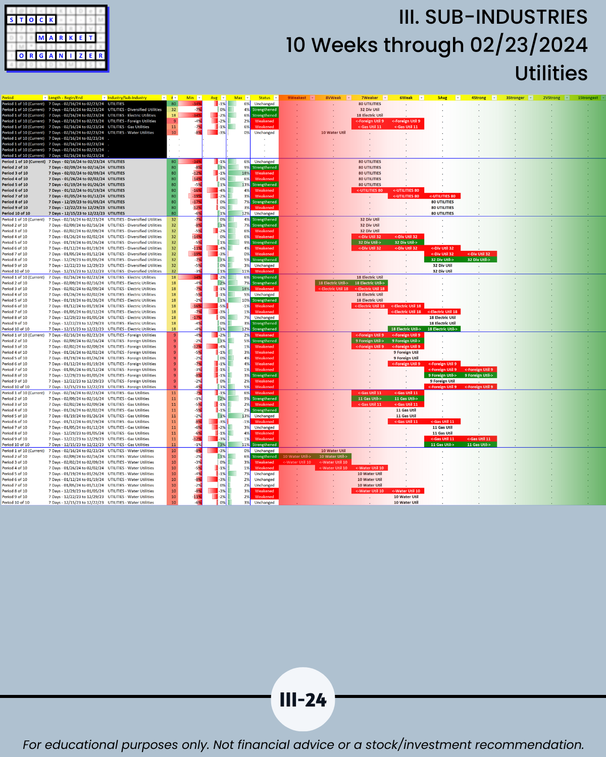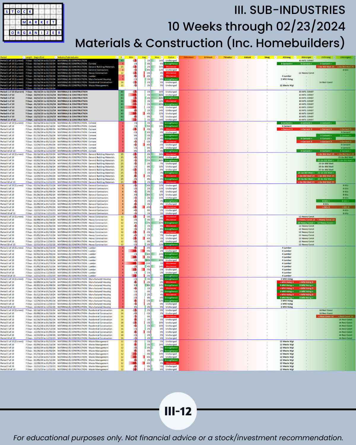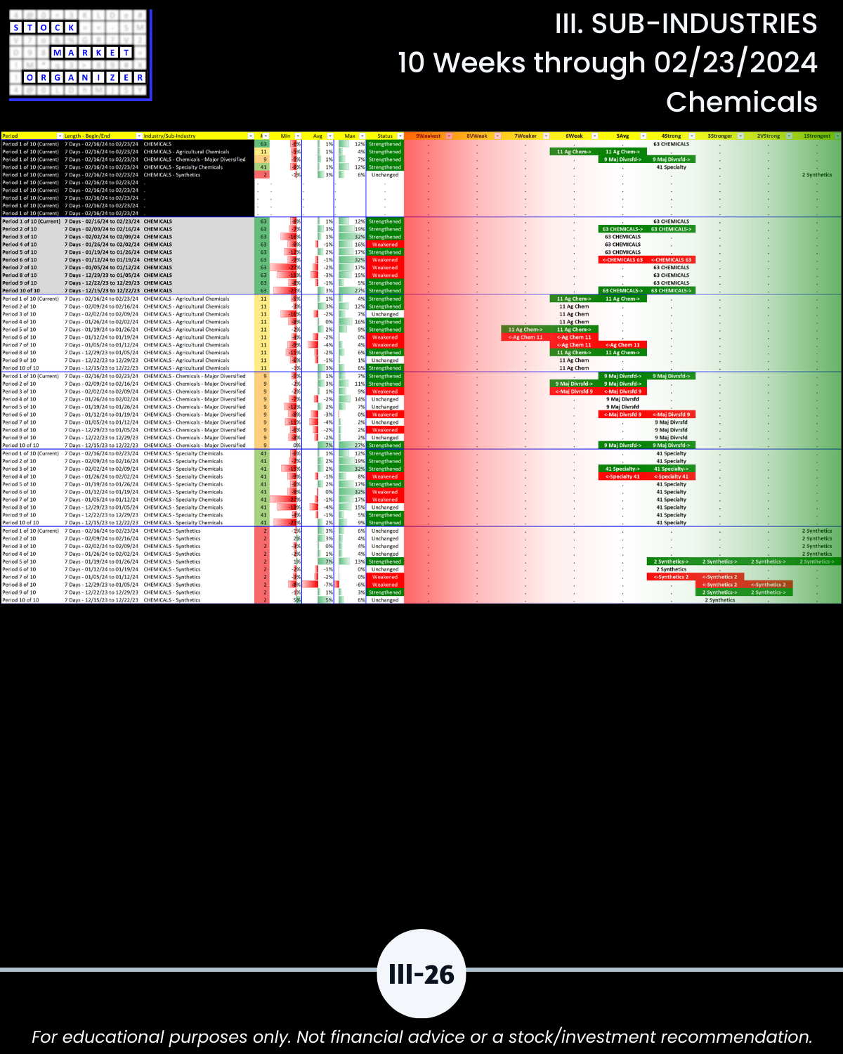 III. SUB-INDUSTRIES/10-Week Individual Sub-Industry Strength Reports