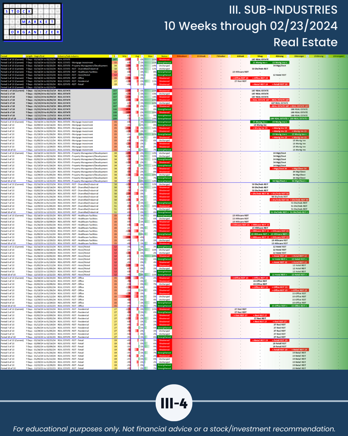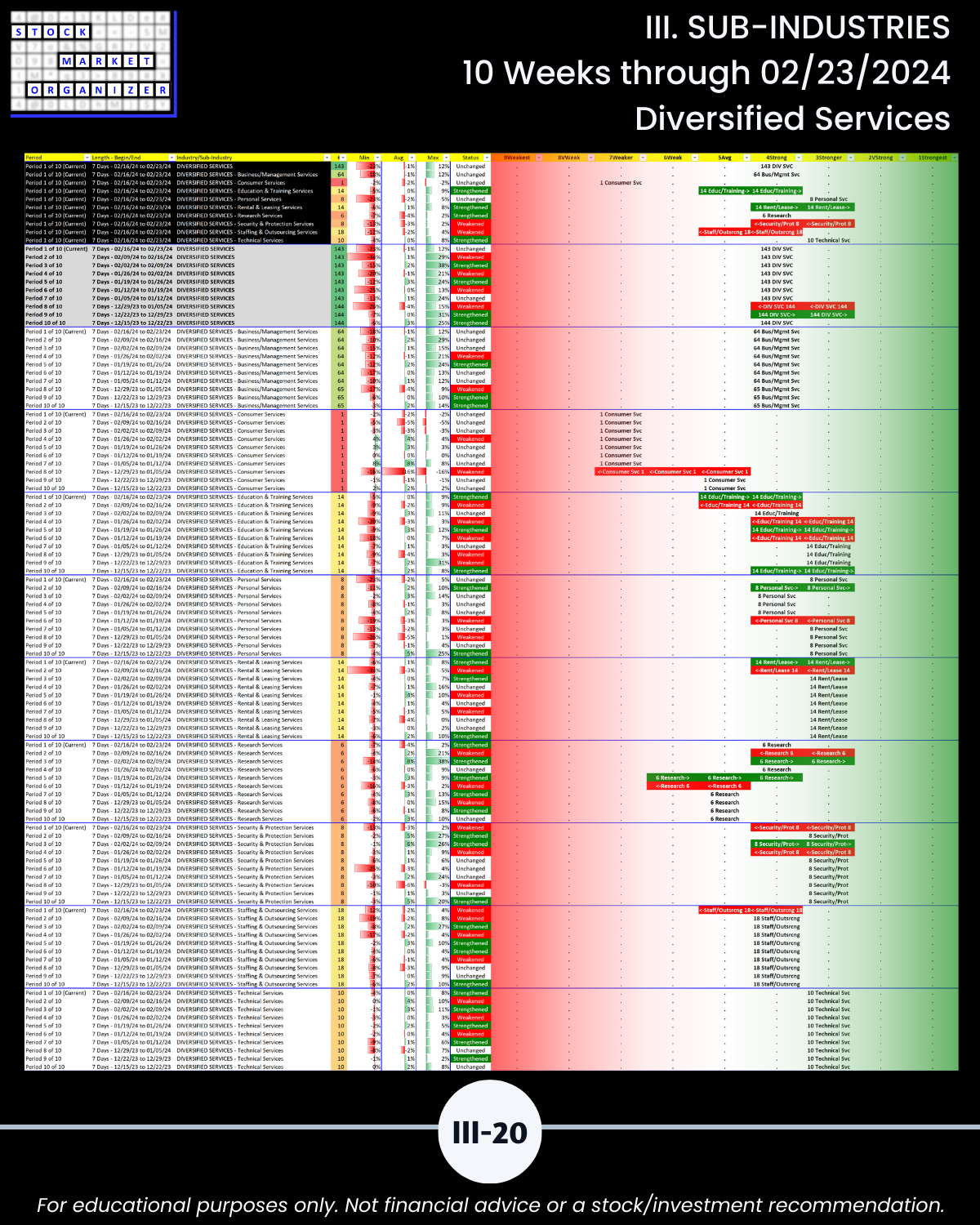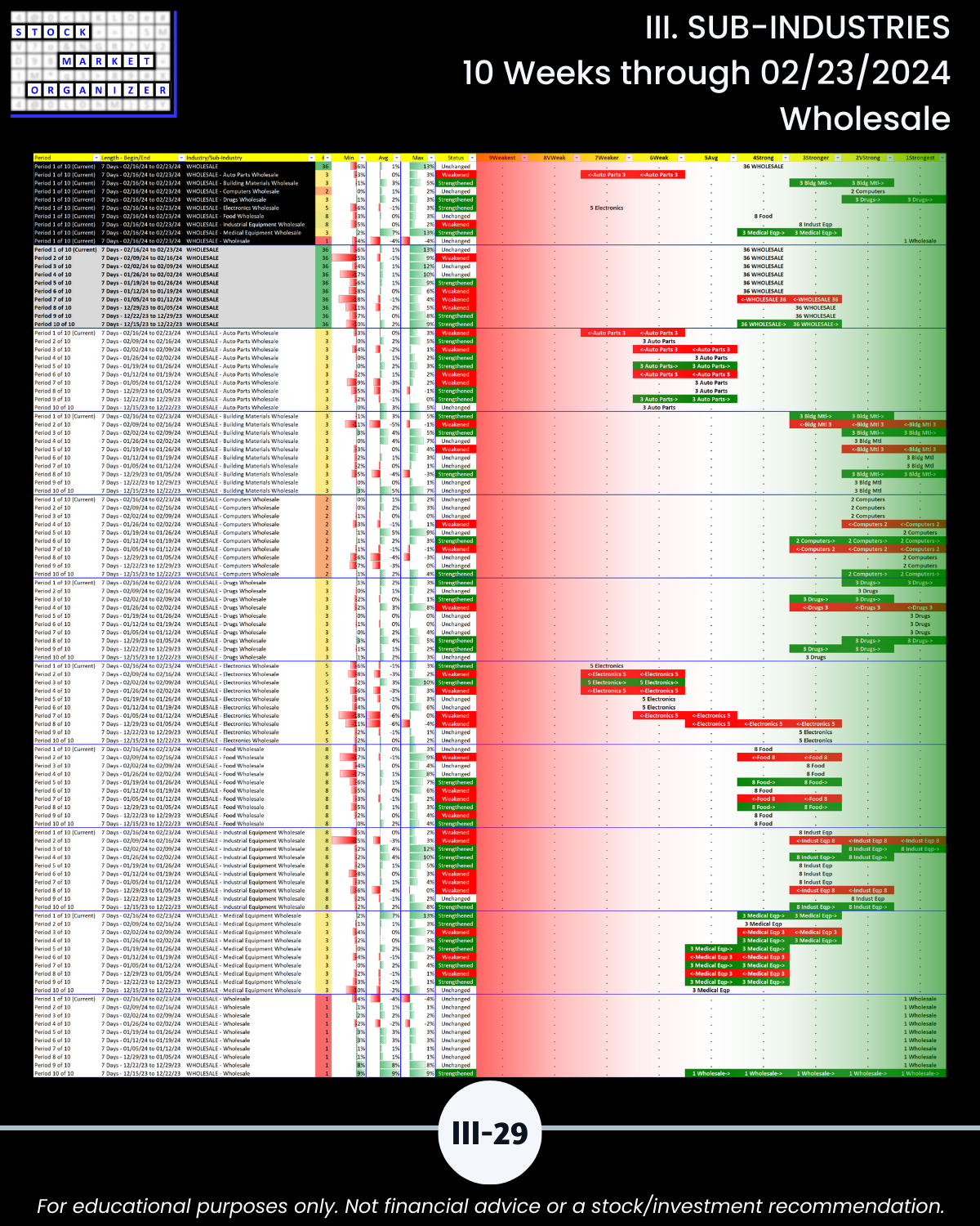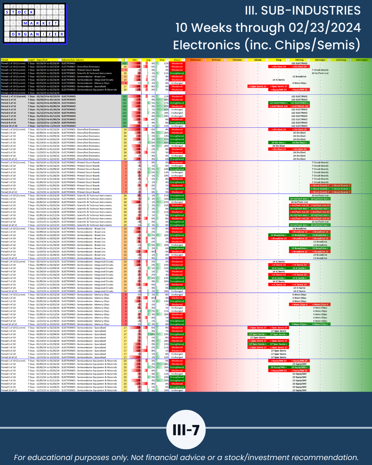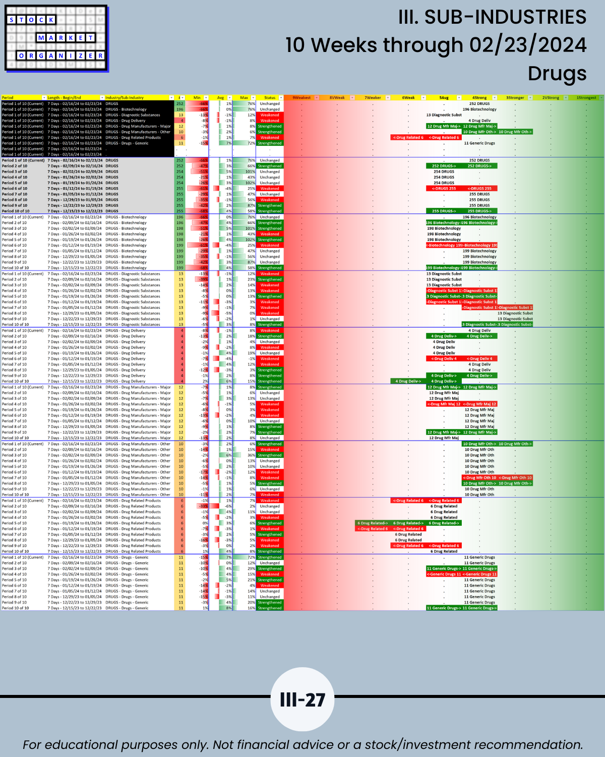 III. SUB-INDUSTRIES/10-Week Individual Sub-Industry Strength Reports