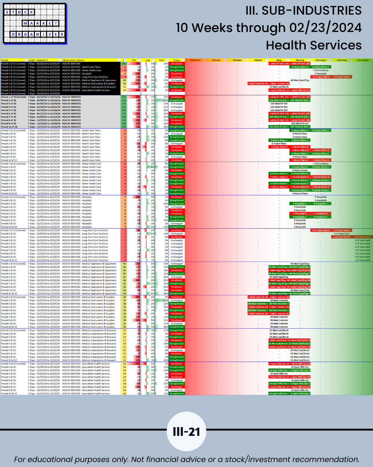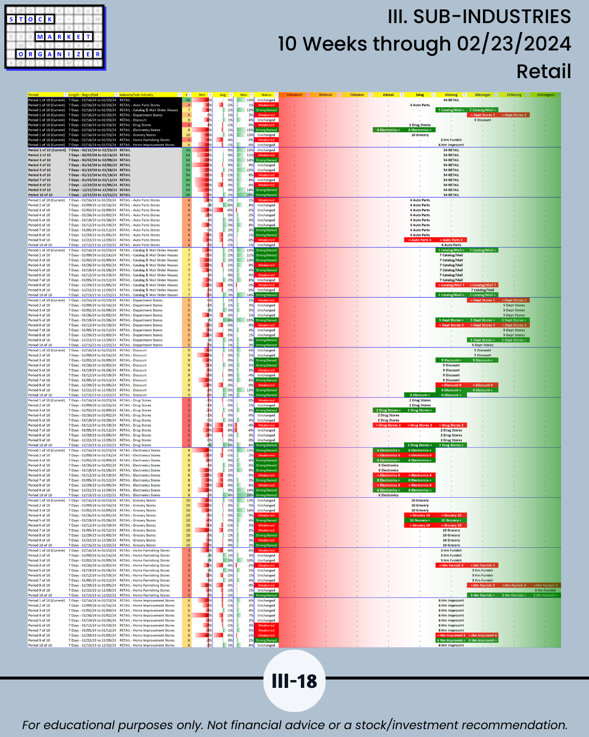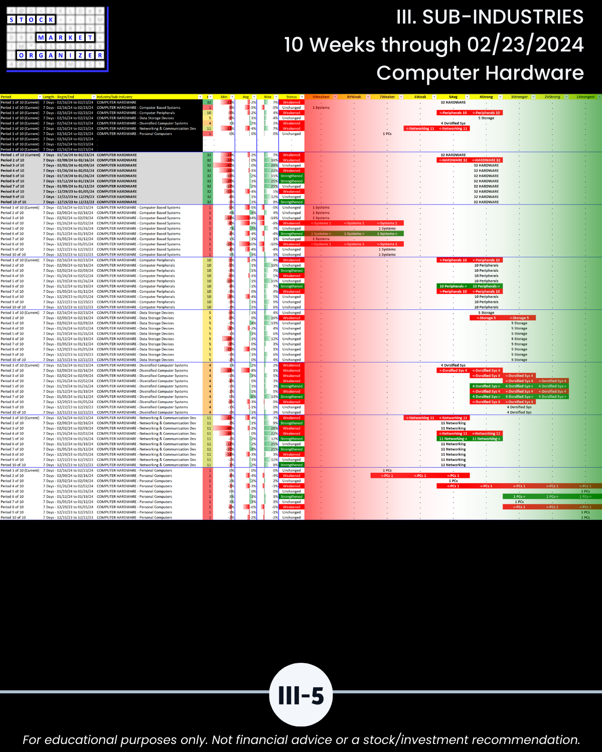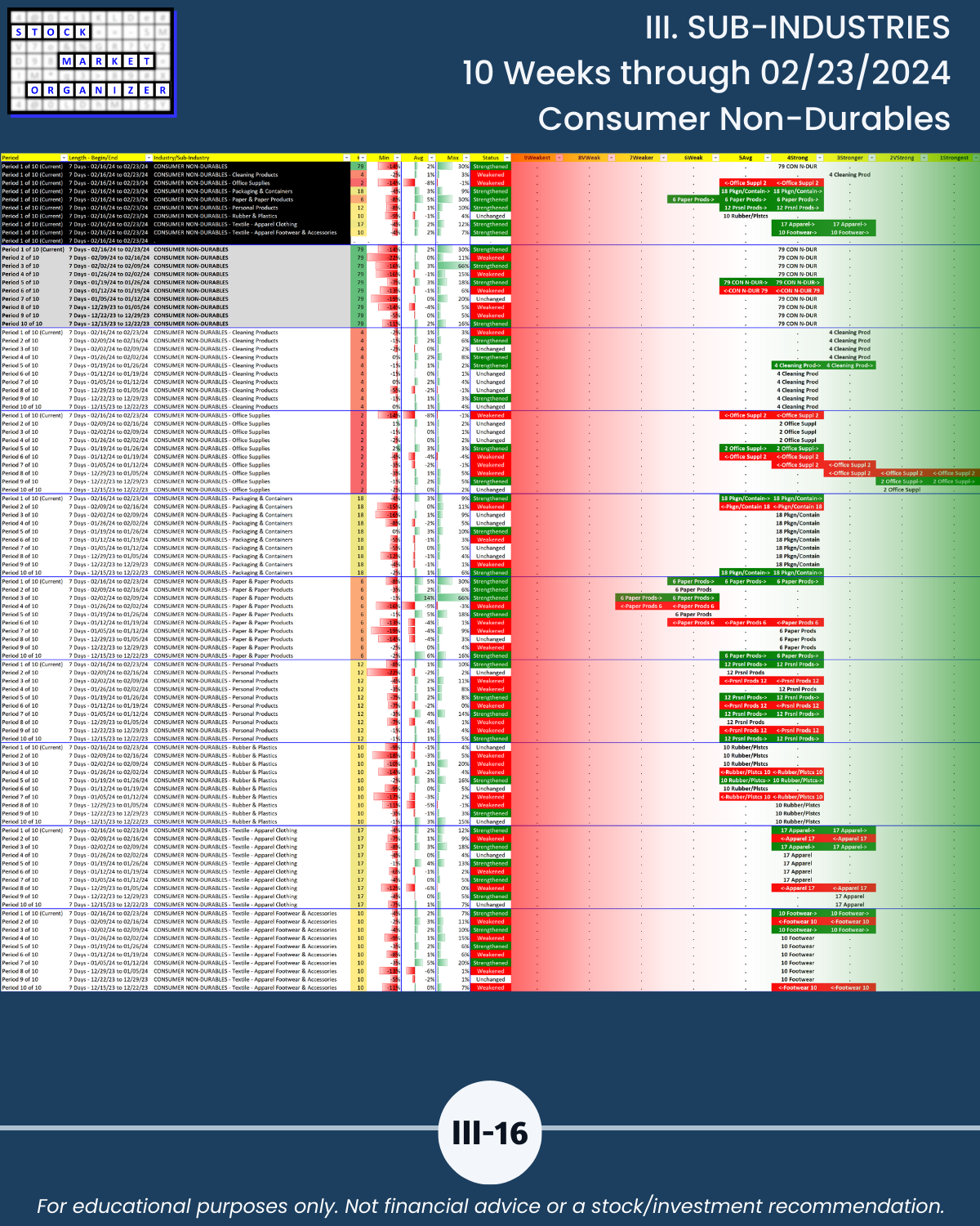 III. SUB-INDUSTRIES/10-Week Individual Sub-Industry Strength Reports